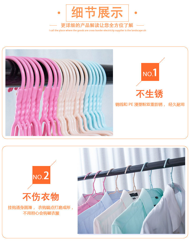 Household Clothes Hanger Bold Seamless Non-slip Plastic Dip Clothes Hanger Bedroom Clothes Drying Brace Hanger 10 Pack No Hook