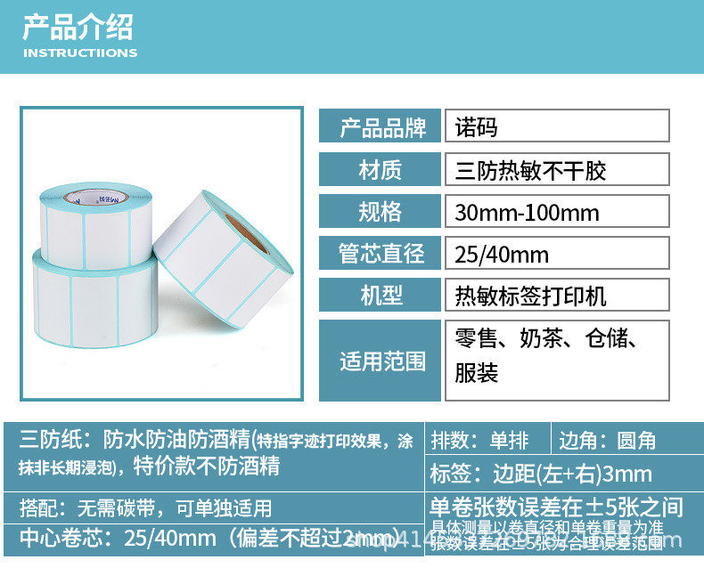 Norma three-proof thermal label paper printing paper 40 30 50 60 70 80 100 weighing paper stickers