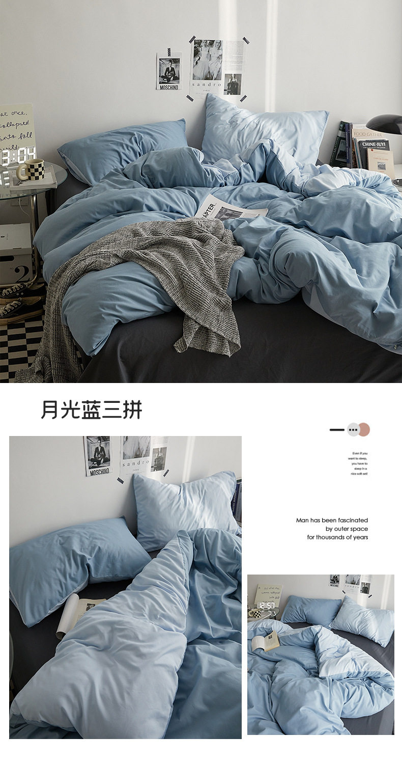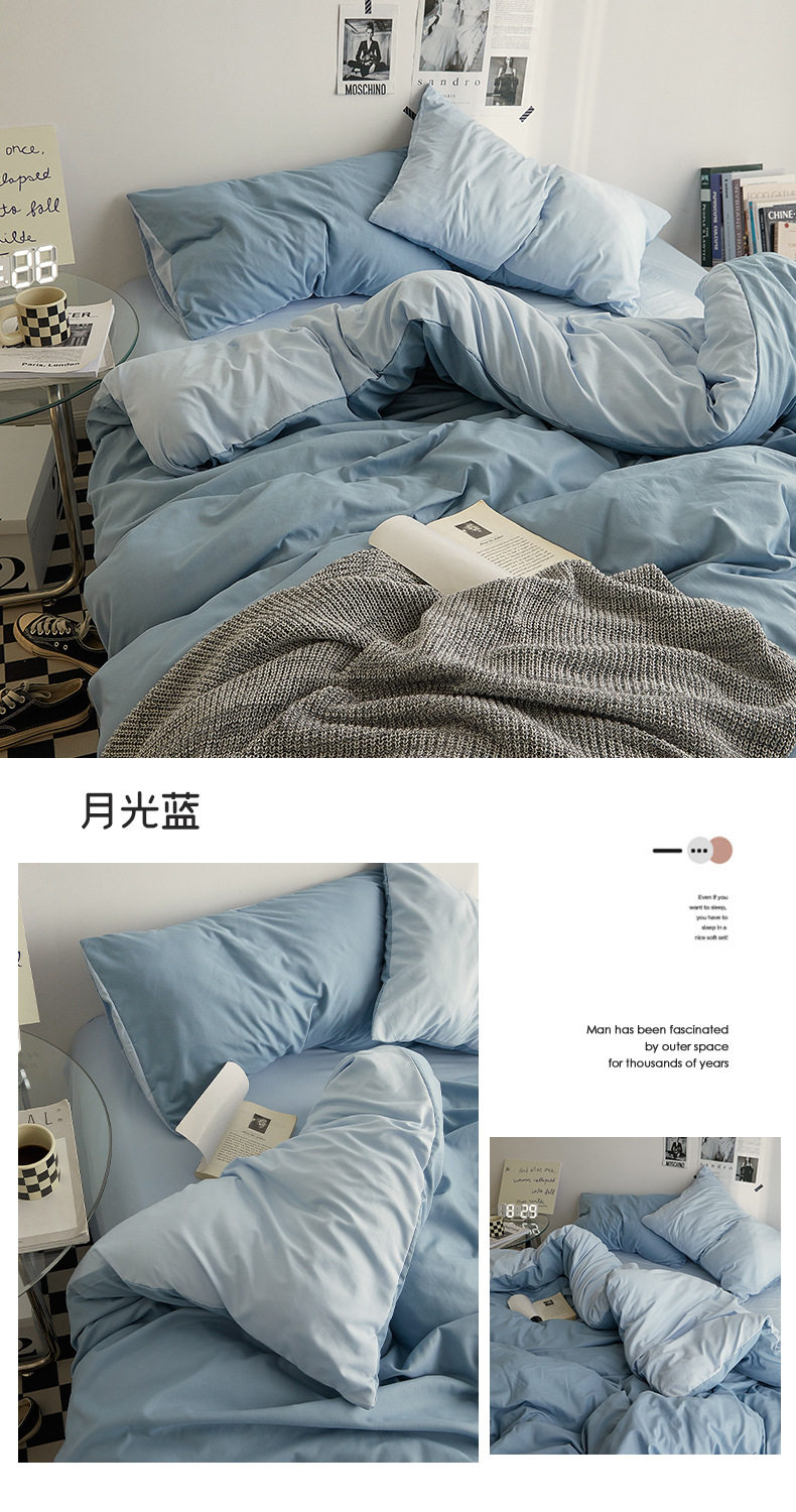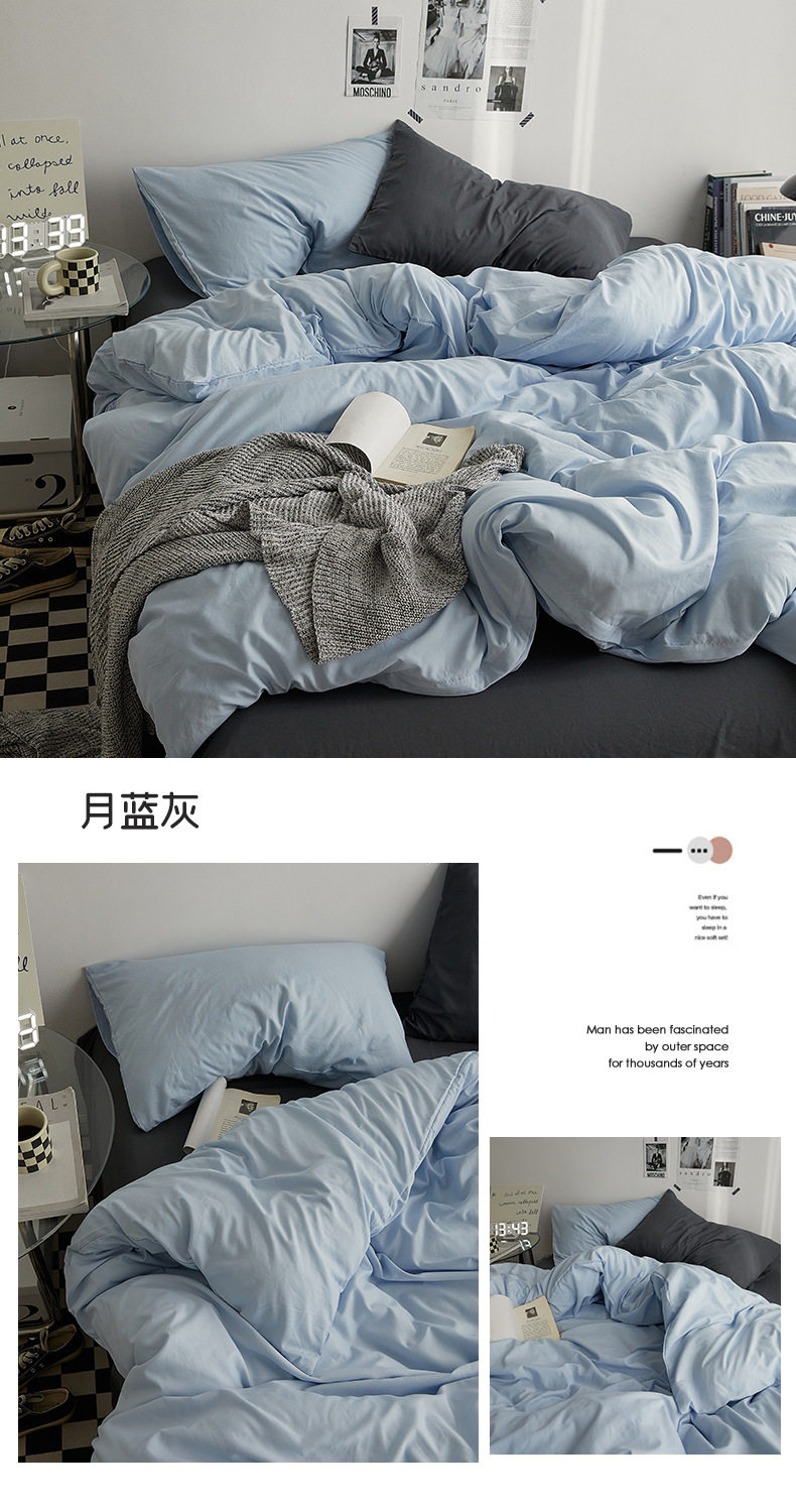 Japanese Style Simple Pure Washed Cotton Four-Piece Set Maternal and Infant Grade Class a Ins Pure Color Quilt Cover Bed Sheets Student Dormitory Three-Piece Set