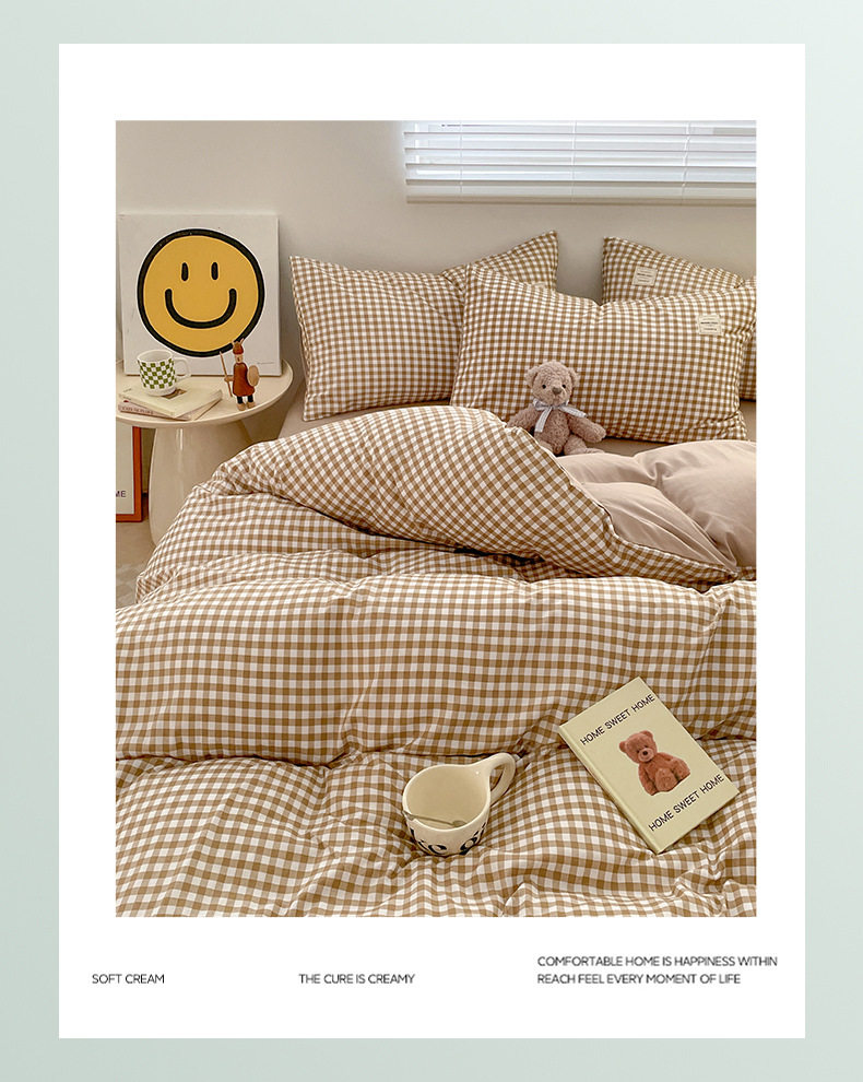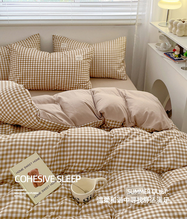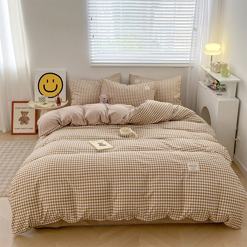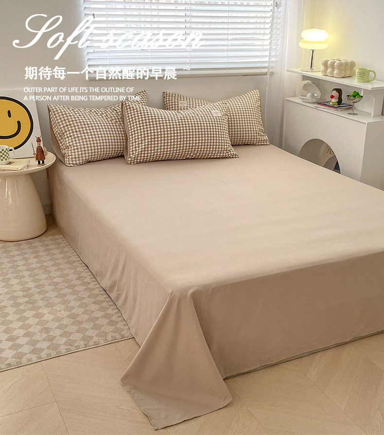 Japanese Style Simple Pure Washed Cotton Four-Piece Set Maternal and Infant Grade Class a Ins Pure Color Quilt Cover Bed Sheets Student Dormitory Three-Piece Set