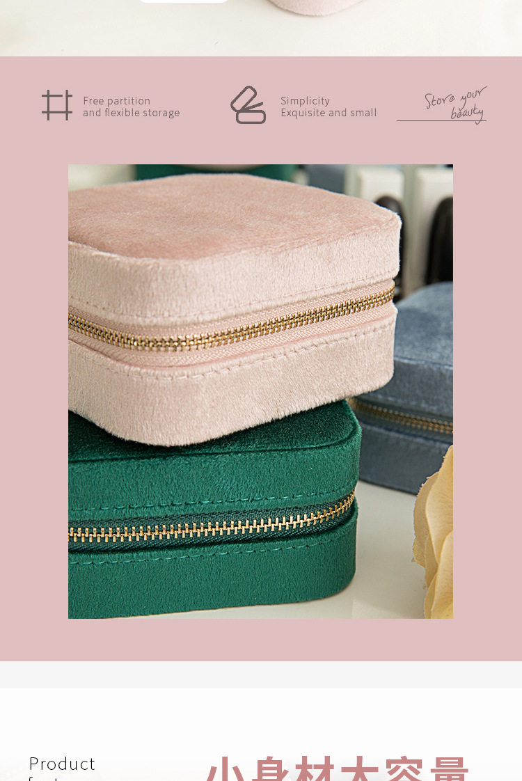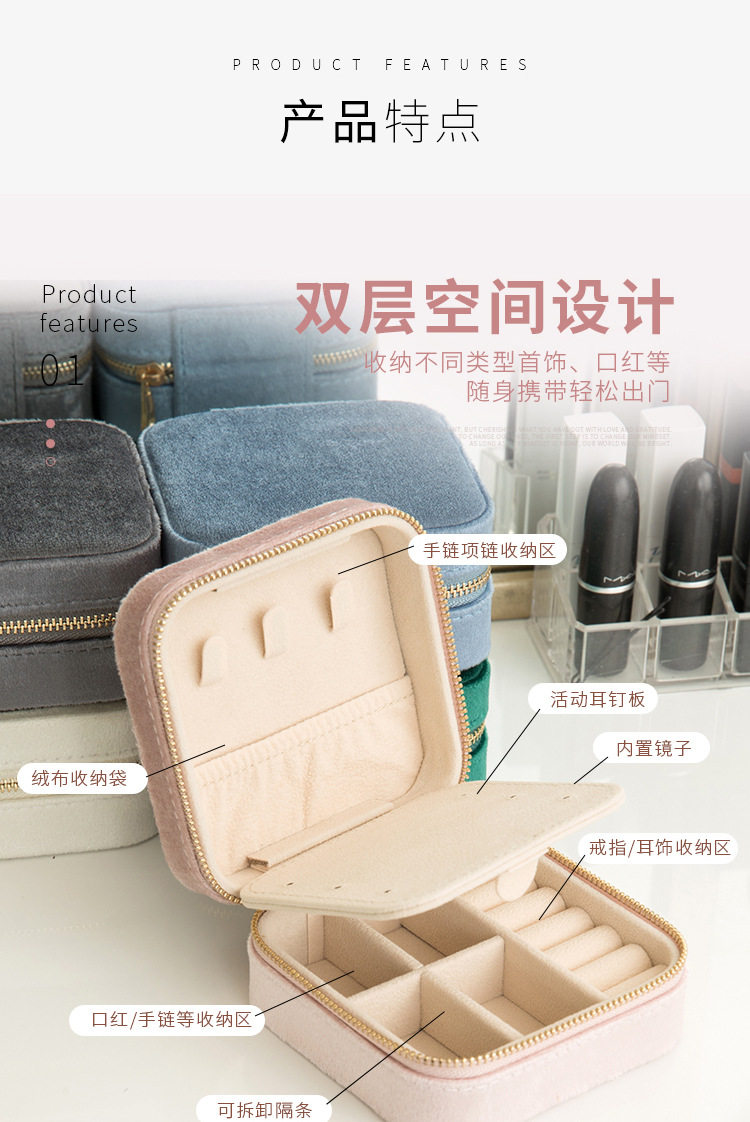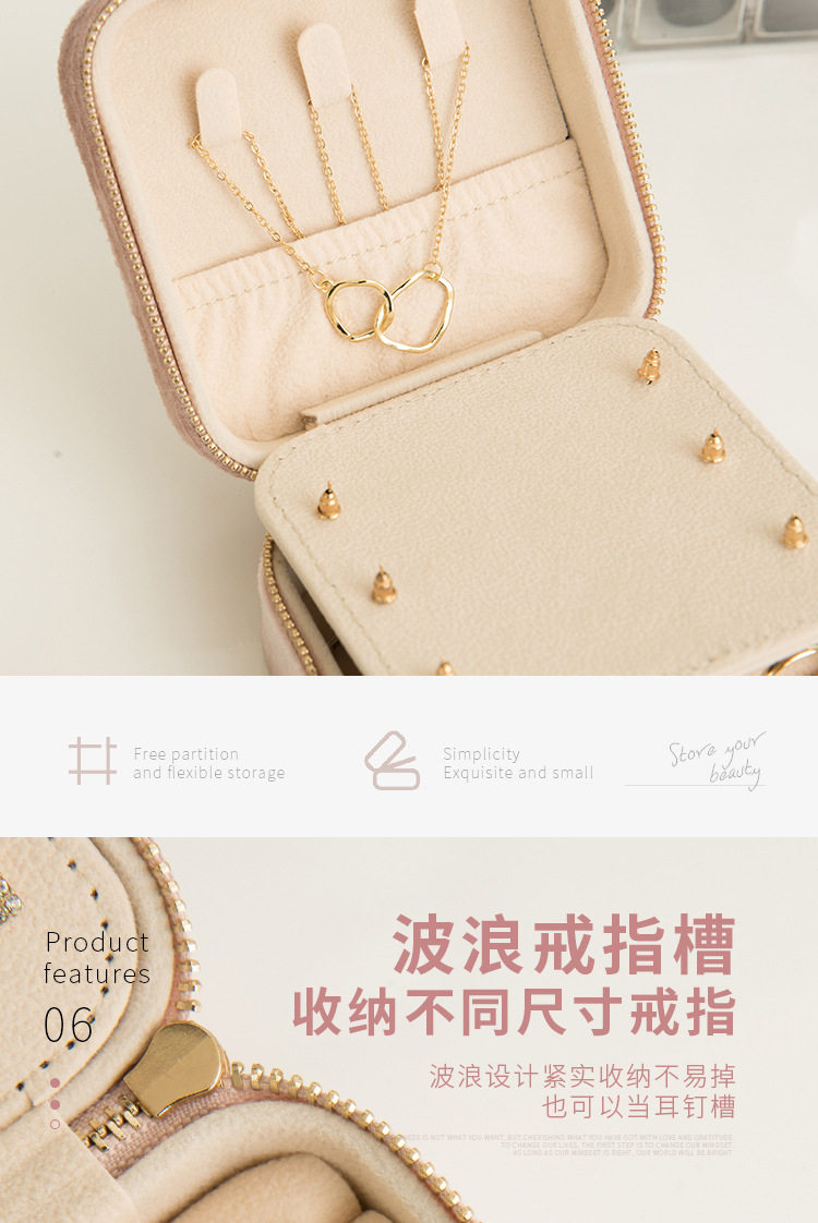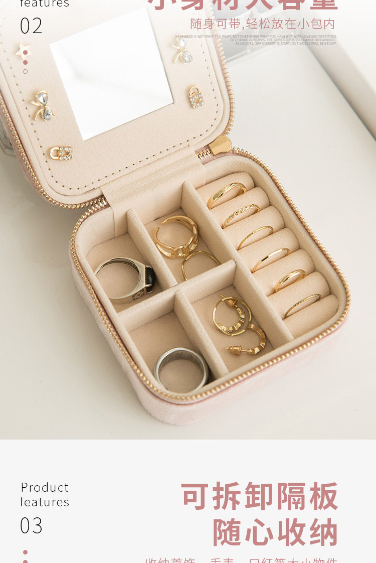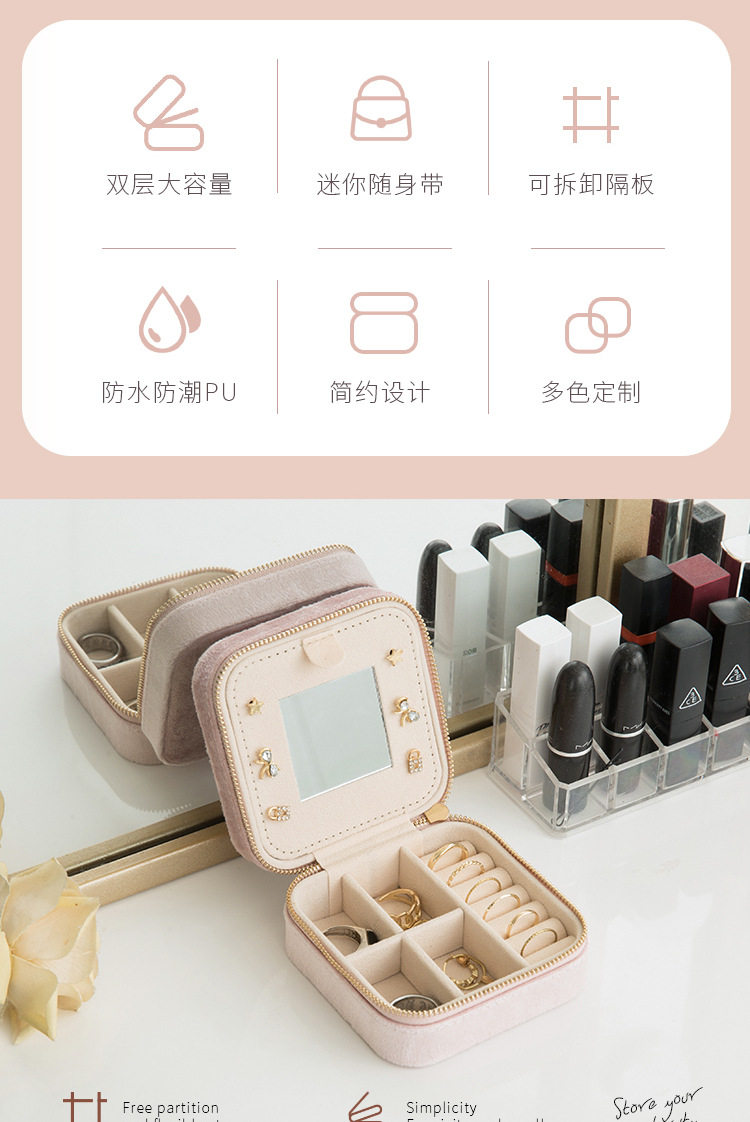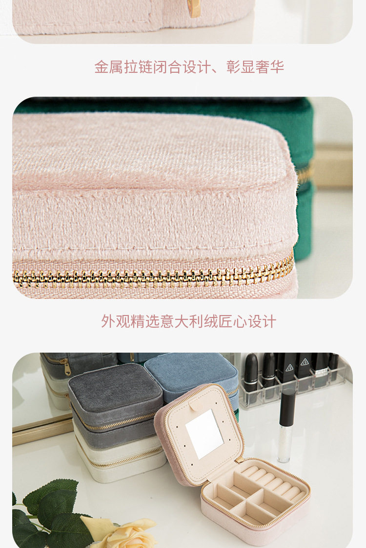 Flannel Jewelry Box Necklace Jewelry Earrings Earrings Jewelry Bracelet Storage Box Instagram Style Travel Convenient with Mirror