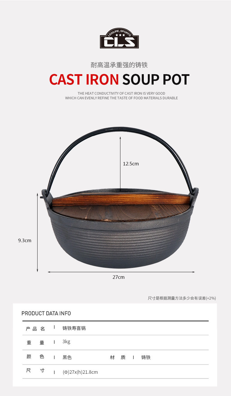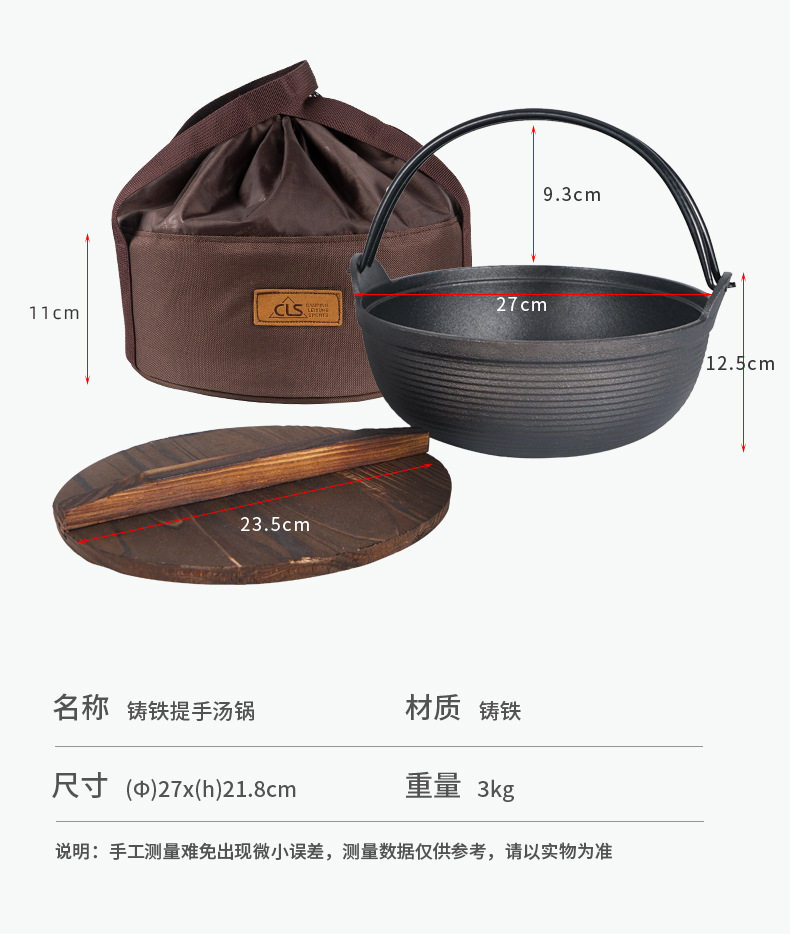 Cast Iron Pot for Outdoor Stewing, Soup Making, Cast Iron Chicken Roasting, Boiling Water, Dutch Pot, Hot Pot, Camping Pot, Sukiyaki Pot, Camping