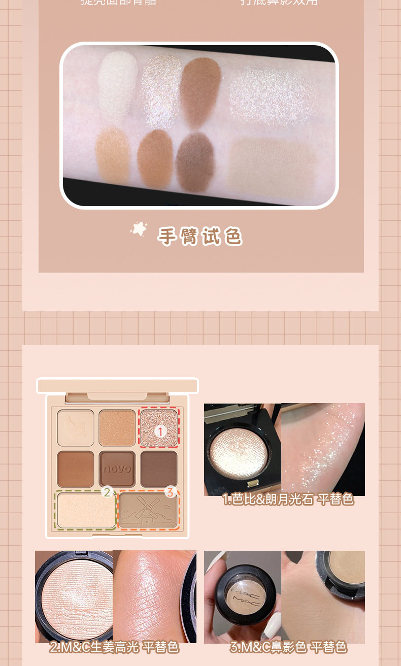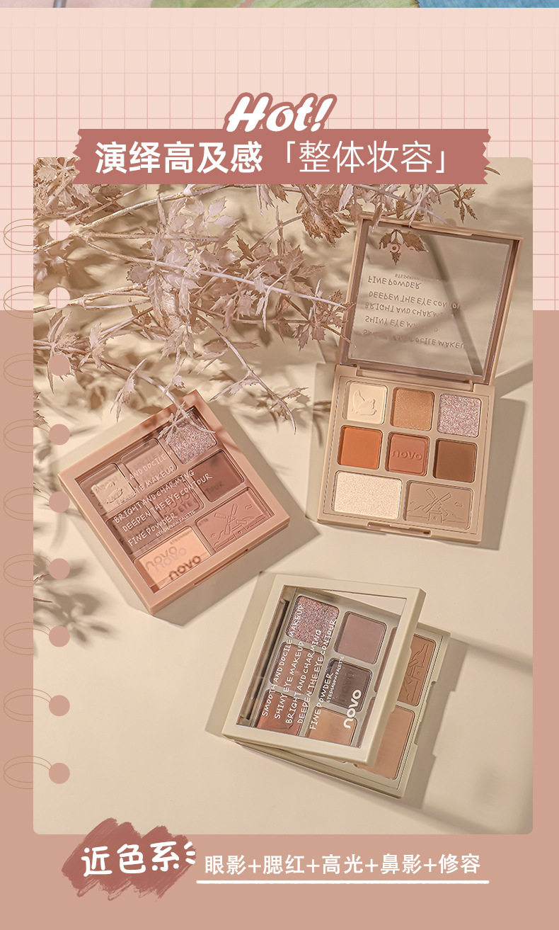 Chinese made-up NOVO eight-color eye shadow plate pearlescent fine shiny diamond natural matte tinkering high gloss blush one-piece plate