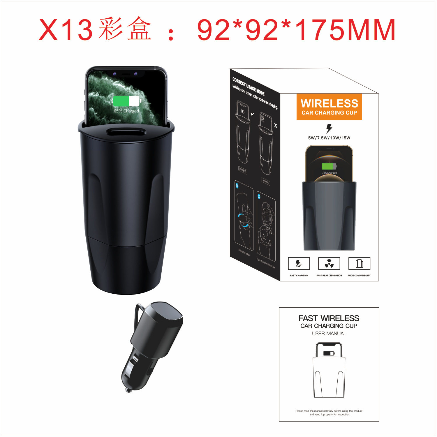 X13 car water cup wireless charger Apple mobile phone AirPods headset USB direct charging three-in-one fast charging