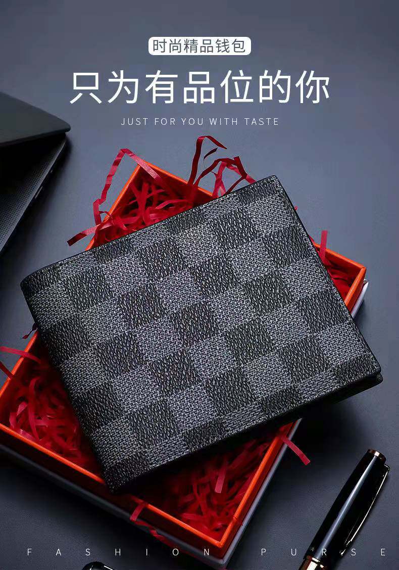 New Men's Wallet Plaid Men's Wallet Short Wallet Simple Fashion Trendy Brand Men's Wallet