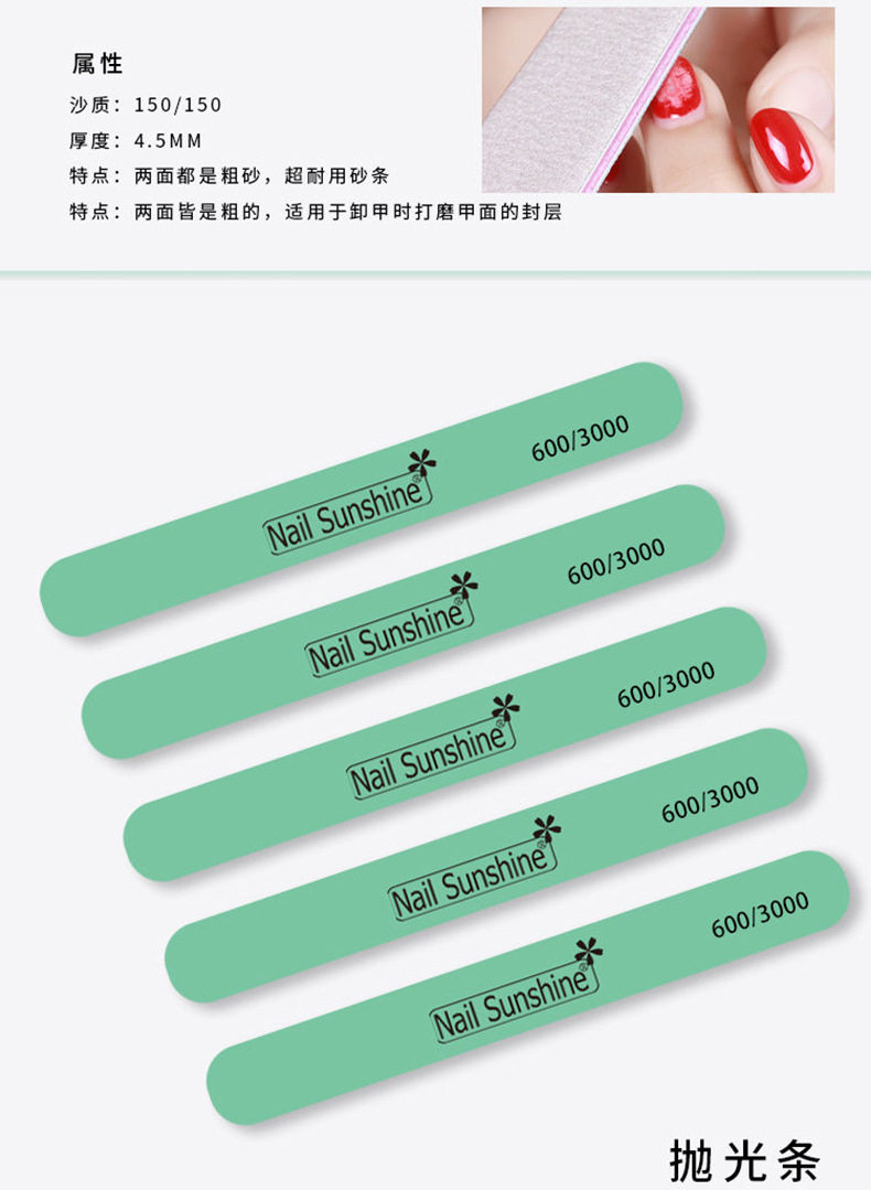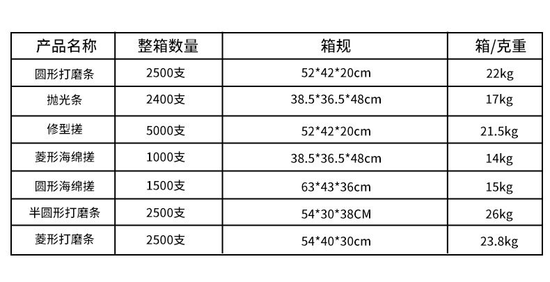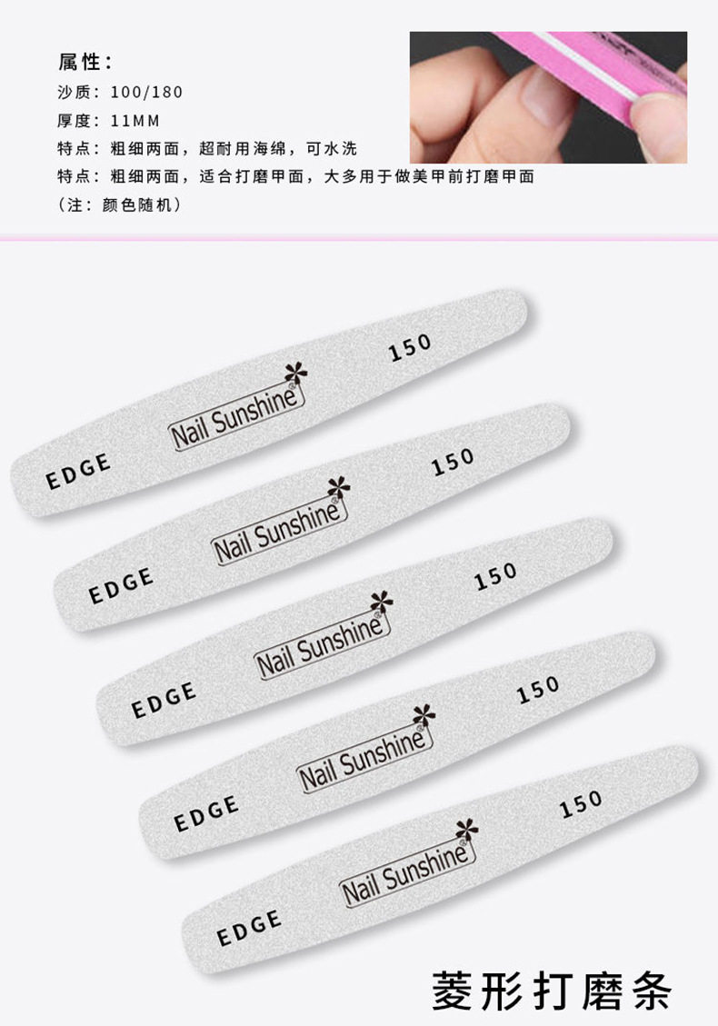 | Color classification | Round sanding strip,Shaping rub,Polishing strip,Diamond shaped sponge rub,Diamond shaped sanding strip,Round sponge rub,1 crescent-shaped polishing strip |
