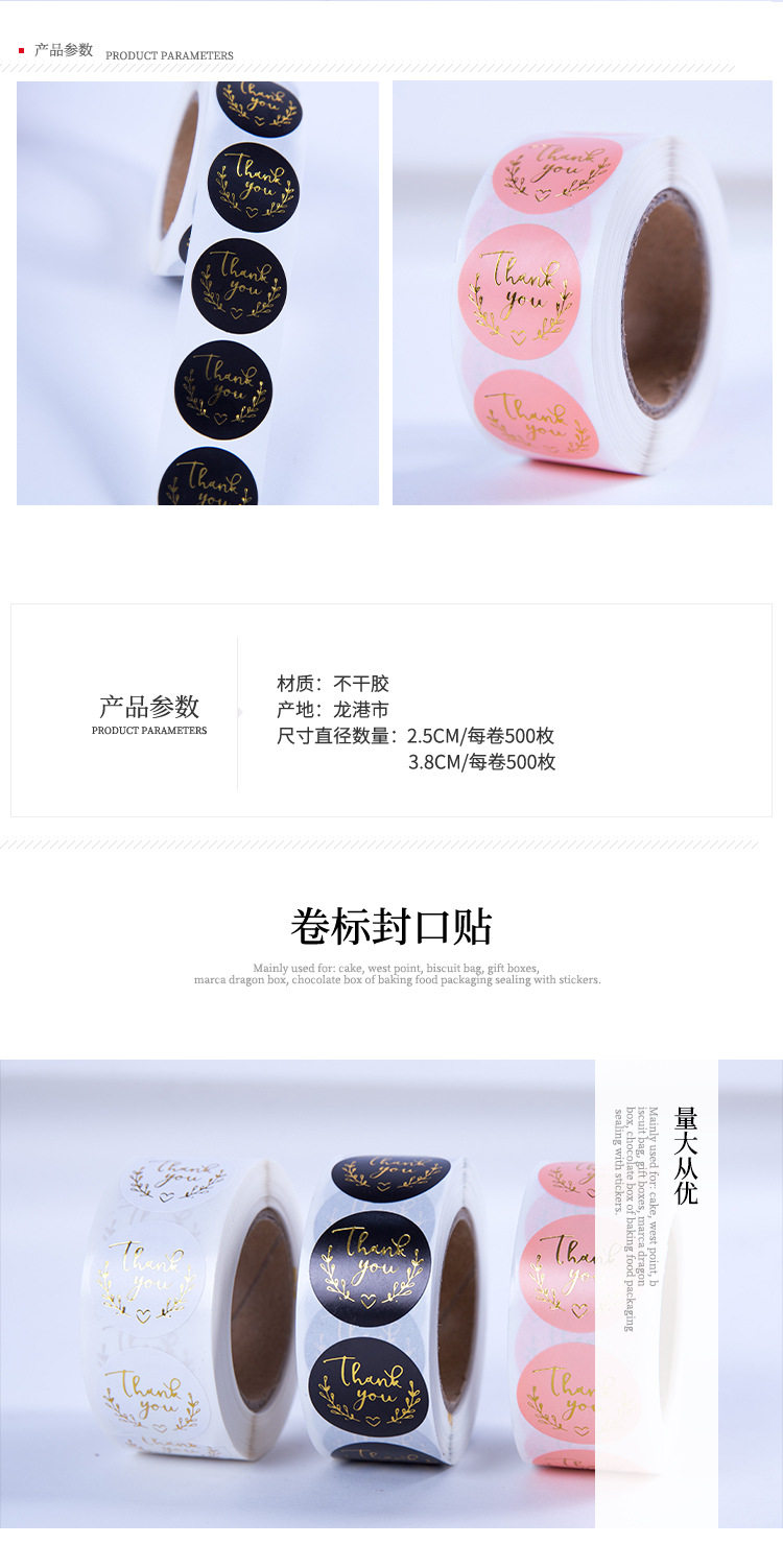 Thank You Gold Foil Stickers Christmas Labels Adhesive Stickers Thankyou Round Labels Universal English Stickers