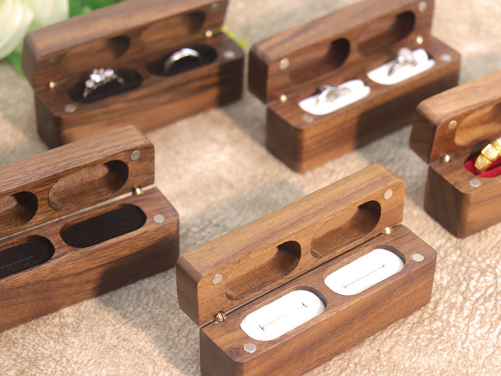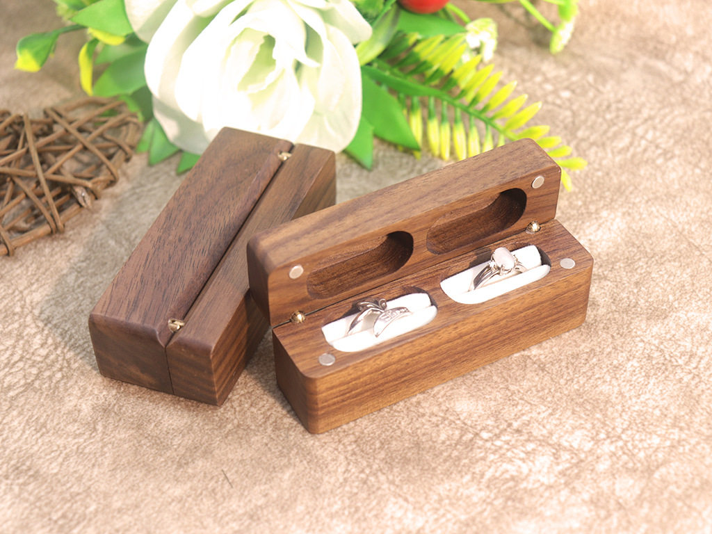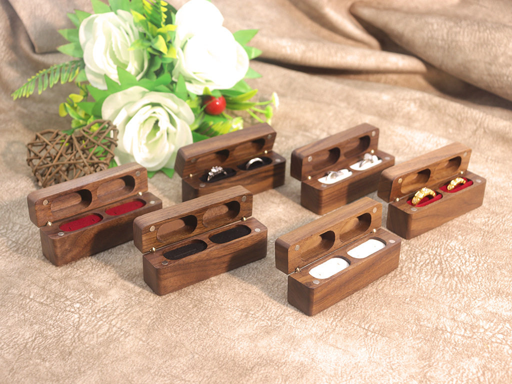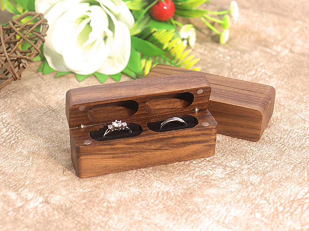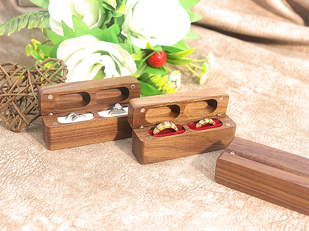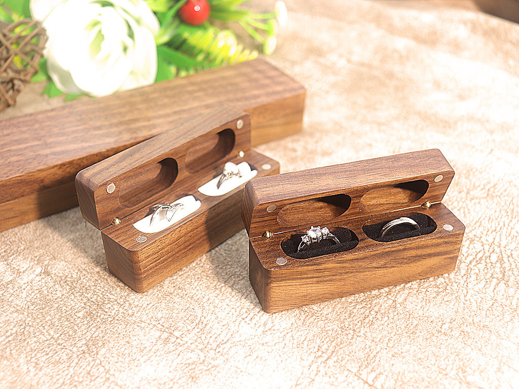 New Long Ring Box Four Magnetic Ring Jewelry Box Jewelry Black Walnut Packaging Box Jewelry Packaging Proposal Women