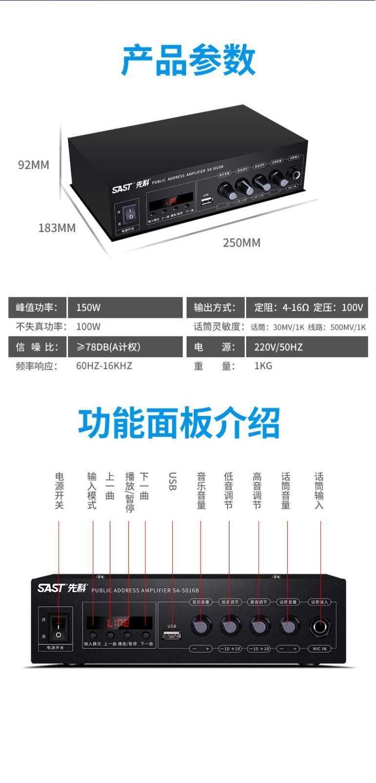 Xianke SA-5016B constant pressure constant resistance high power amplifier household ceiling sound column campus radio music Bluetooth