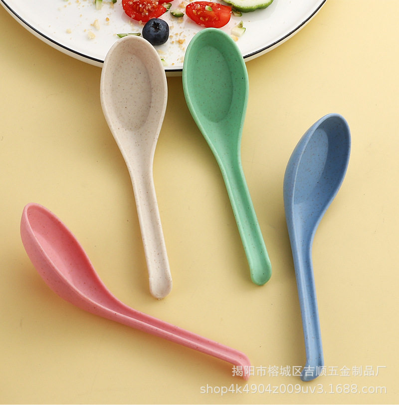 Wheat Straw Plastic Spoon Small Spoon Household Baby Spoon Long Handle Spoon Ramen Spicy Hot Spoon Commercial Soup Spoon