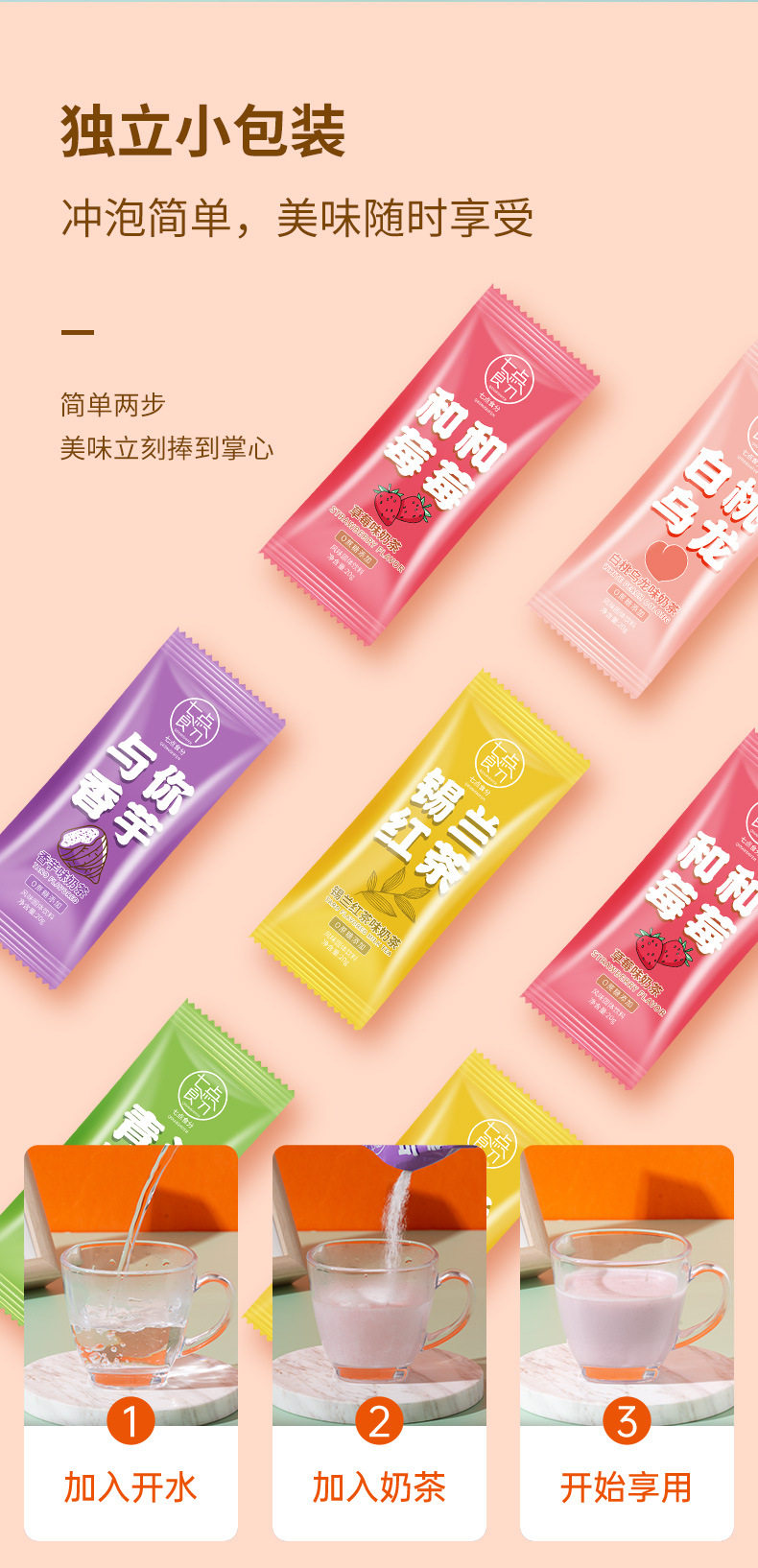 | Packaging specifications | Milk tea [mixed flavors] portable pack of 10 bags,Milk tea [mixed flavors] portable pack of 20 bags,Milk tea [mixed flavors] portable pack of 40 bags,Milk tea [mixed] 15 packs,Bubble tea [taro flavor] - 1 pack,Milk tea [mixed flavors] [3 bags],Milk tea [mixed flavors] [30 bags] |