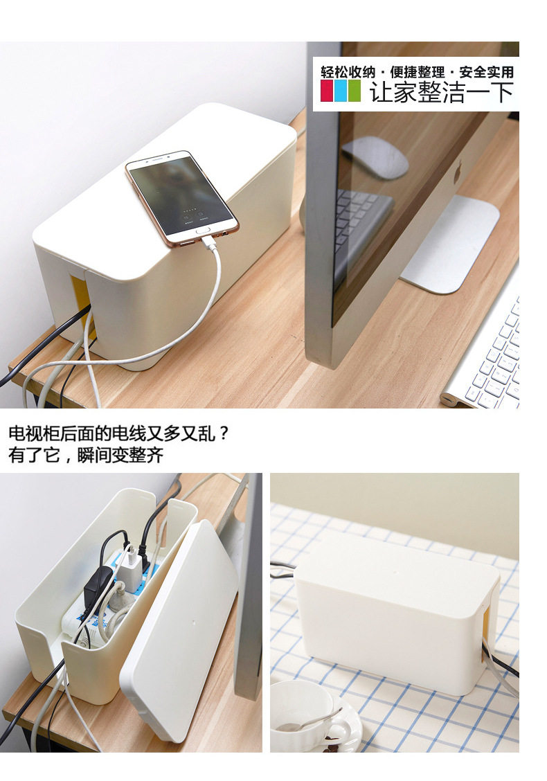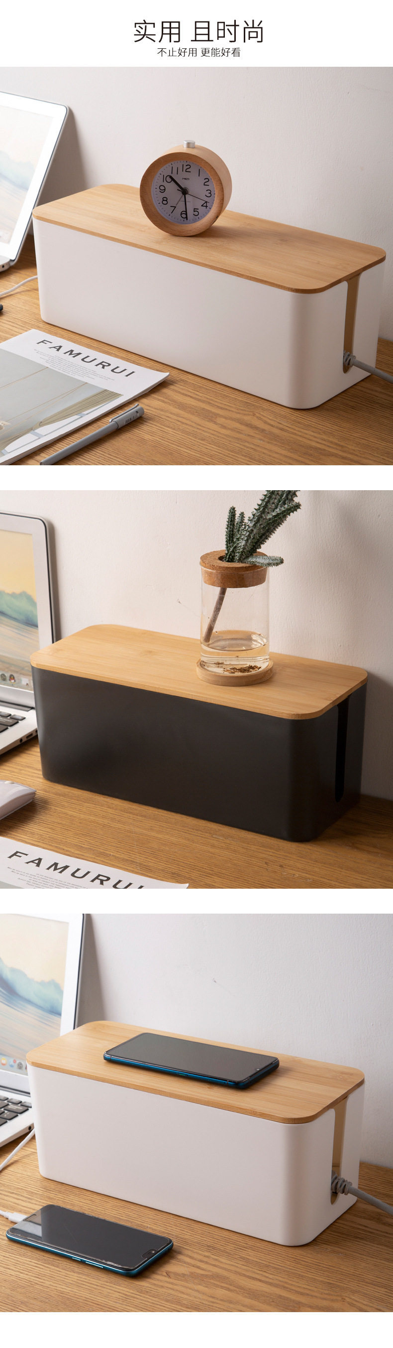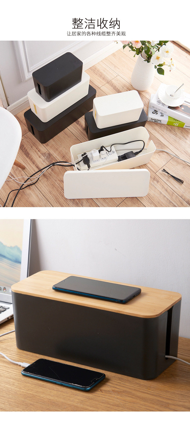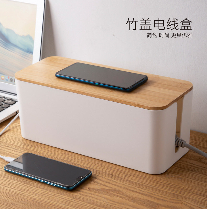 Household plug board mobile phone charger storage organizing box factory office anti-leakage organizing wire box bamboo cover