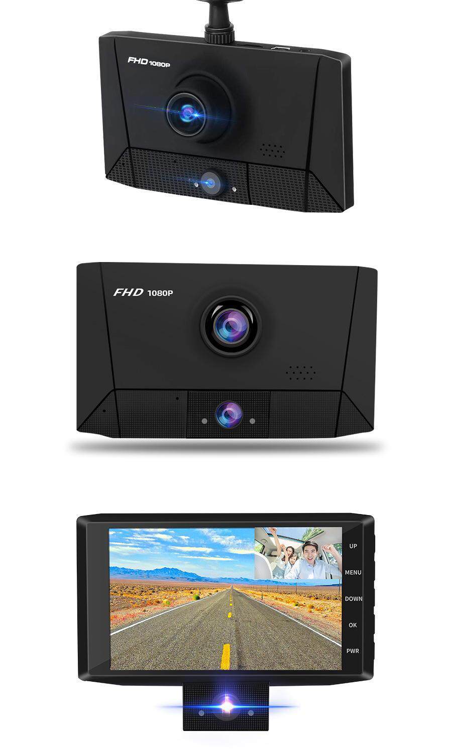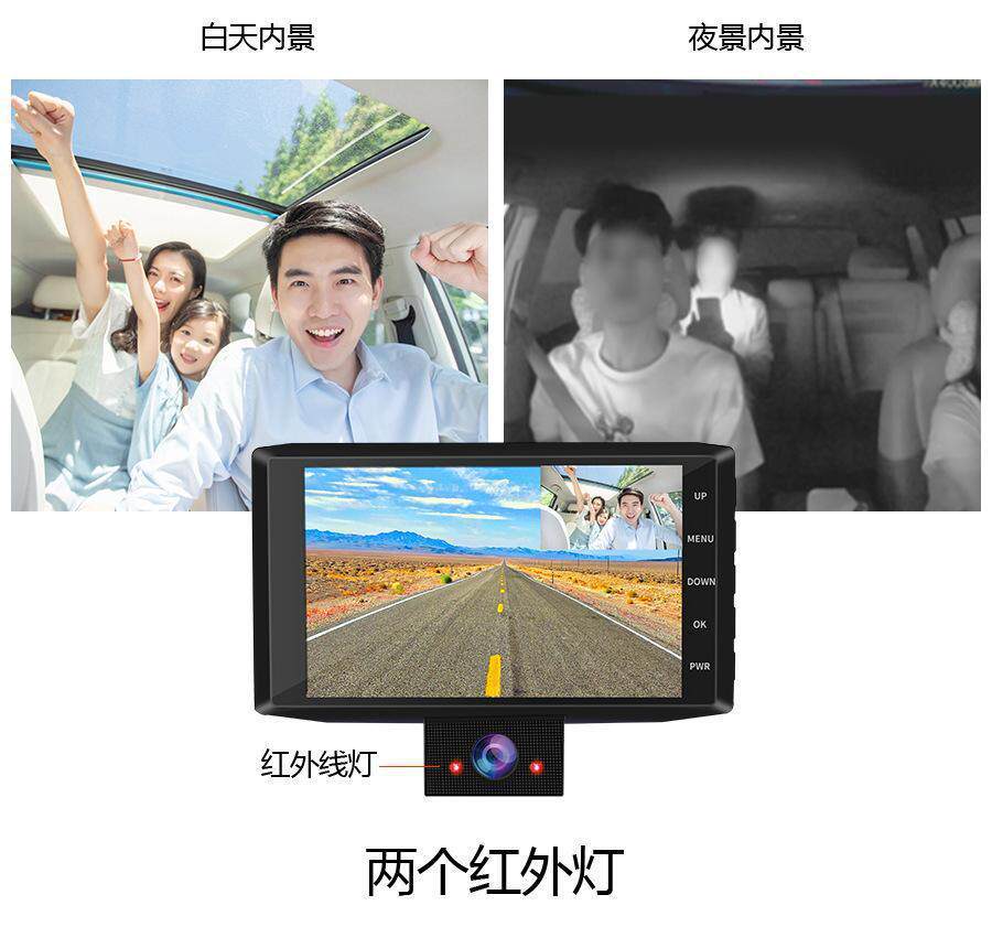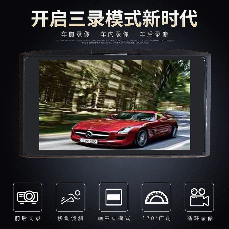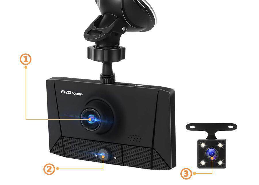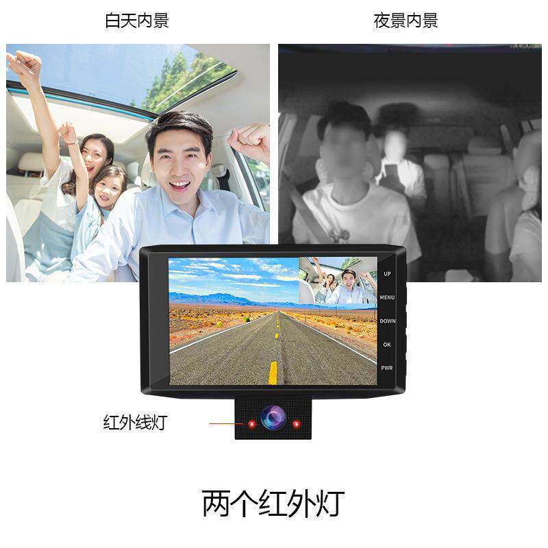 Driving recorder three-lens HD 4.0 inch double tape reversing Image 1080p car recorder