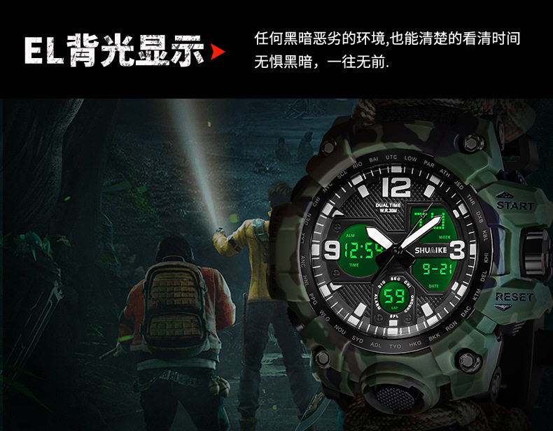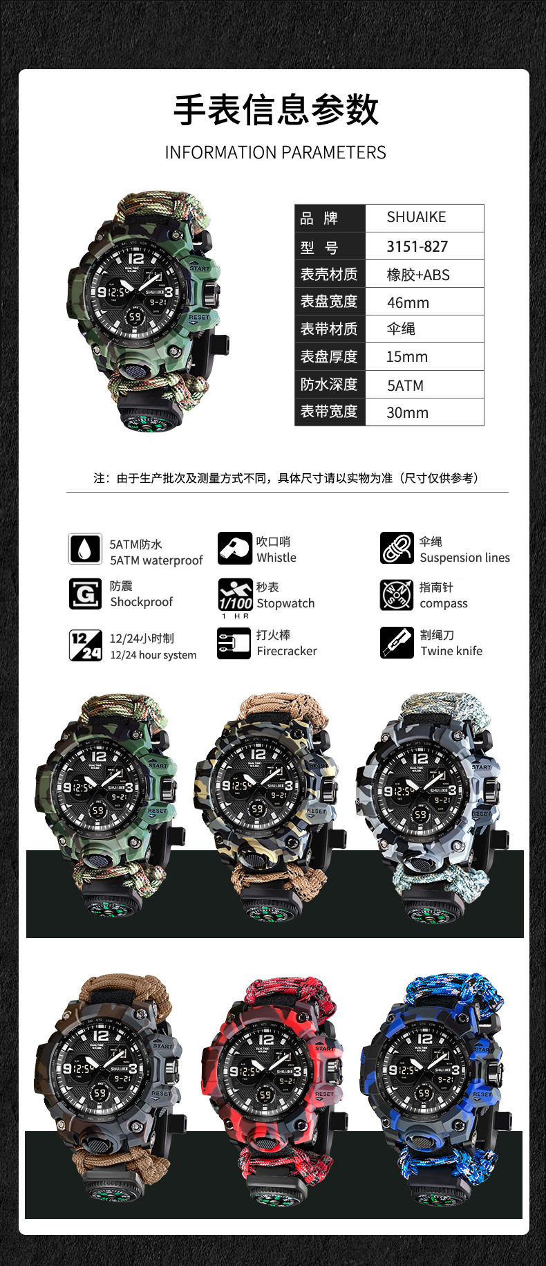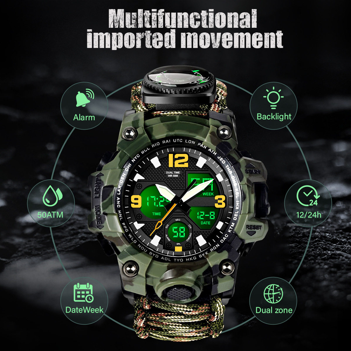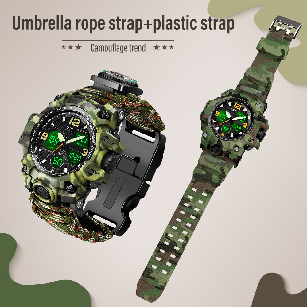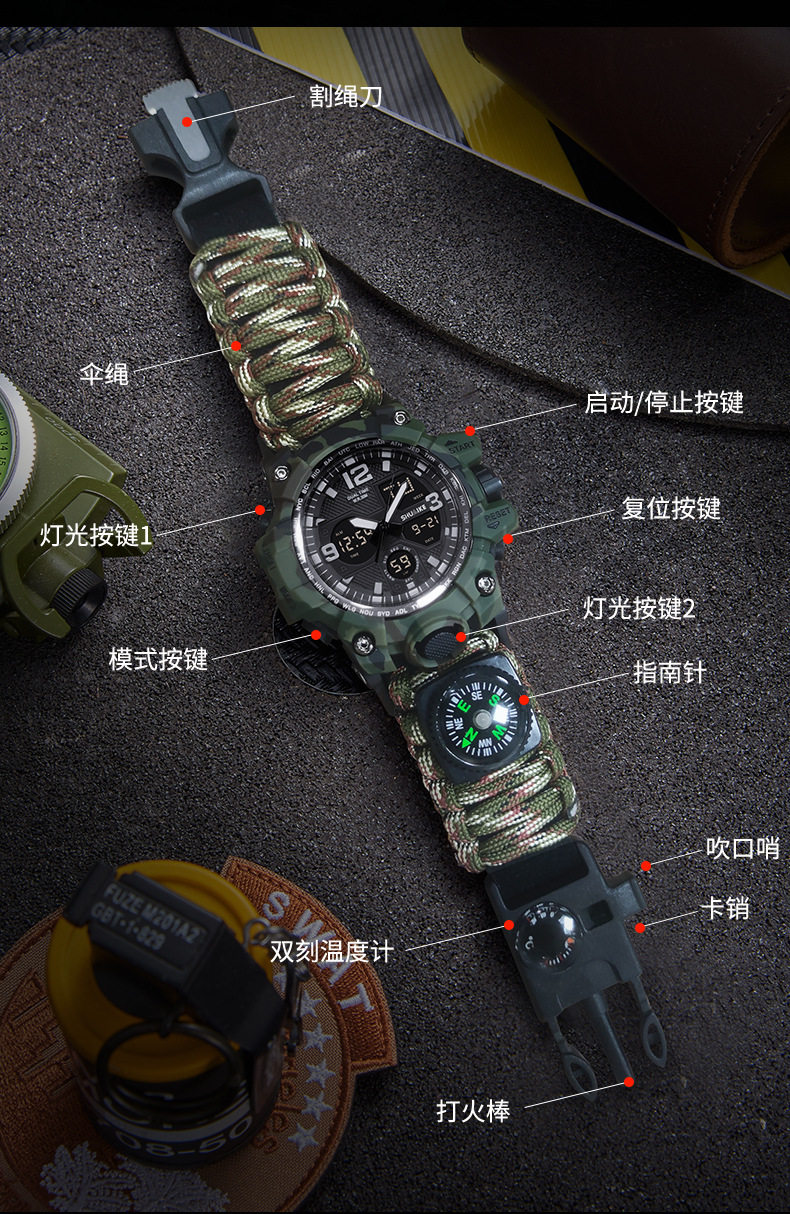 Cross-Border Double display electronic watch whistle Fire Compass thermometer watch men's outdoor watch in stock wholesale