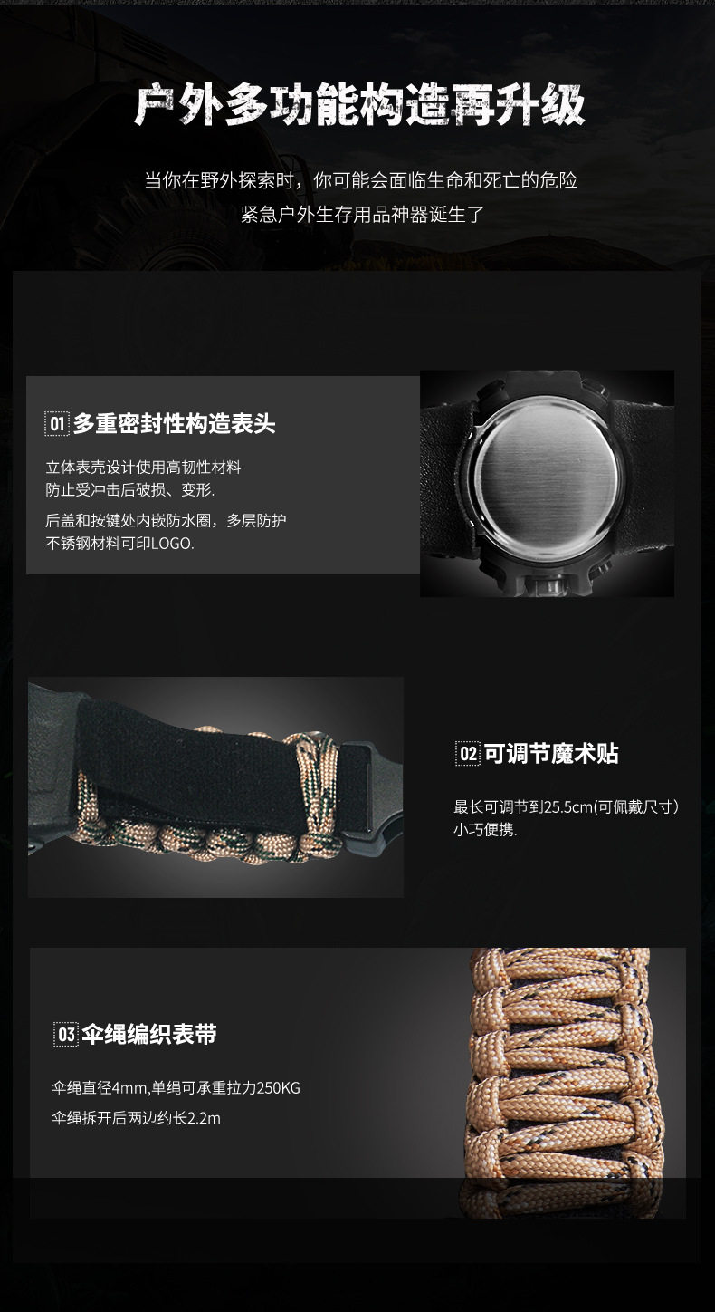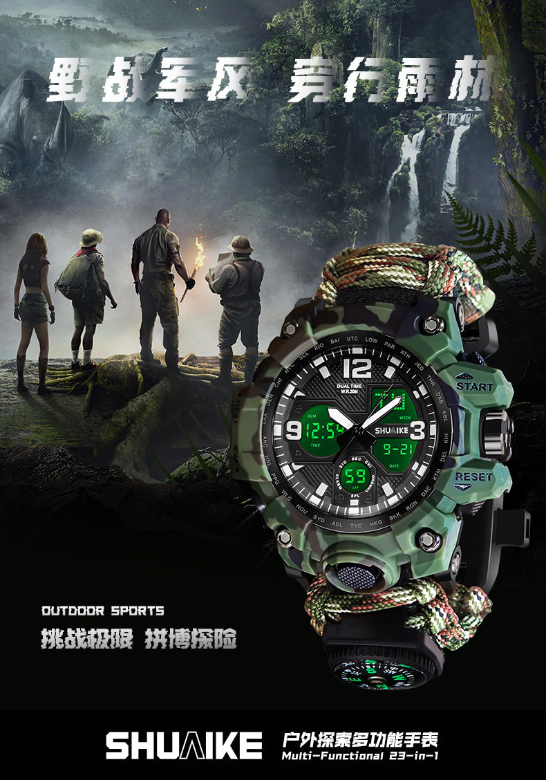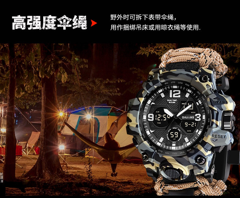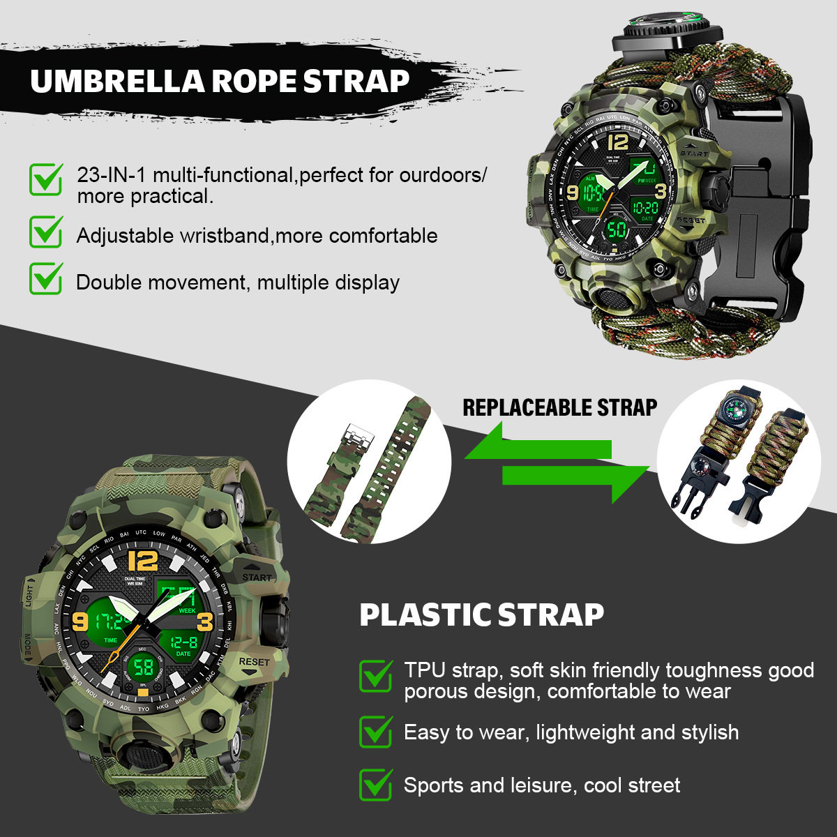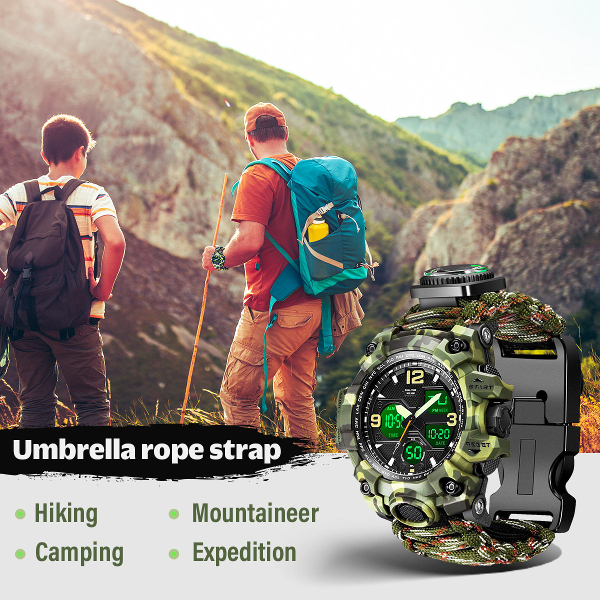 Cross-Border Double display electronic watch whistle Fire Compass thermometer watch men's outdoor watch in stock wholesale