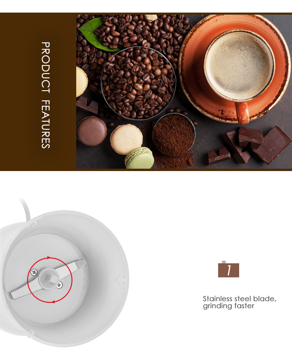 Stainless Steel Knife Grinder Electric Bean Grinder Household Coffee Bean Grinder Portable Dry Grinder Coffee Machine Gift