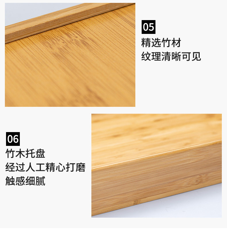 Casual Bamboo Tray Integrated Rectangular Bamboo Tray Home Storage Fruit Tray Hotel Tea Tray Water Cup Drain Tray