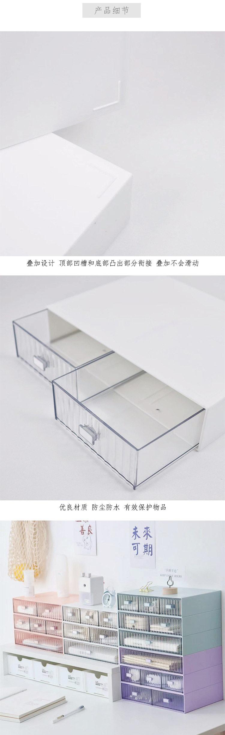 Striped drawer type storage box plastic desktop cosmetic finishing box free combination multi-layer stackable jewelry box