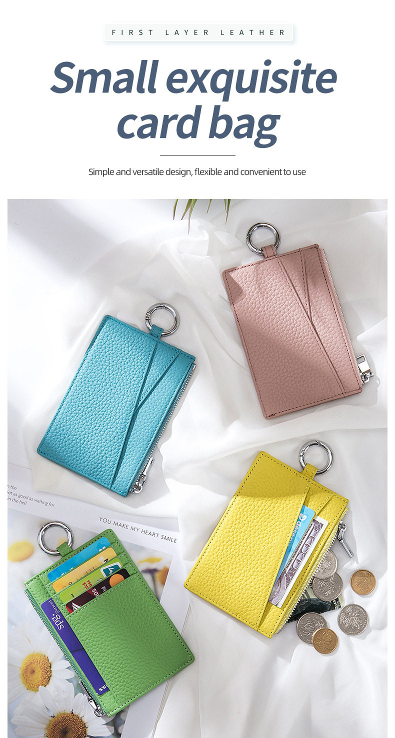 Genuine Leather Japanese-style multi-functional coin bag card holder women's small exquisite ultra-thin zipper coin purse driving license bag mini