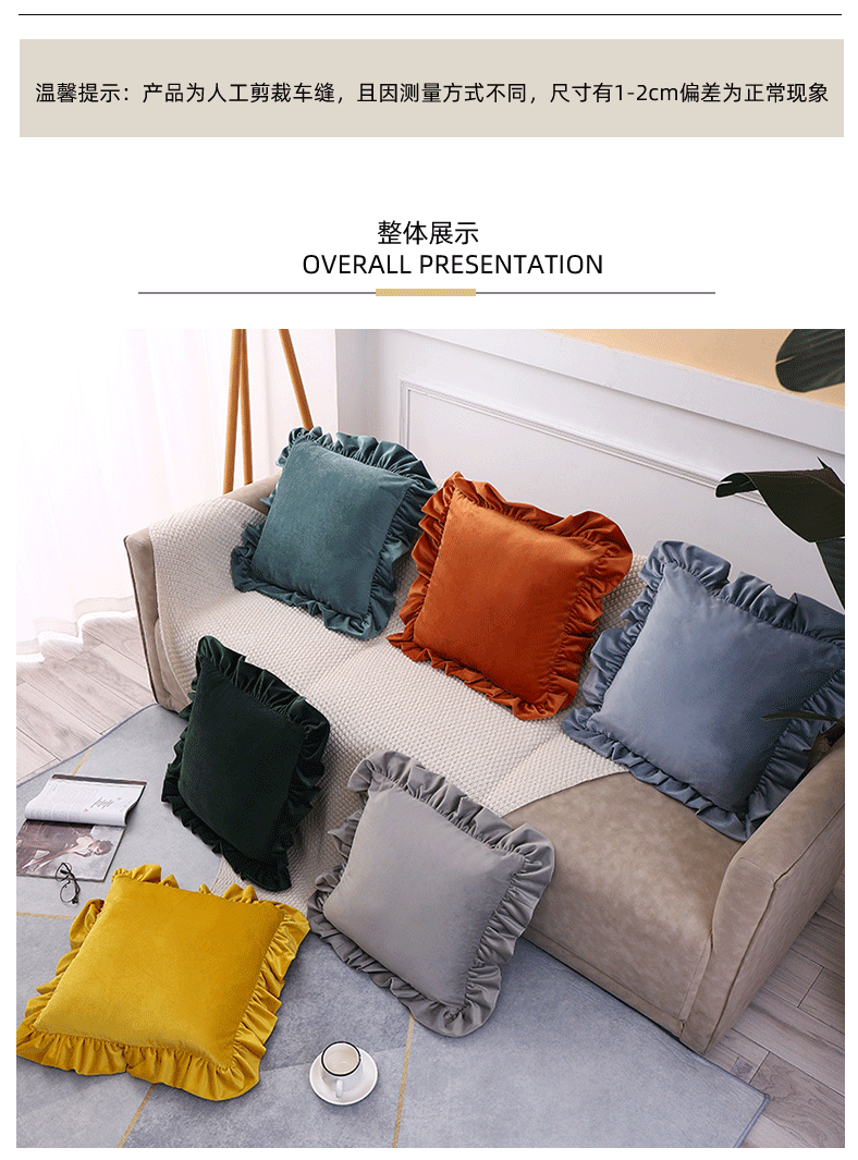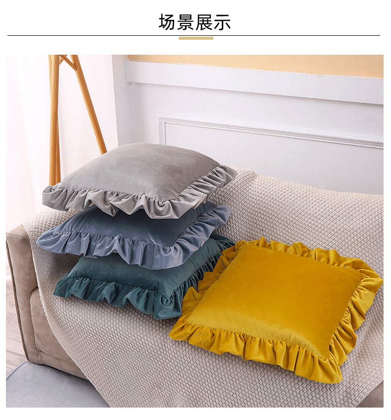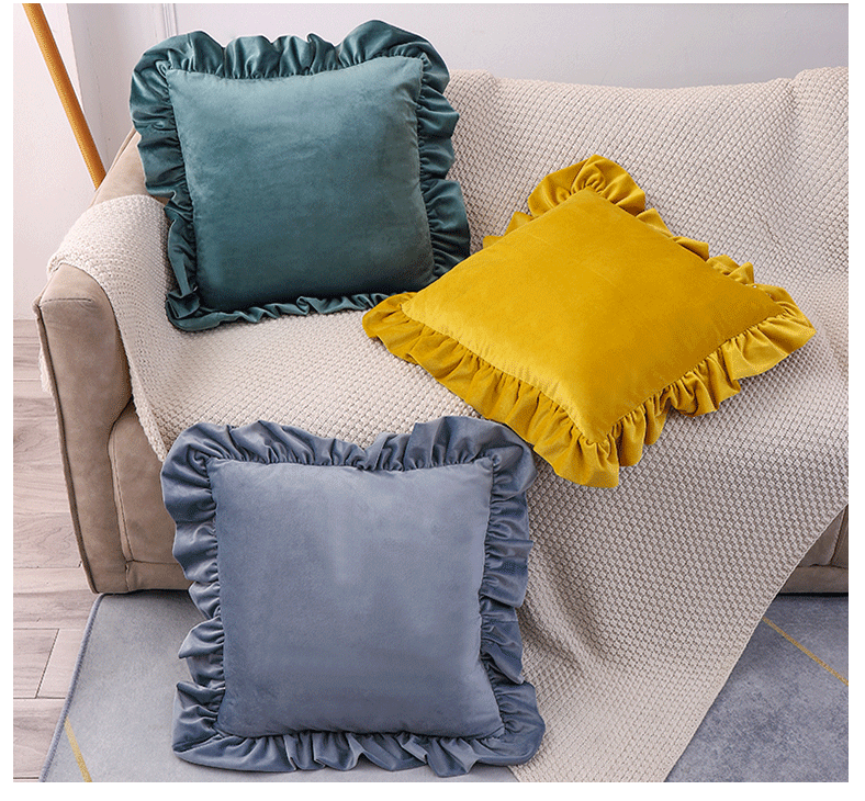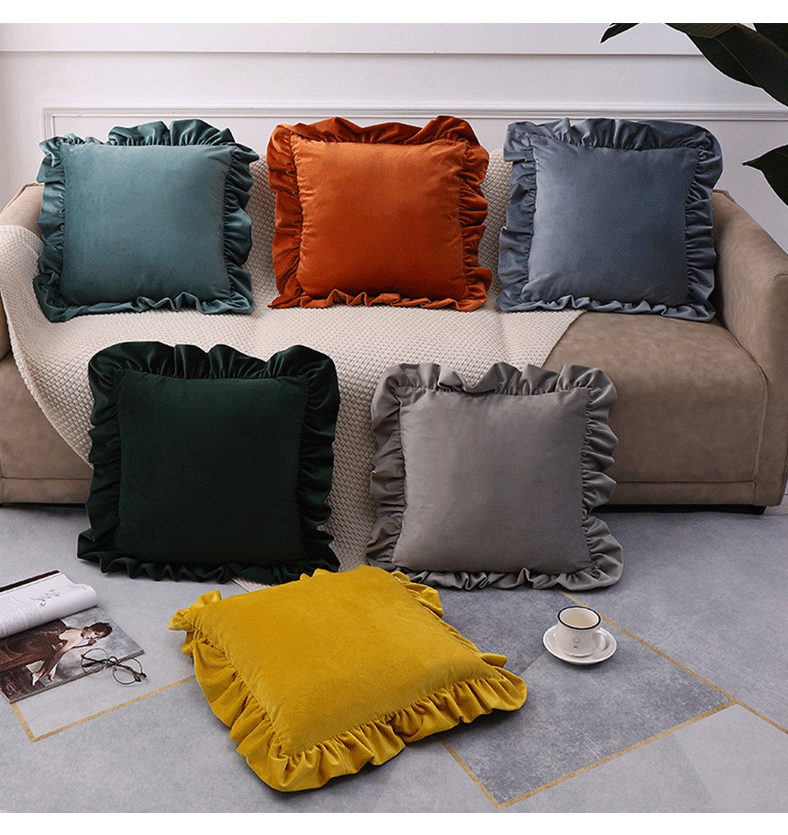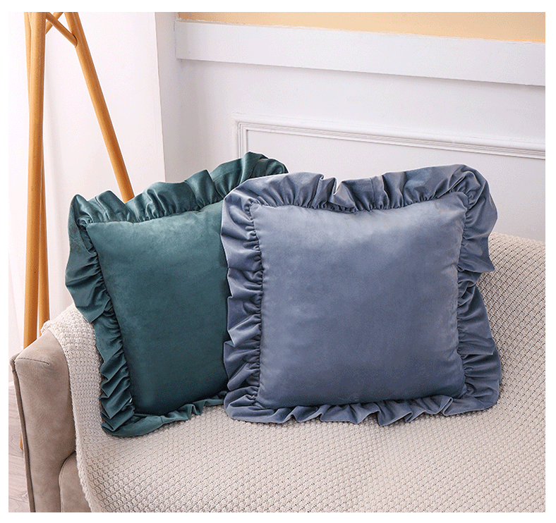 Amazon Nordic ins Style Pillowcase Velvet Solid Color Bedside Pillowcase Ruffled Sofa Cushion Cover