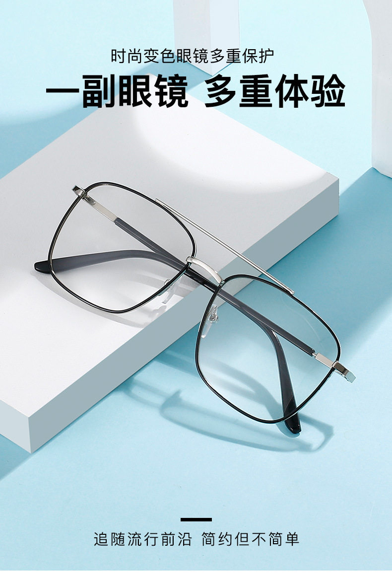 Fashion new anti-blue light glasses women retro metal double beam glasses frame men's color change flat glasses cross-border wholesale