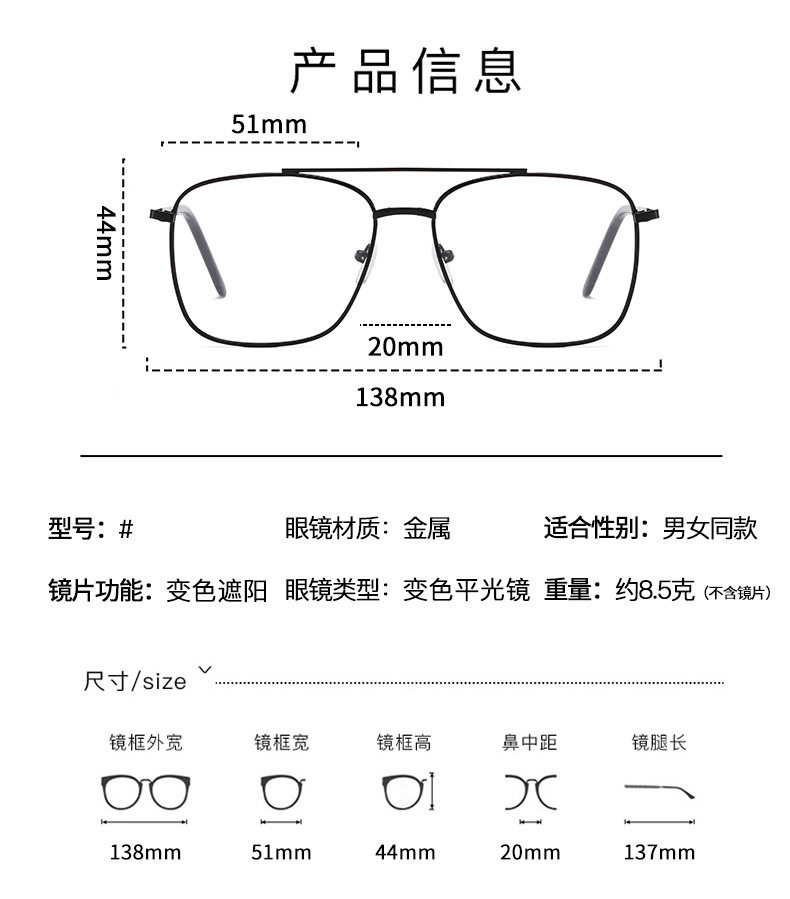| Lens color | Bai Ping Blue Light Film,Color changing film |