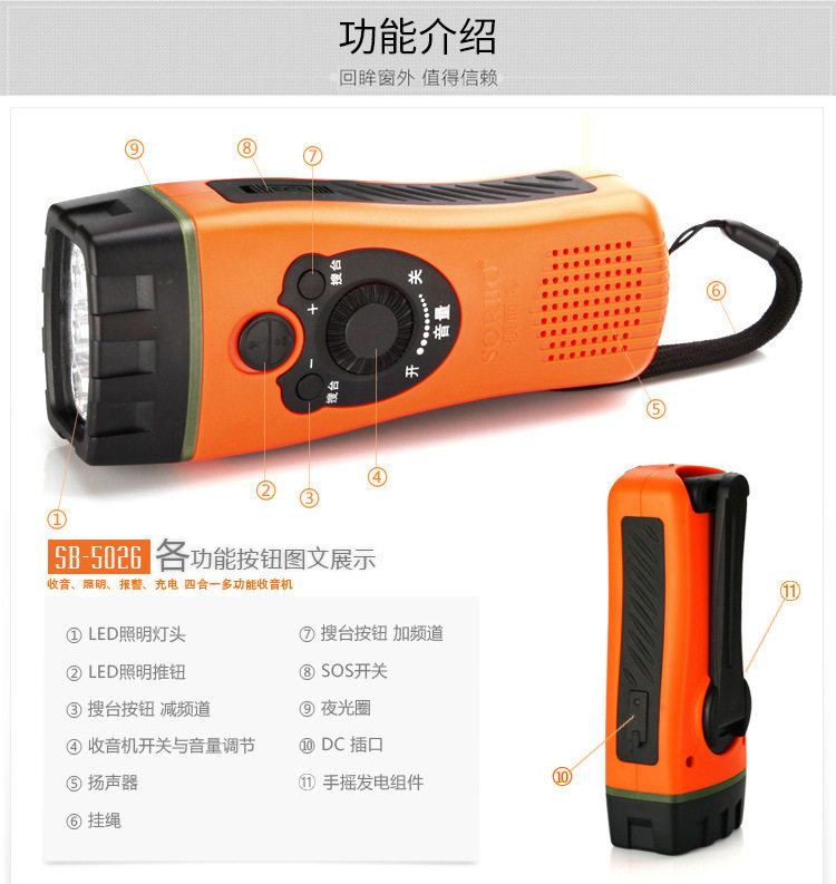 New hand power flashlight 3led flashlight earthquake emergency relief flashlight with radio FM in stock