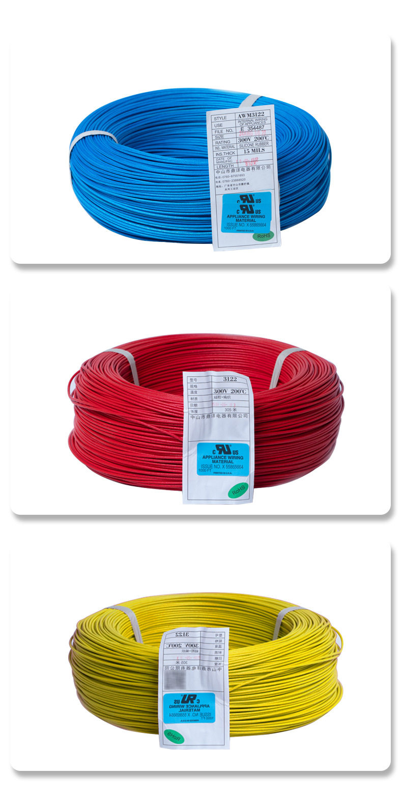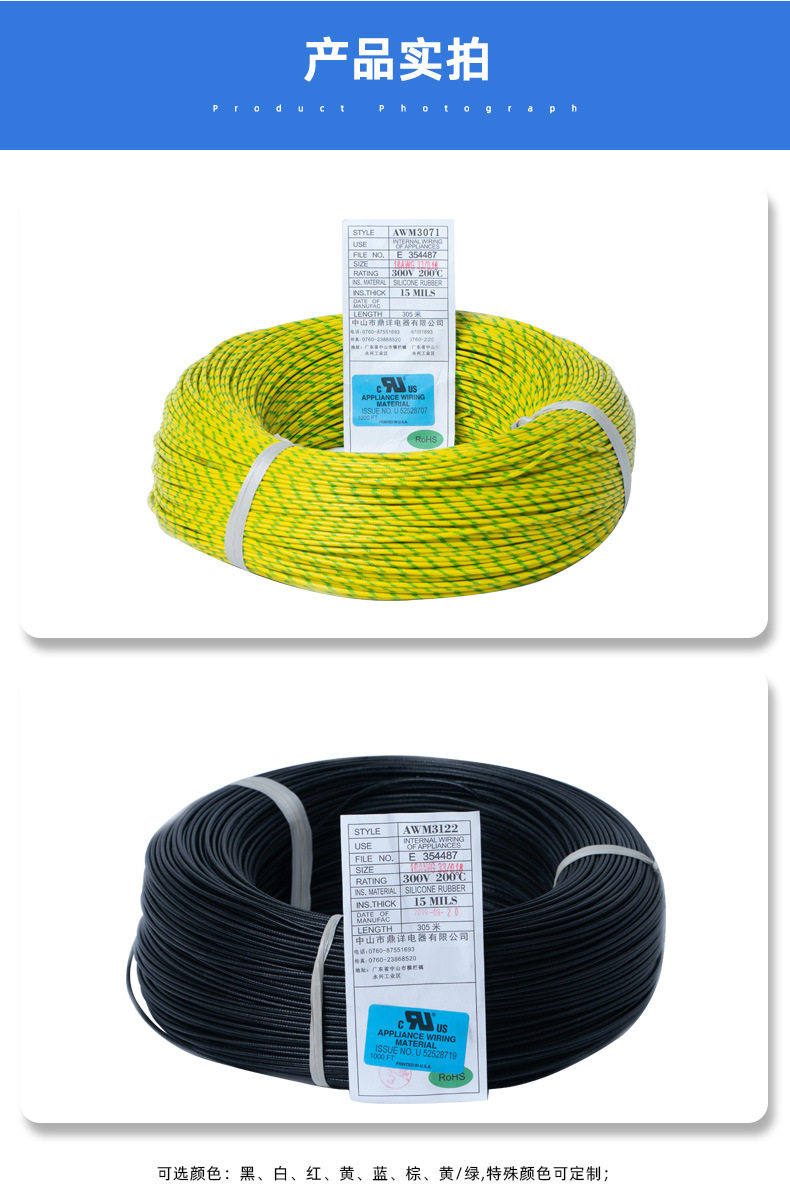 | Specifications and models | 3122 * 26AWG (black),3122 * 26AWG (white),3122 * 26AWG (red),3122 * 26AWG (blue) |