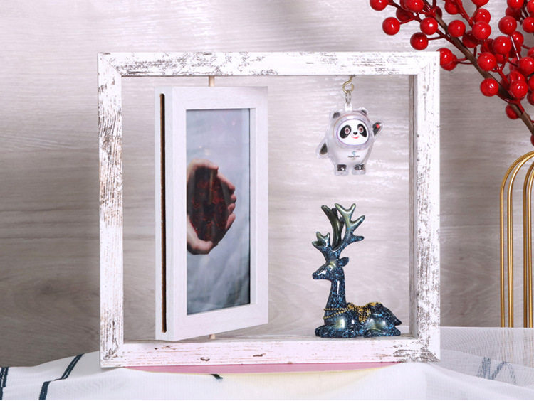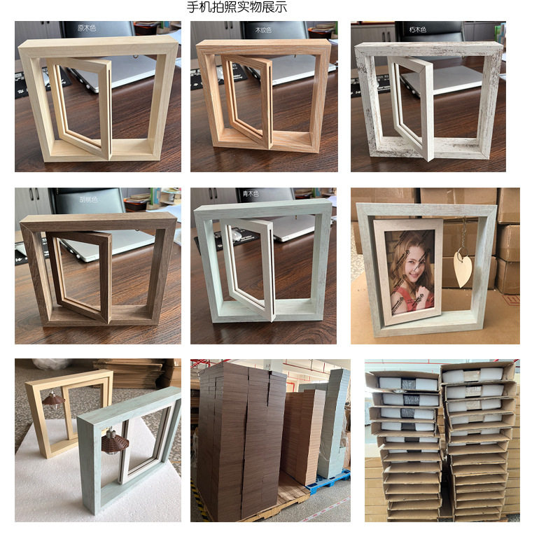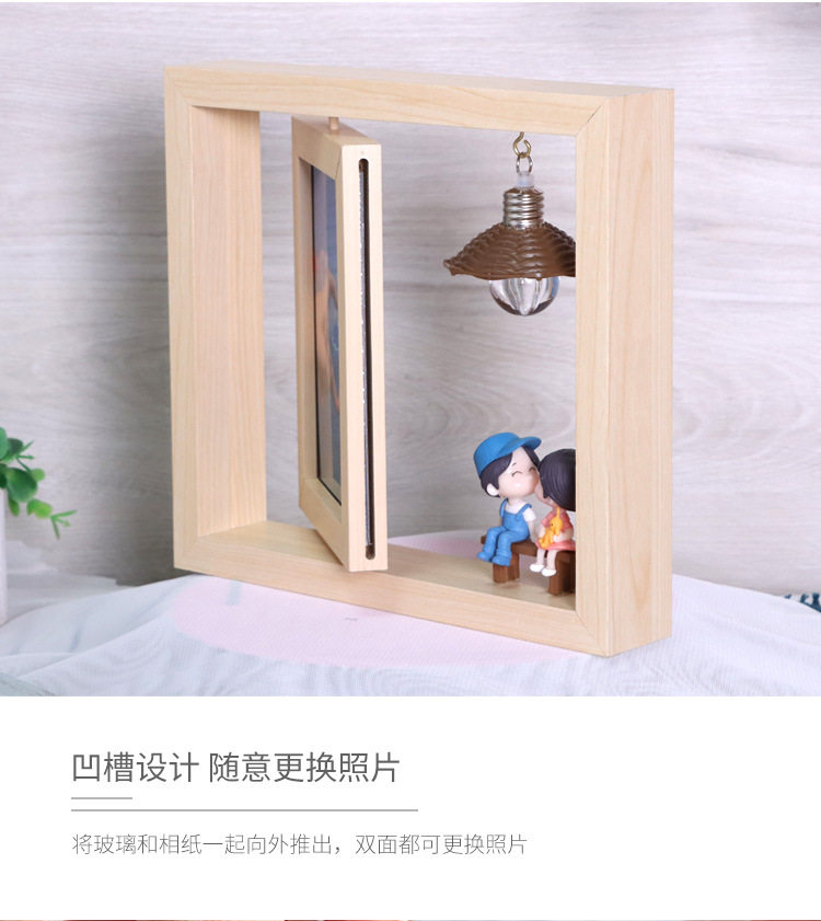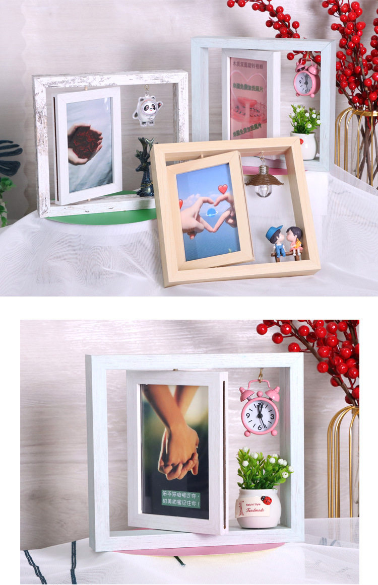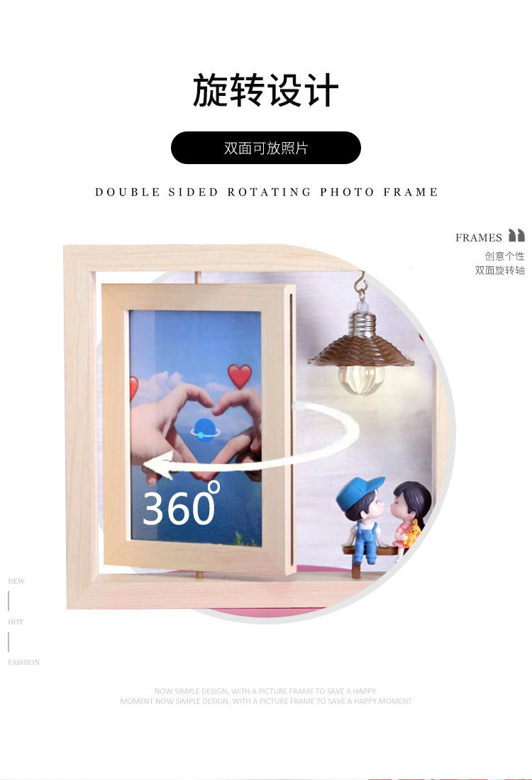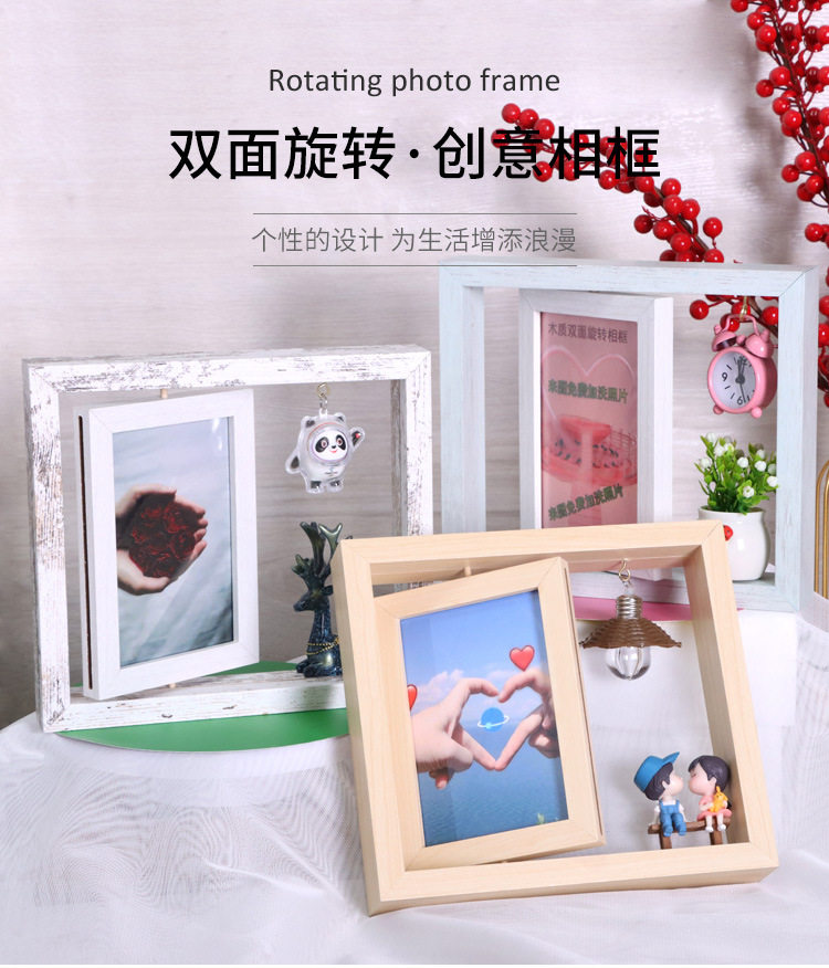 Photo frame manufacturers supply creative rotating double-sided photo wooden frame decoration wholesale couple gift commemorative photo frame