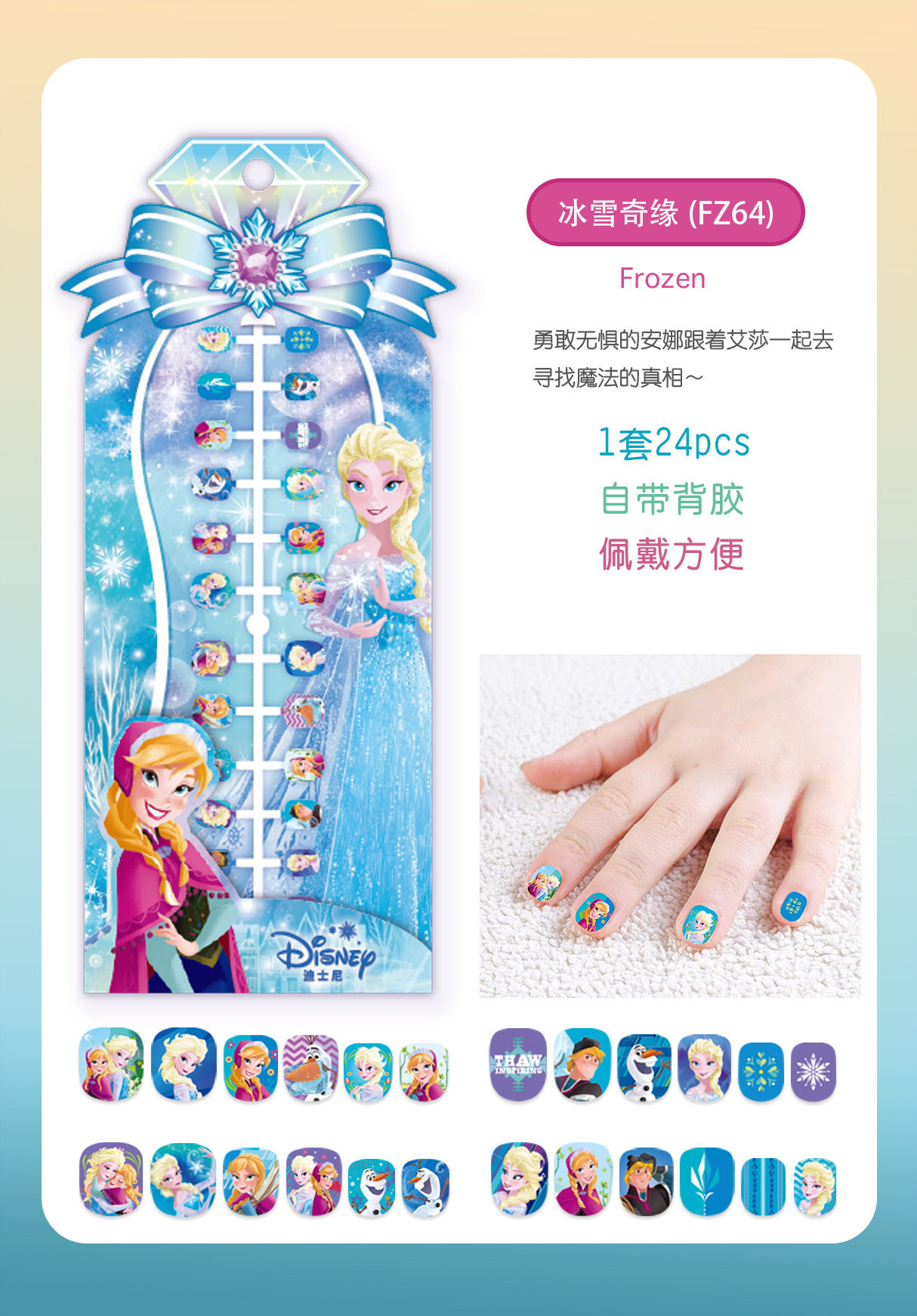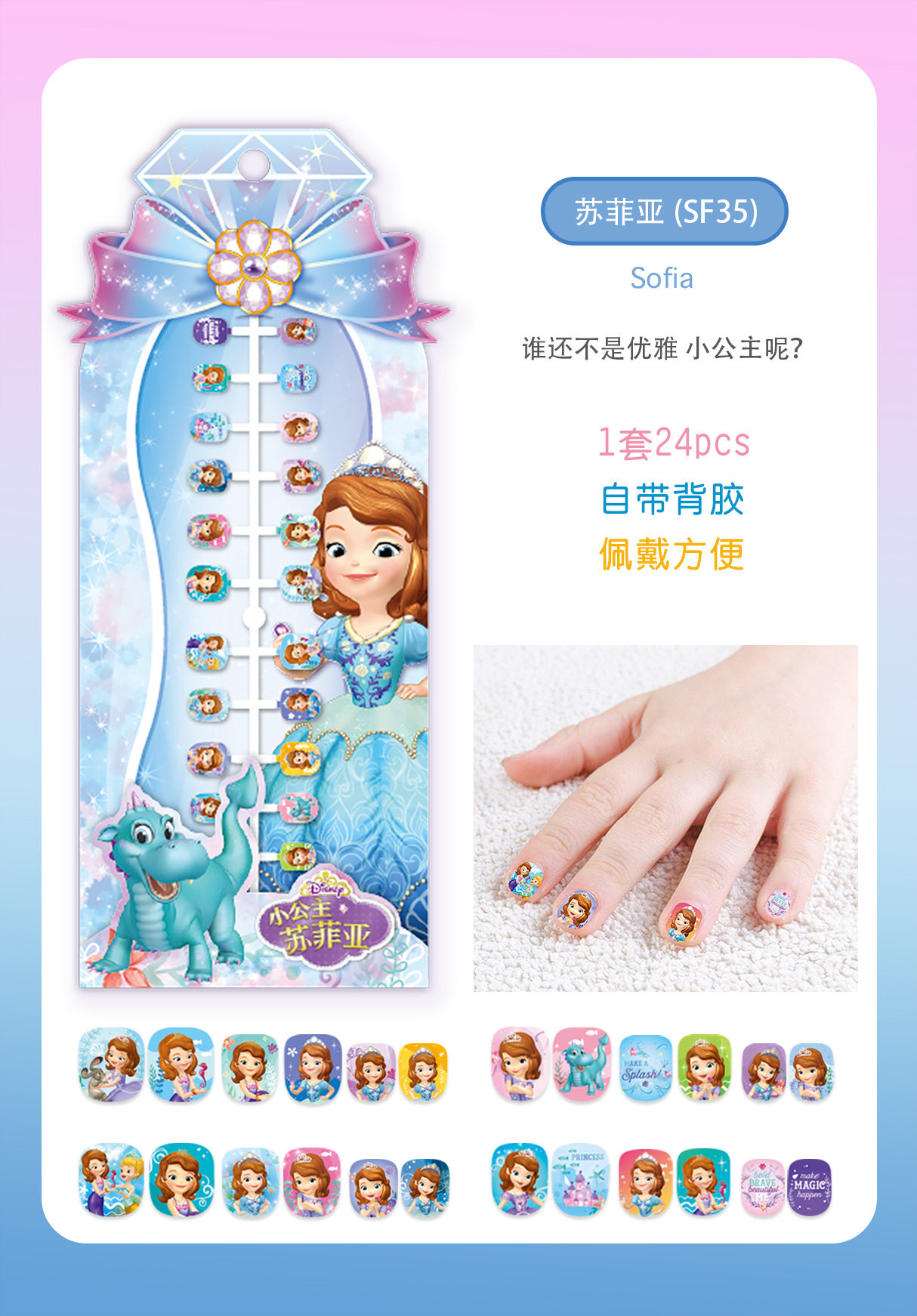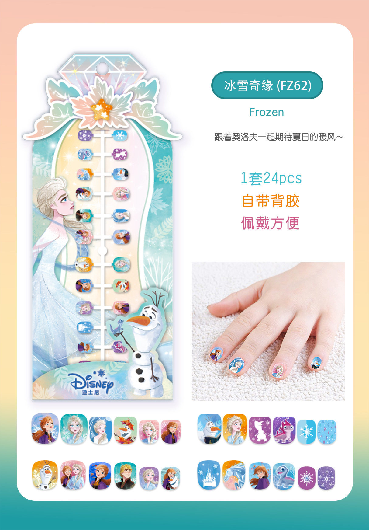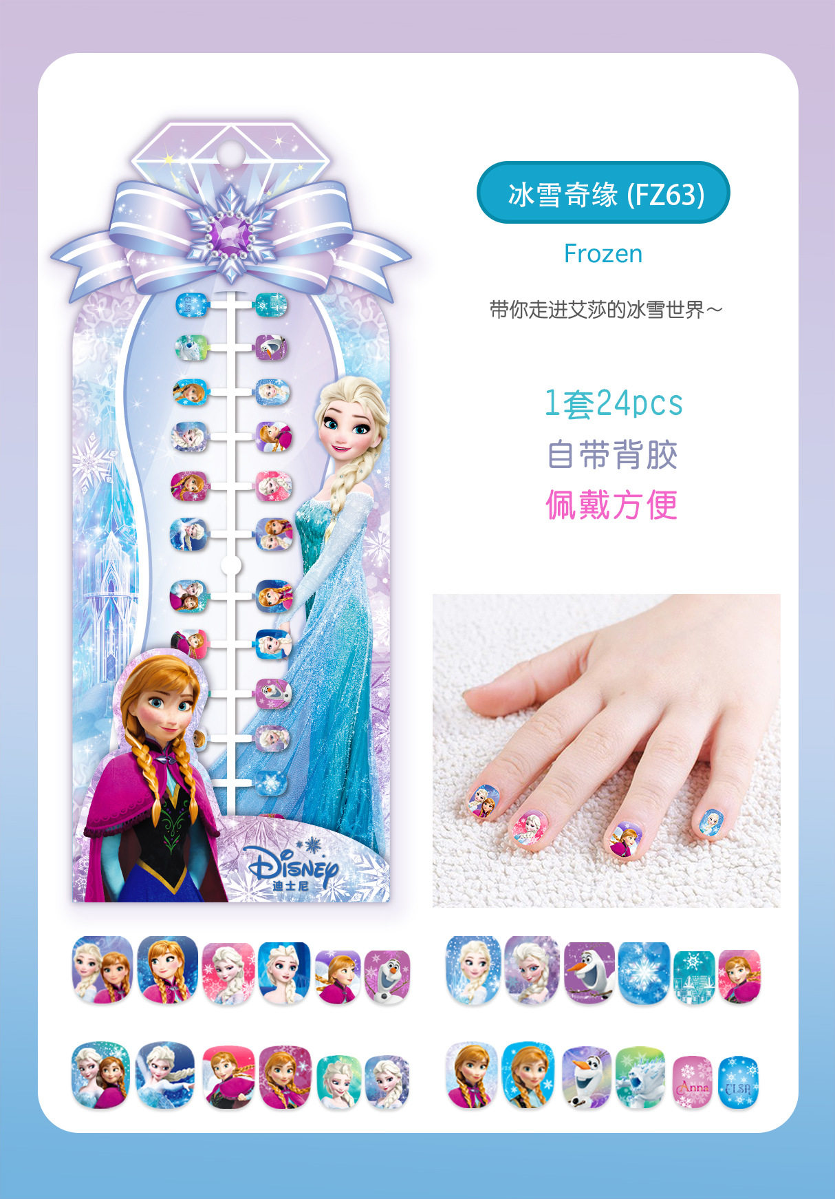 24 Pieces of Ice and Snow Princess Wearable Nails Children's Dress up Nail Art Patch Mermaid Cartoon Removable Fake Nails Sequin