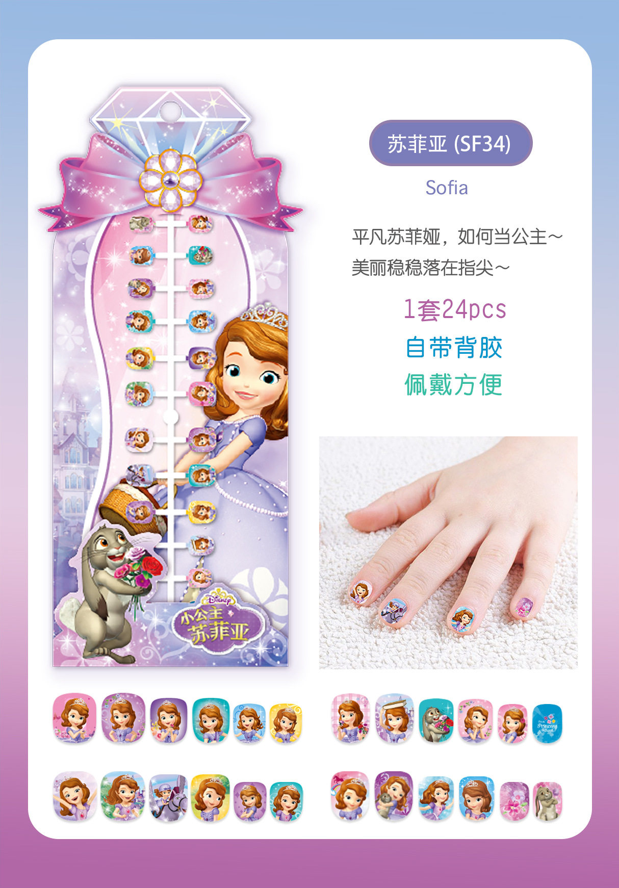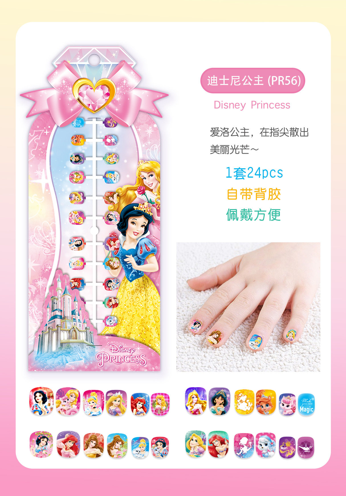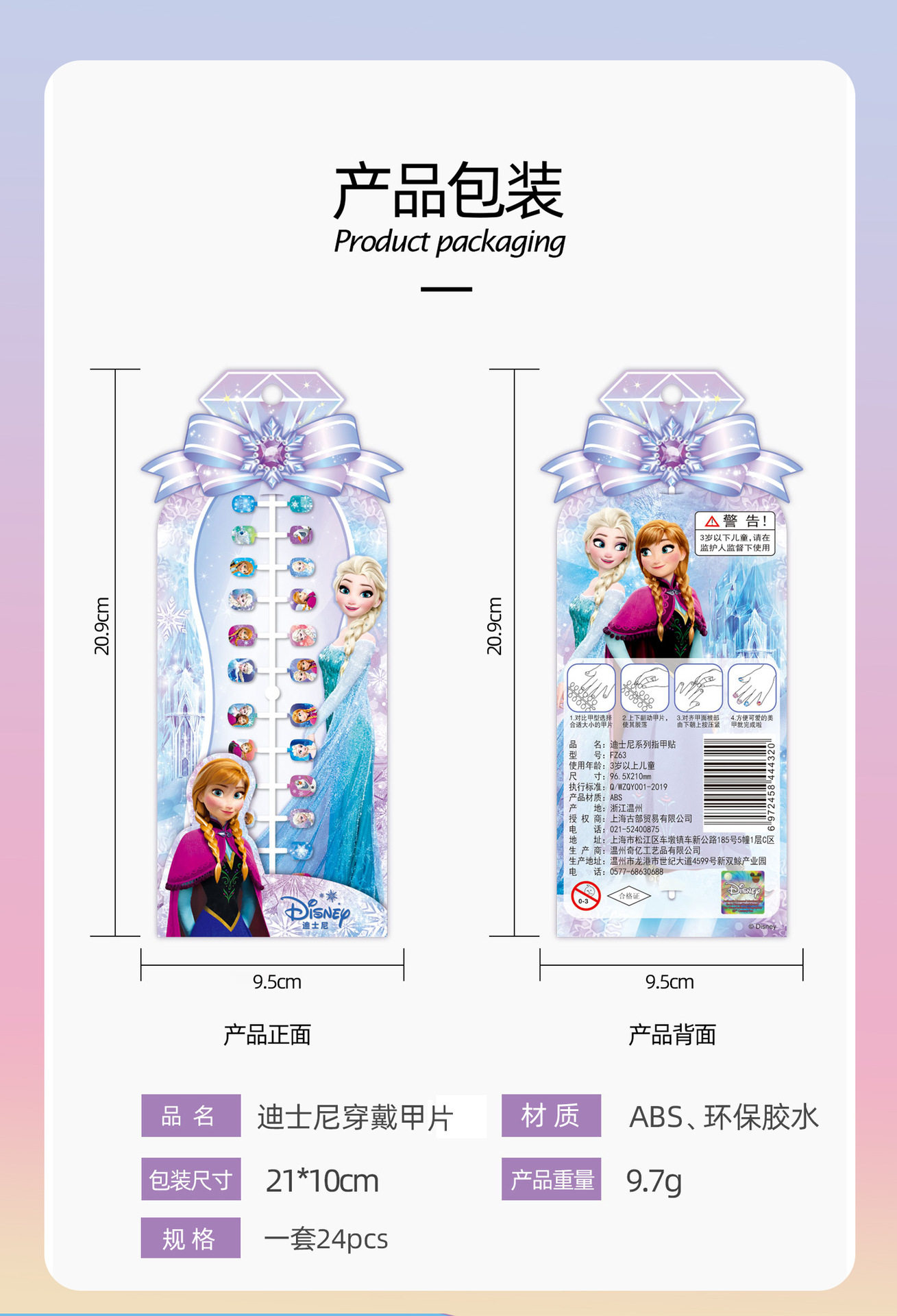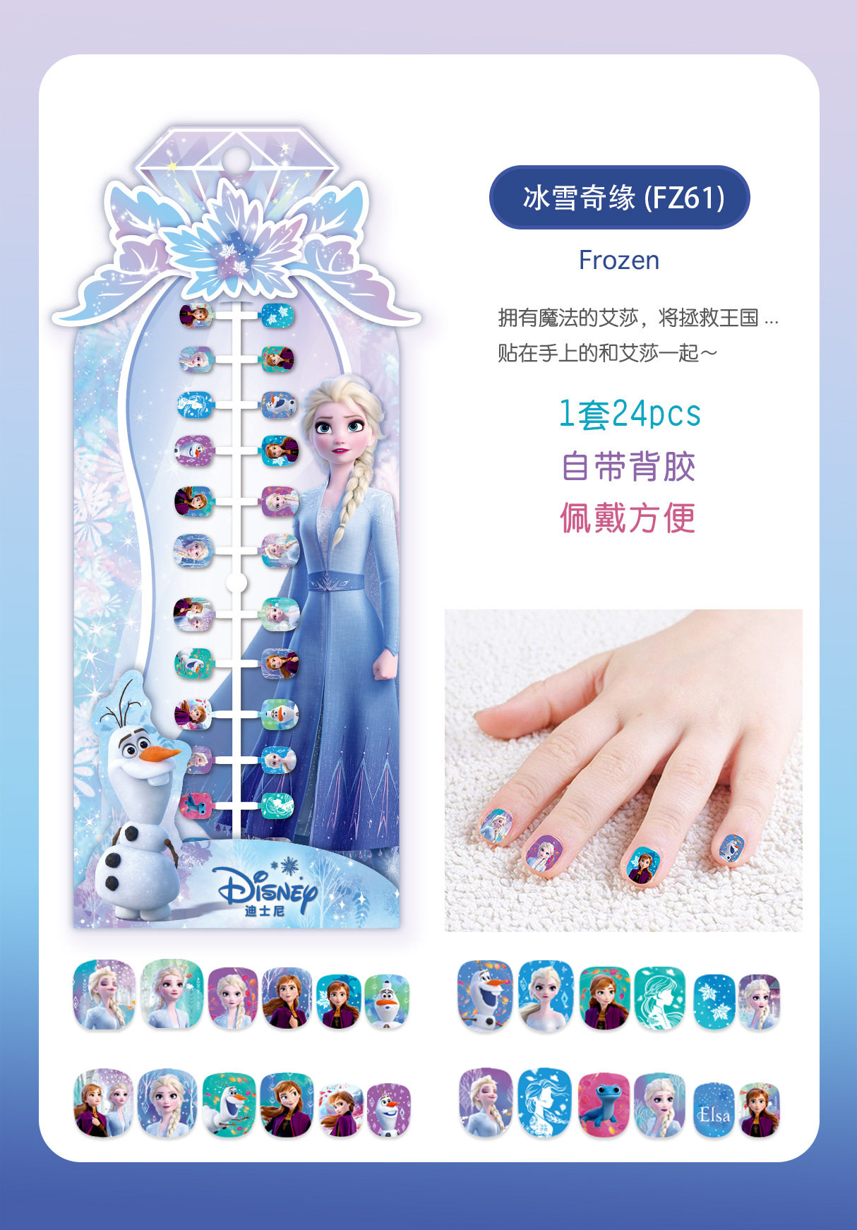 24 Pieces of Ice and Snow Princess Wearable Nails Children's Dress up Nail Art Patch Mermaid Cartoon Removable Fake Nails Sequin
