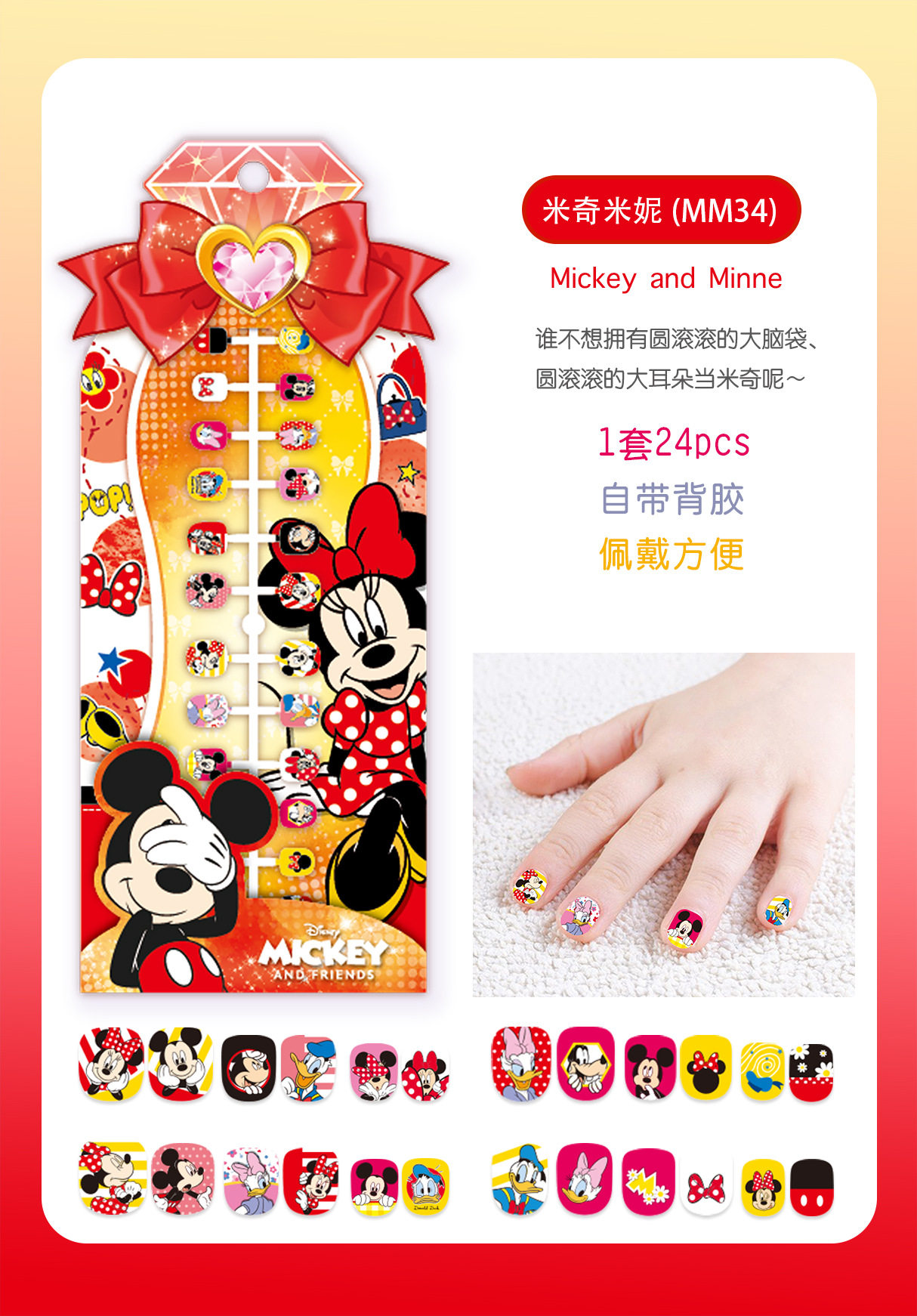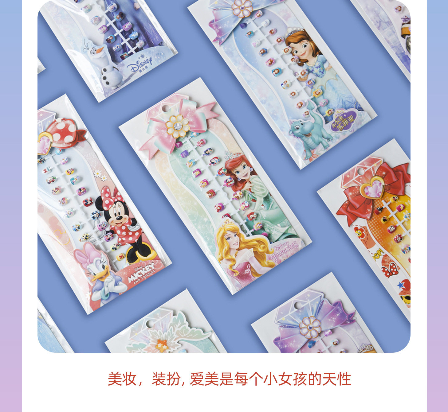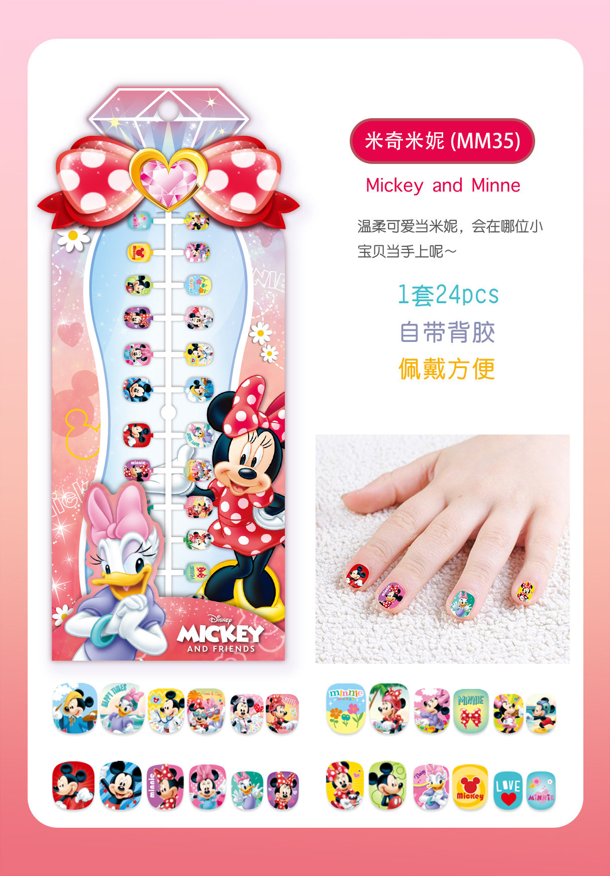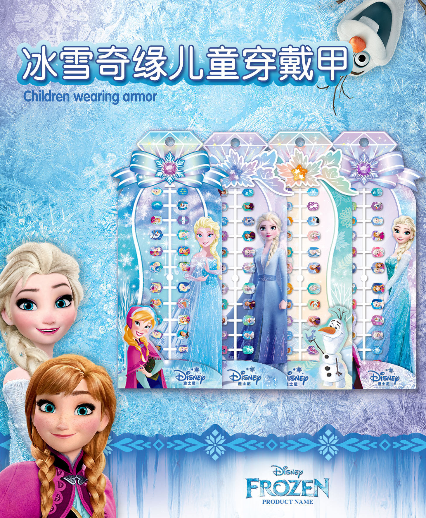24 Pieces of Ice and Snow Princess Wearable Nails Children's Dress up Nail Art Patch Mermaid Cartoon Removable Fake Nails Sequin