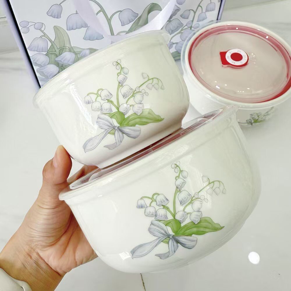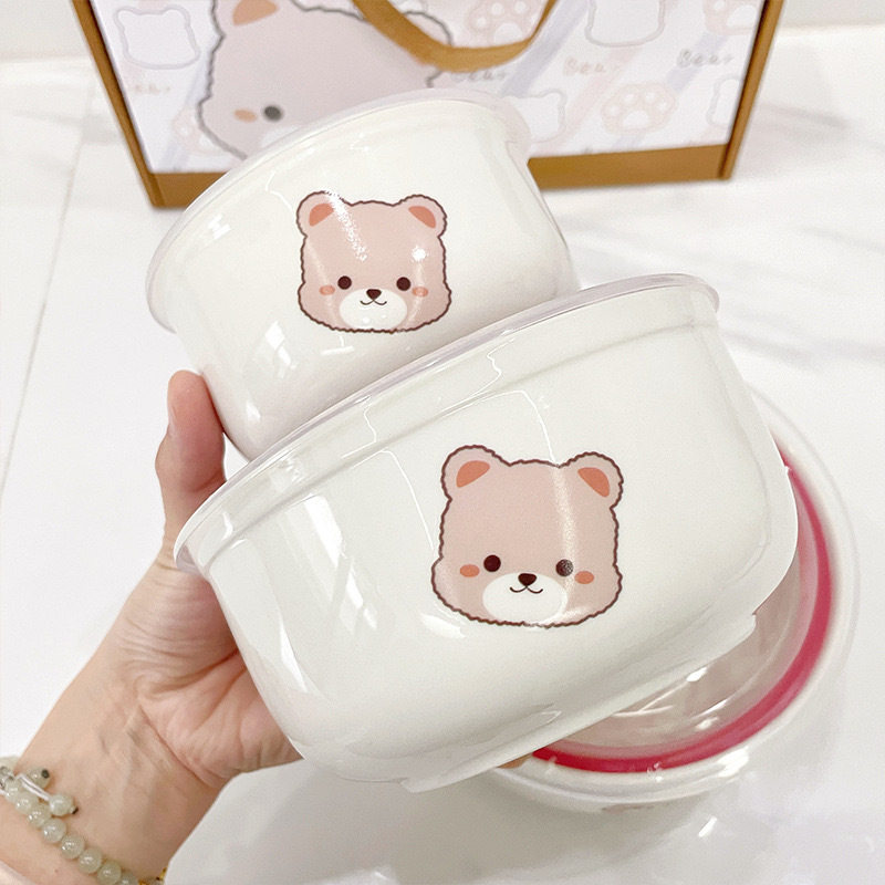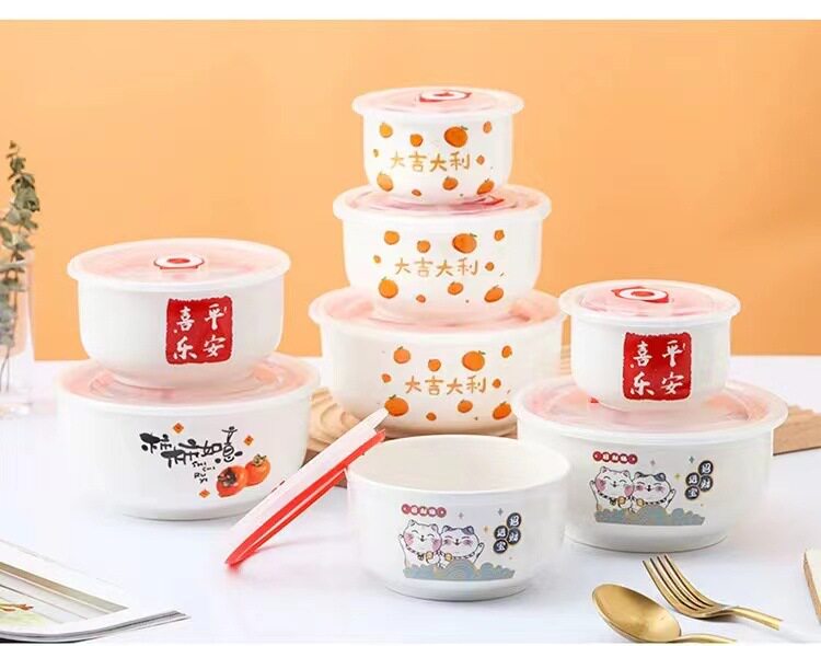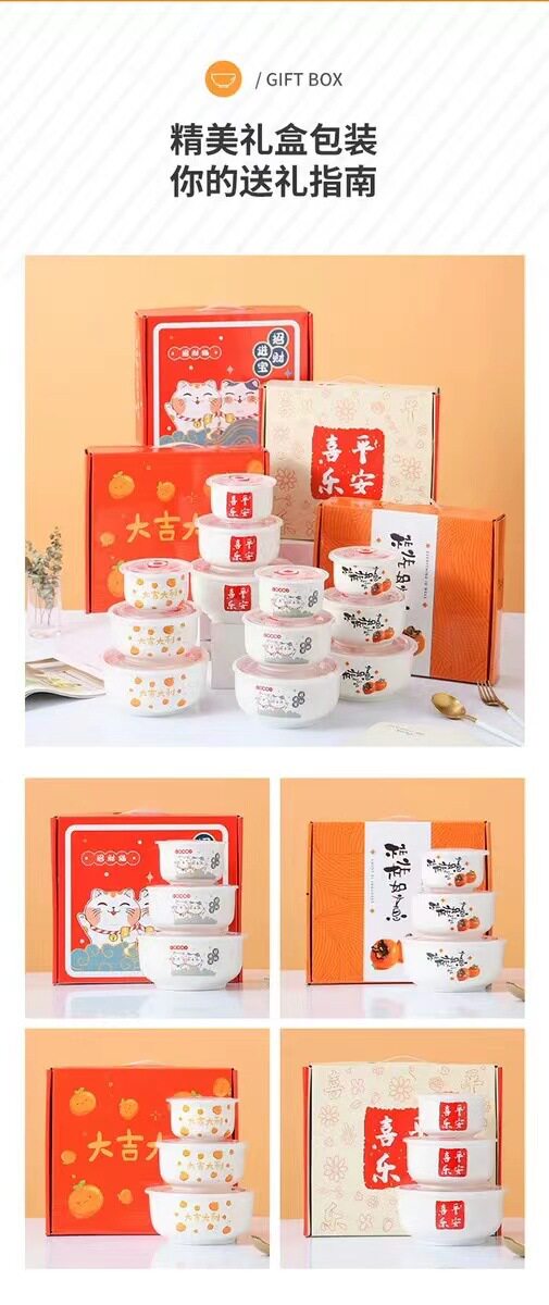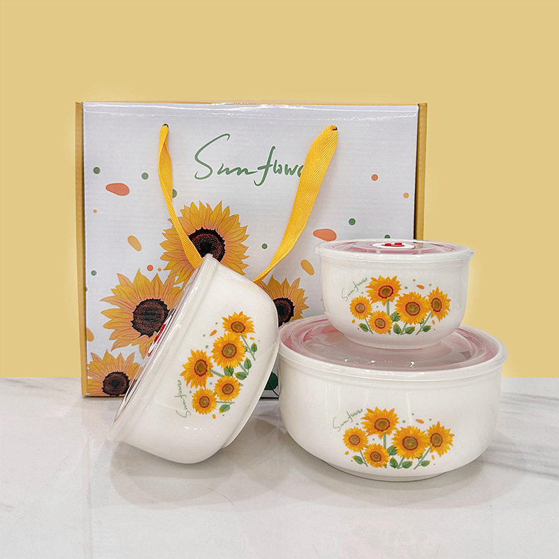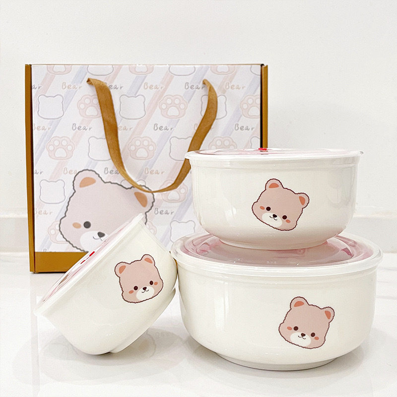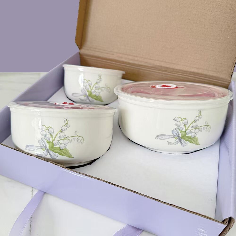 Ceramic Fresh-keeping Bowl Three-piece Set Sealed Lunch Box Creative Gift Set Bowl Opening Activities Promotional Return with Printed LOGO