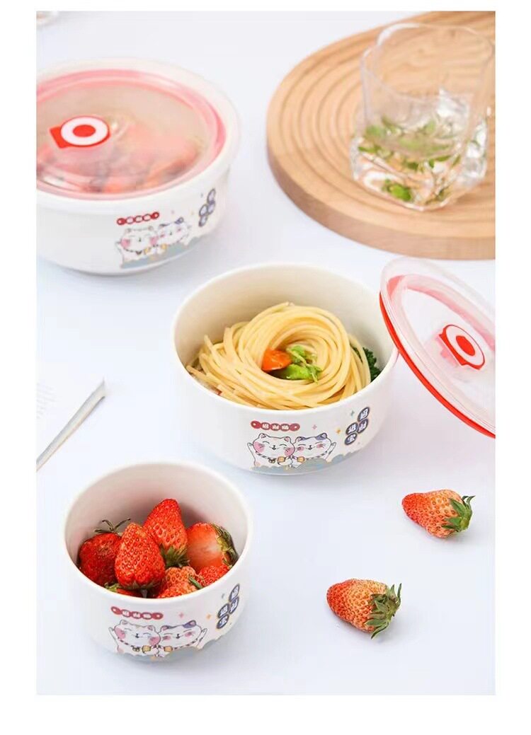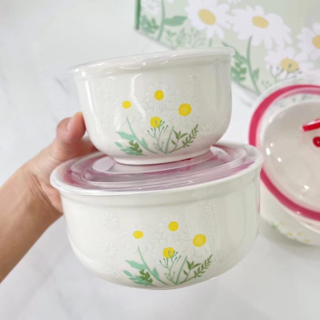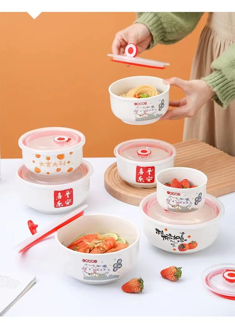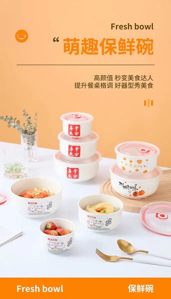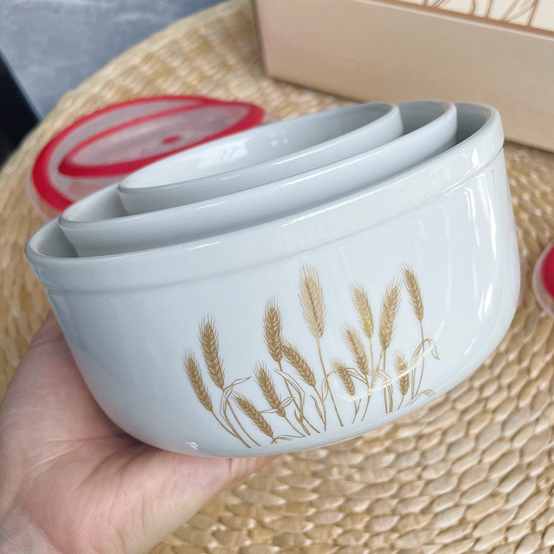 Ceramic Fresh-keeping Bowl Three-piece Set Sealed Lunch Box Creative Gift Set Bowl Opening Activities Promotional Return with Printed LOGO