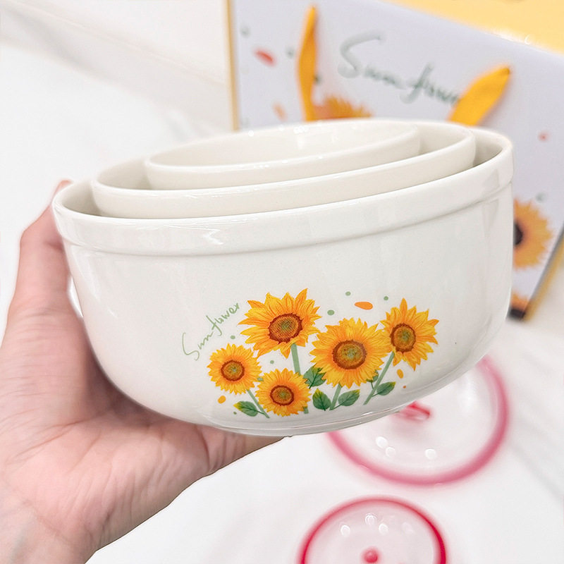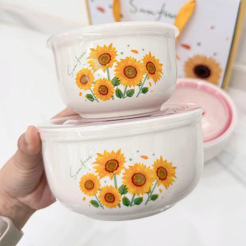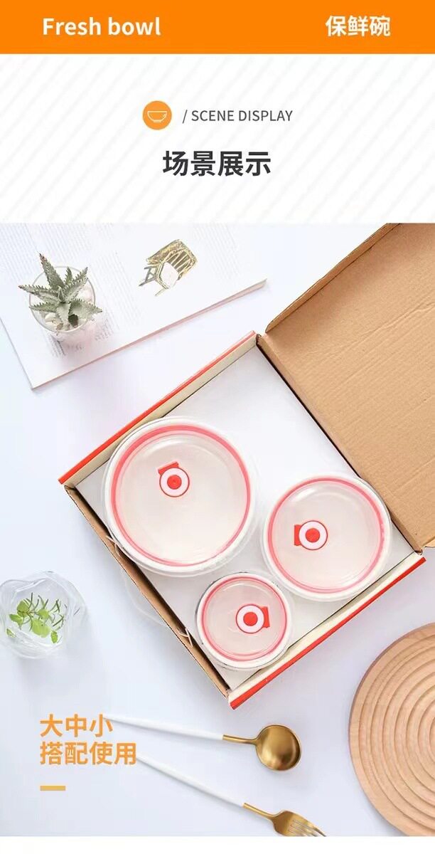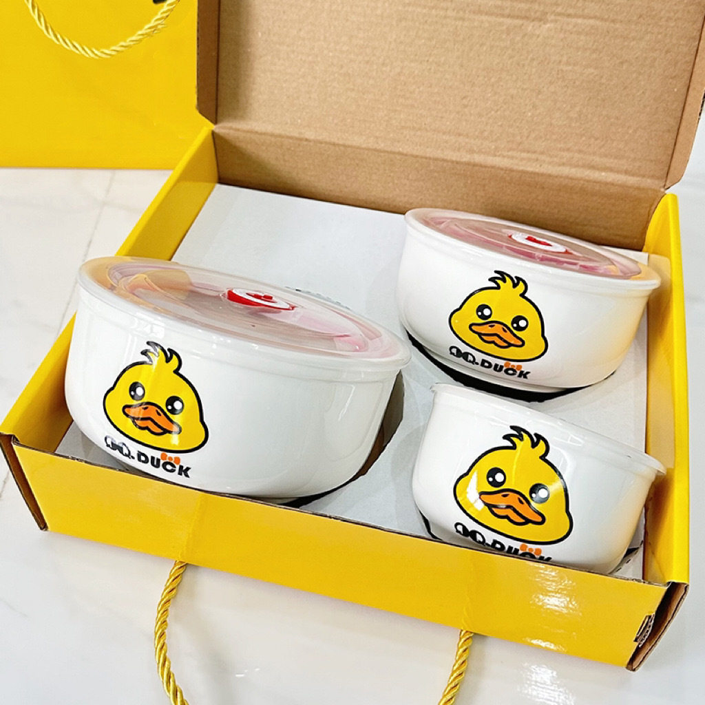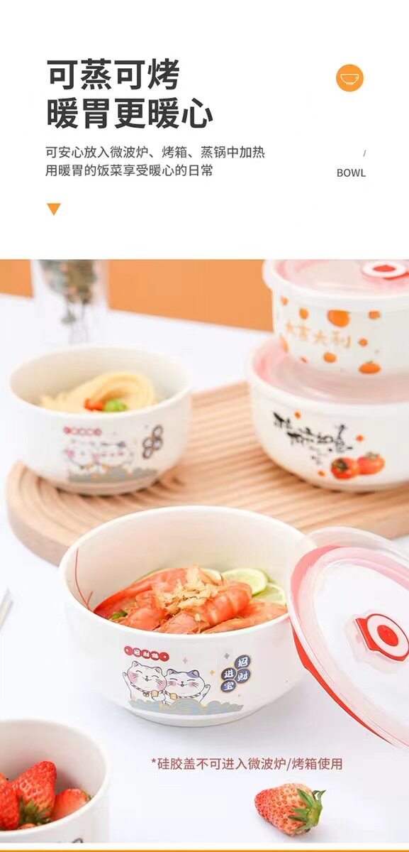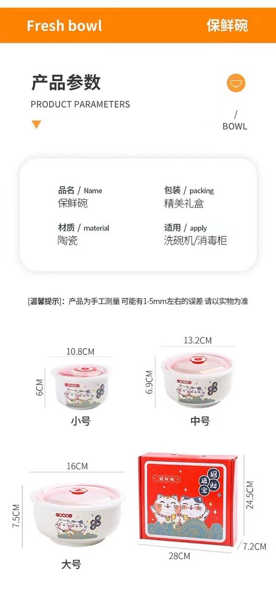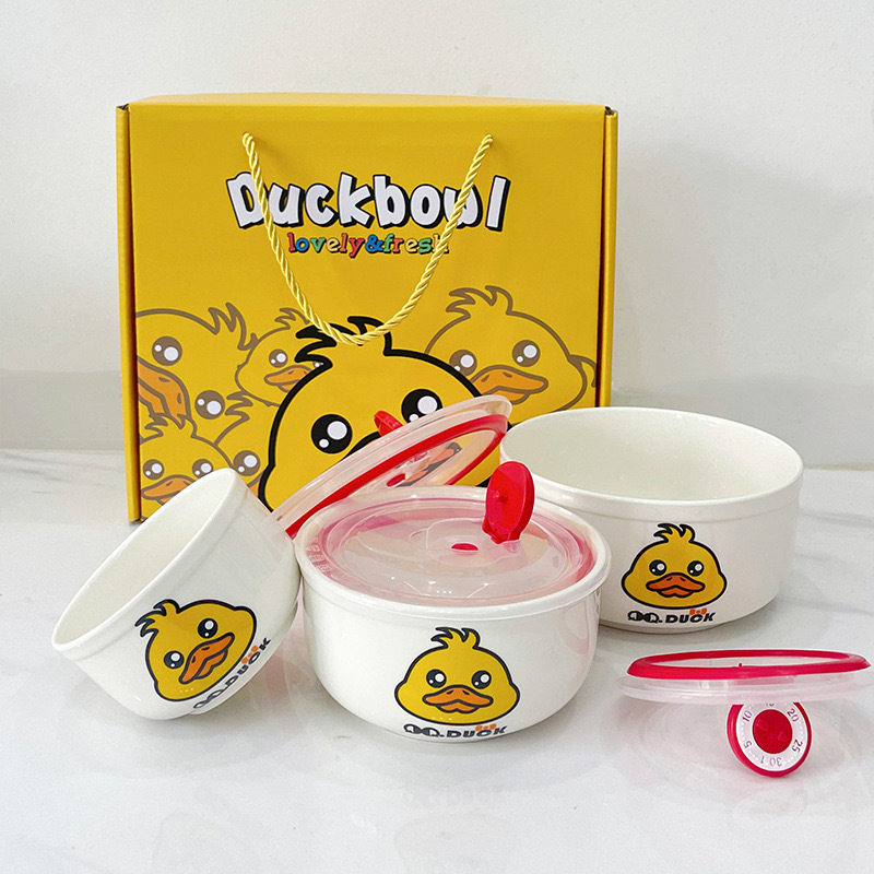 Ceramic Fresh-keeping Bowl Three-piece Set Sealed Lunch Box Creative Gift Set Bowl Opening Activities Promotional Return with Printed LOGO