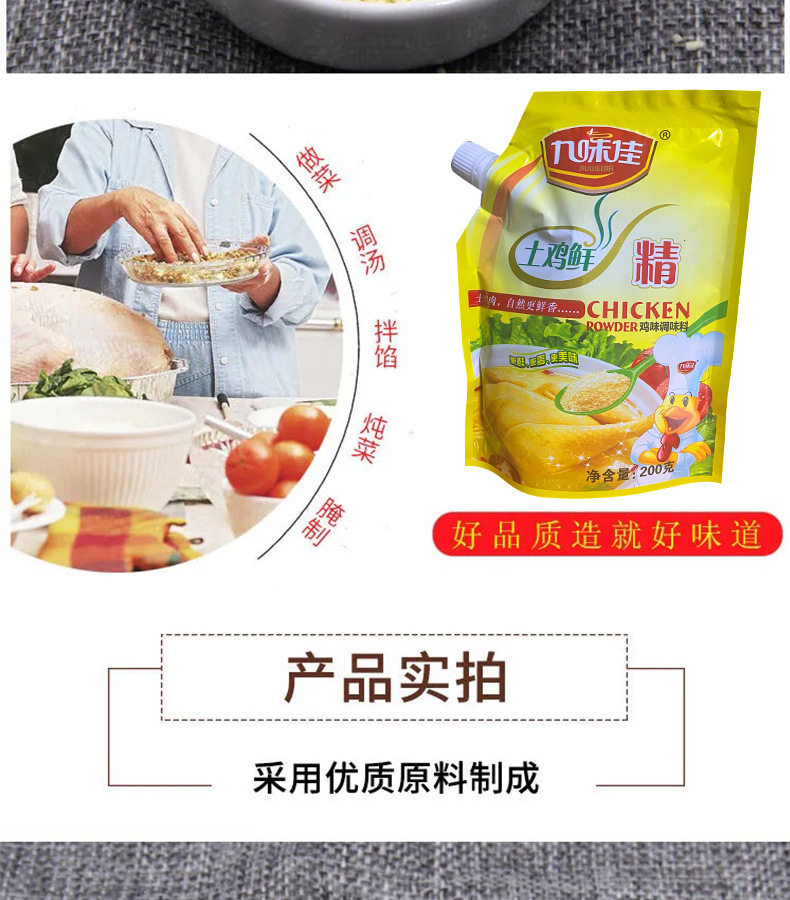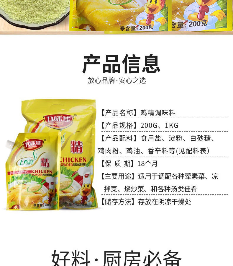 Jiuweijia local chicken essence big bag commercial fresh thick hot pot chicken essence kitchen seasoning 200g household soil chicken essence gourmet powder