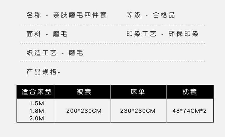 Dimensions 1.8 m bed four-piece set,2.0 m bed four-piece set
