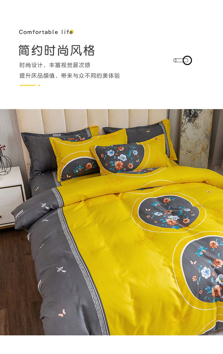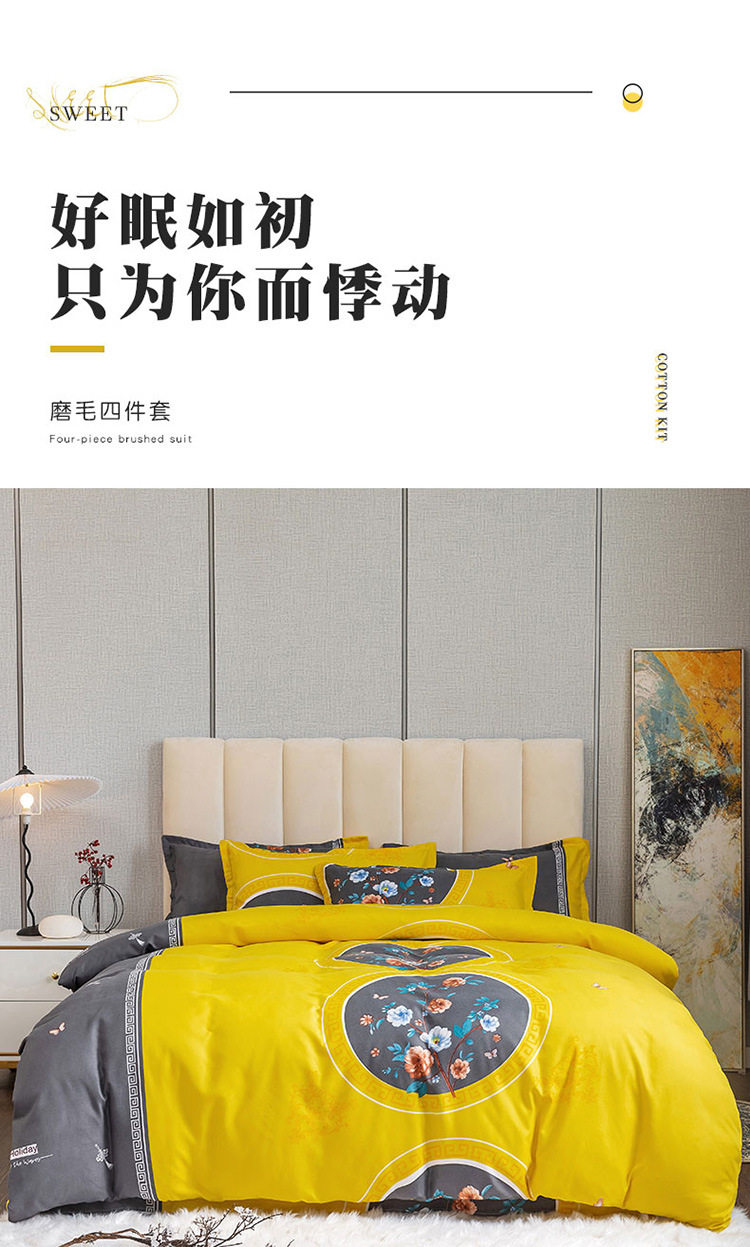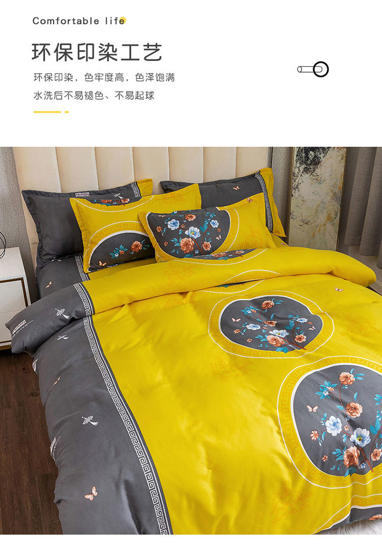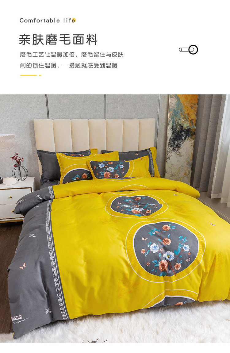 Nantong Fulena Four-piece Set Wholesale Chinese Style Sanding Washed Cotton Bed Sheet Quilt Cover Gift Four-piece Set for Hair