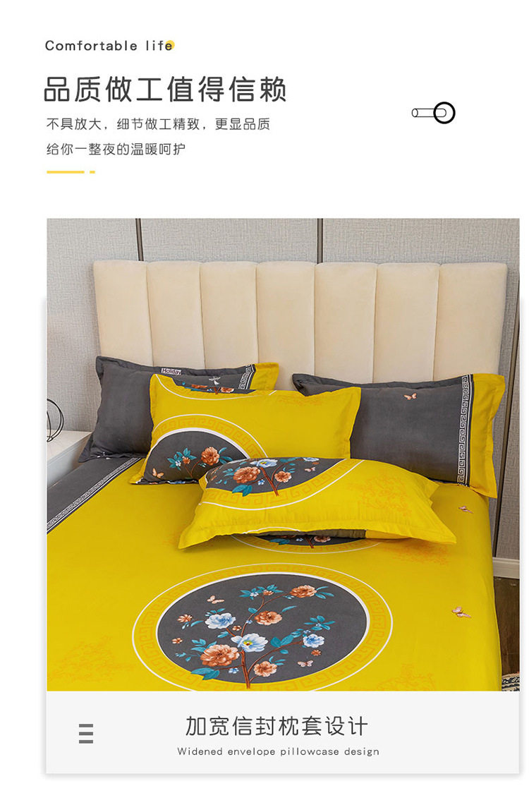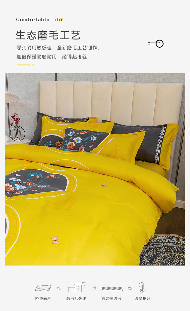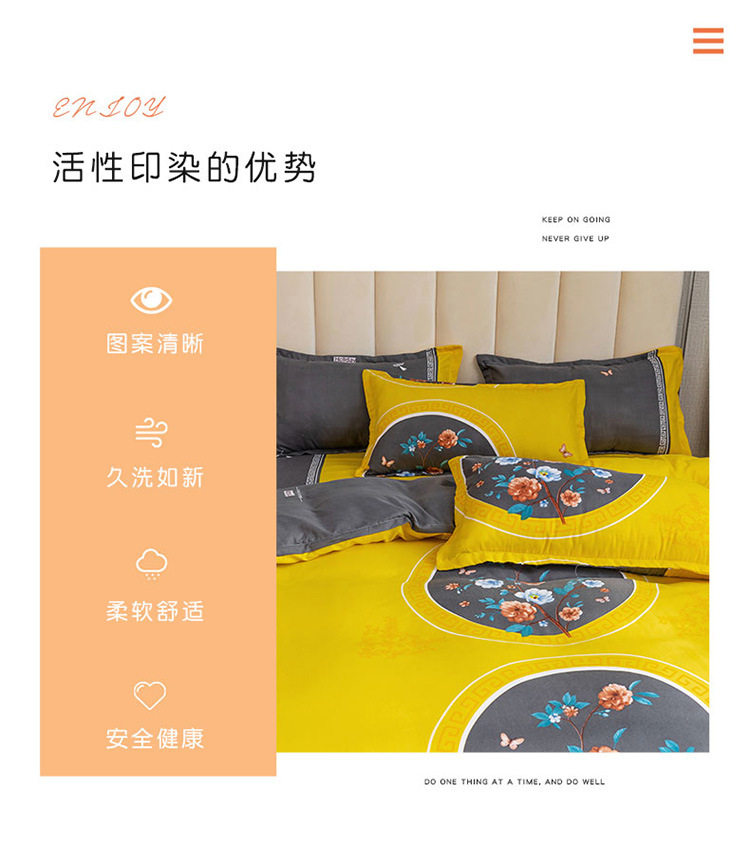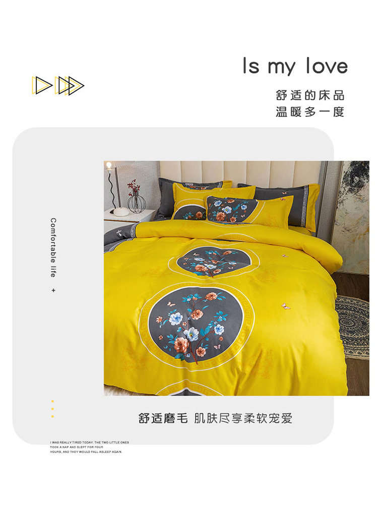 Nantong Fulena Four-piece Set Wholesale Chinese Style Sanding Washed Cotton Bed Sheet Quilt Cover Gift Four-piece Set for Hair