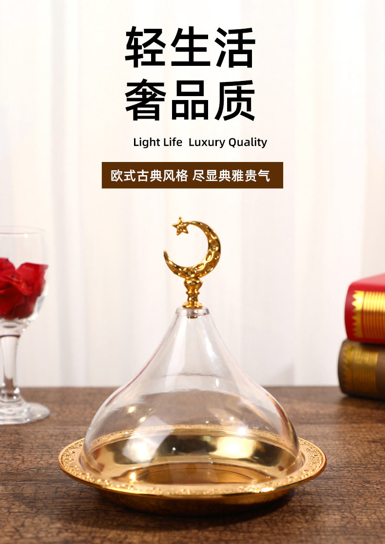 Factory direct European elegant atmosphere alloy solid color carved disc portable Alec cover cake snack plate