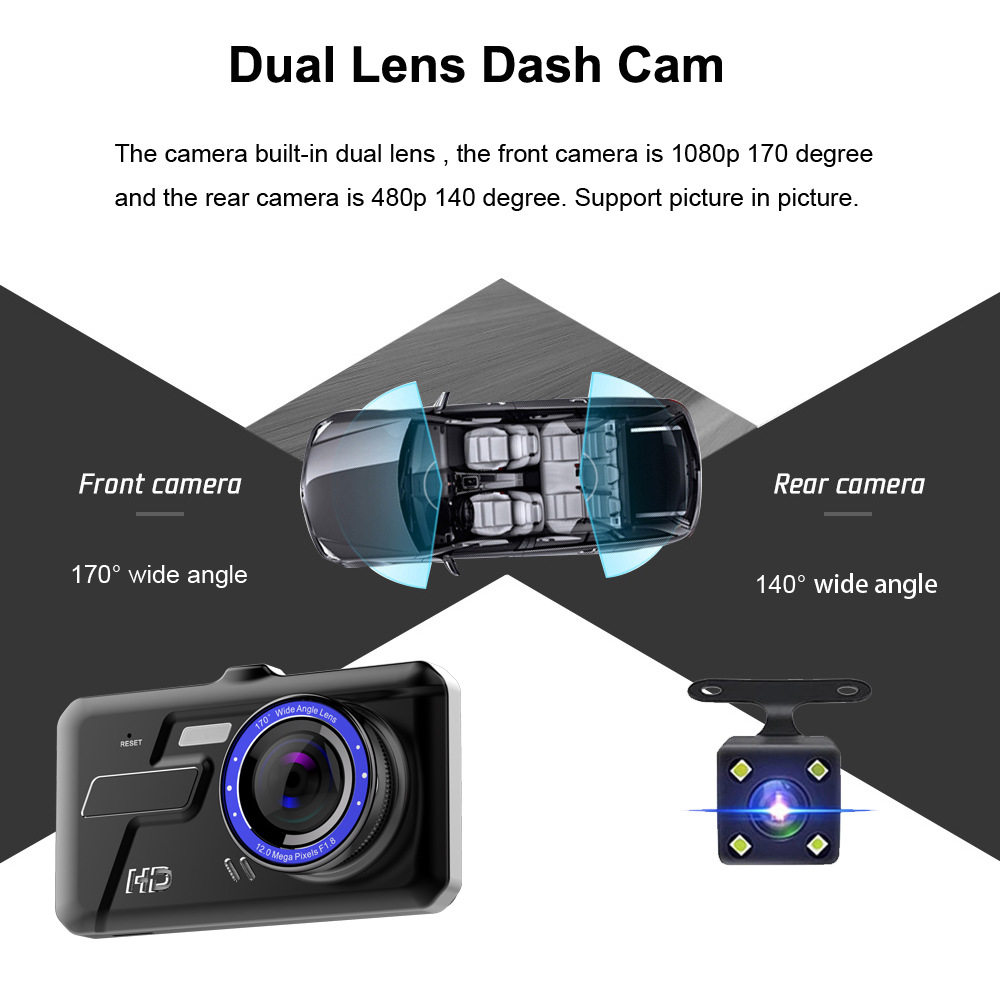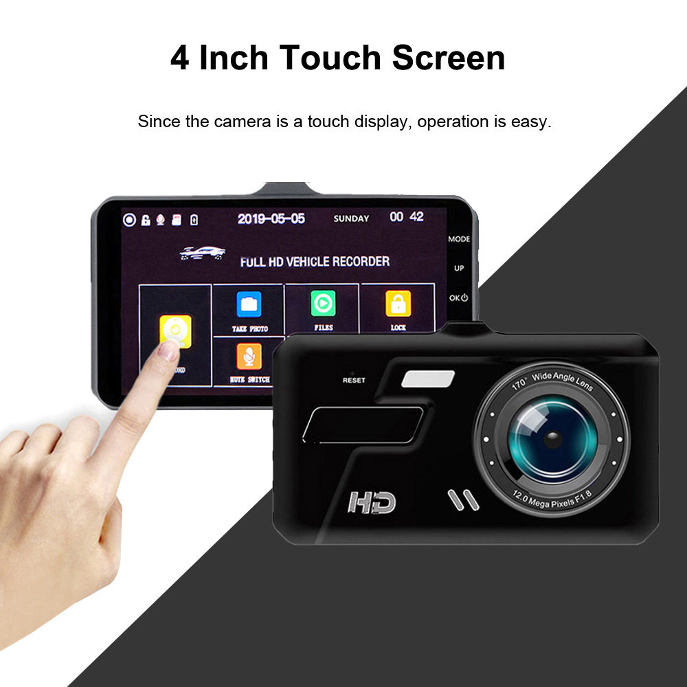 Touch screen 4-inch driving recorder HD Dual lens 1080P front and rear video car DVR with reversing image