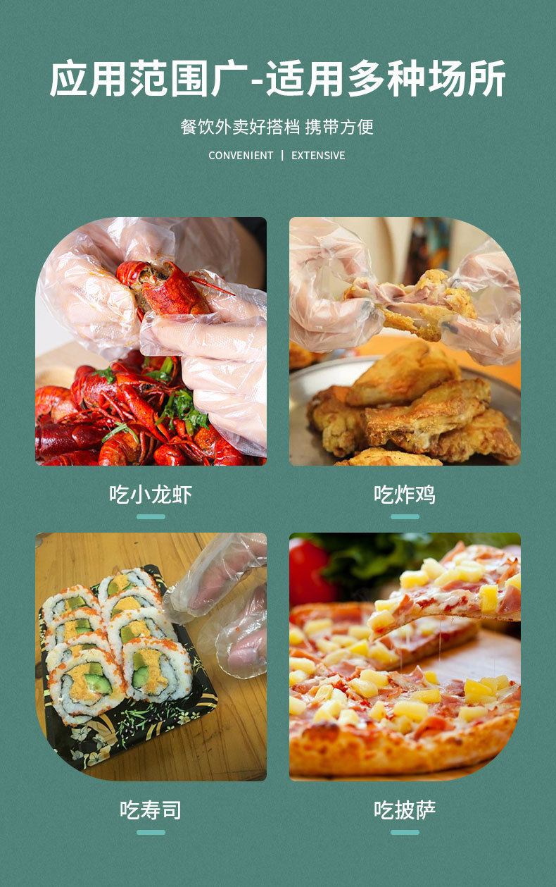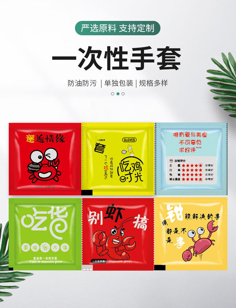 Takeaway crayfish barbecue food plastic thickened transparent commercial edible disposable gloves wholesale independent packaging