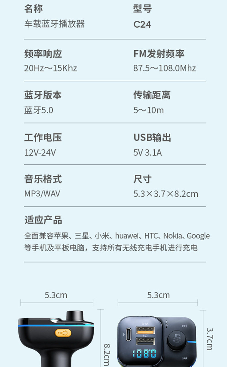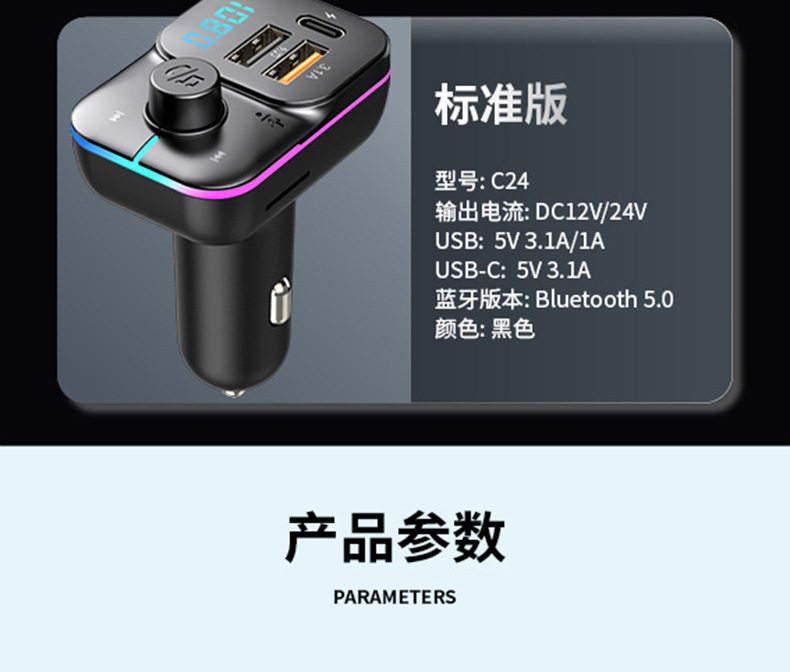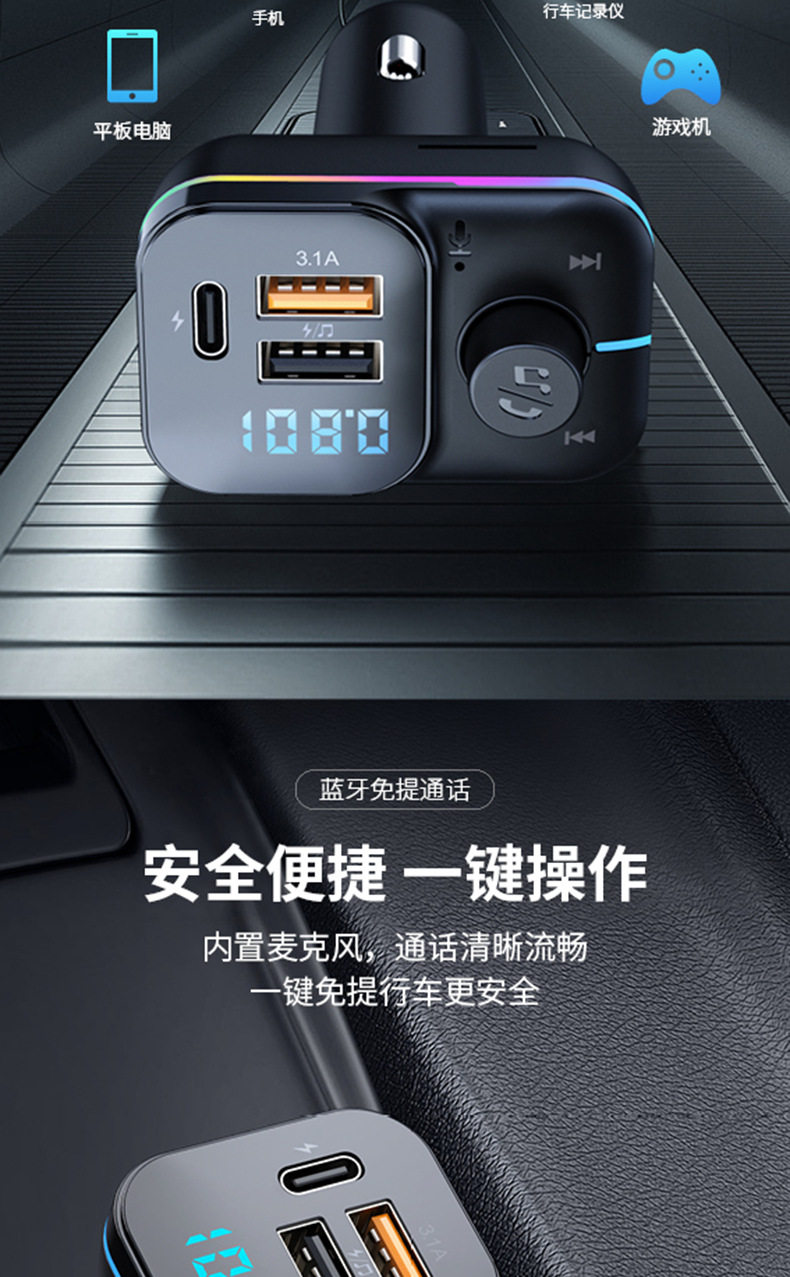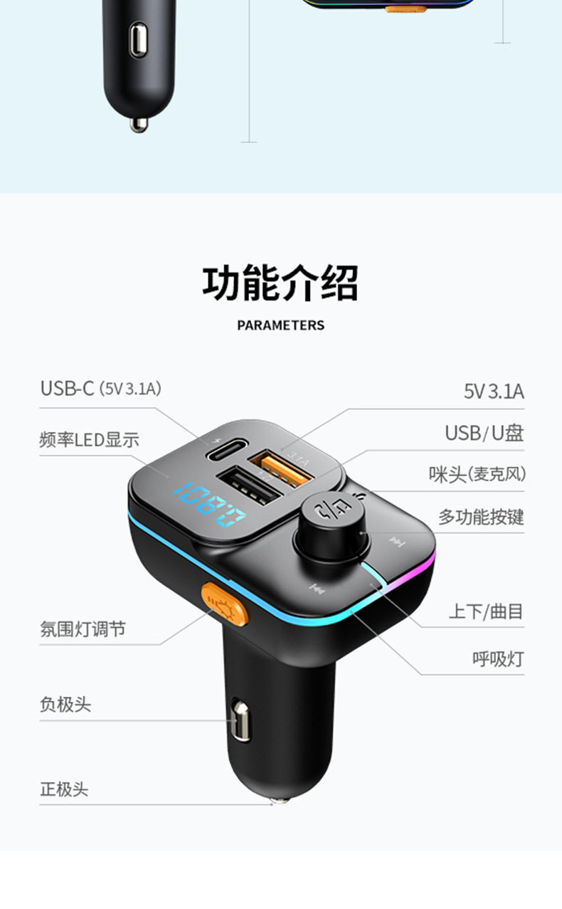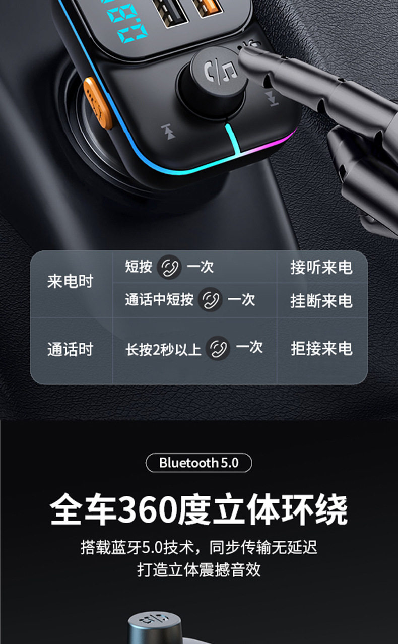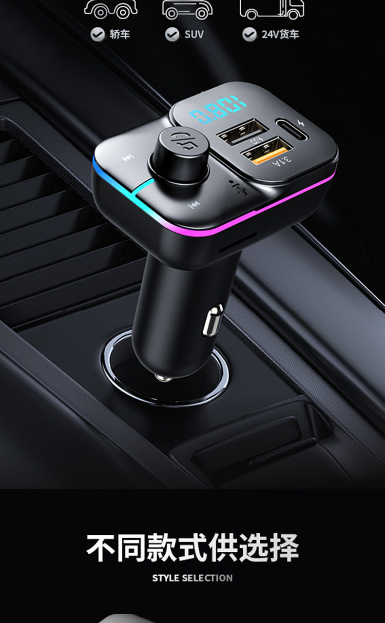 Cross-Border New Colorful Light Car Mp3 Player Charger Multi-Function Hands-Free Fm Transmitter