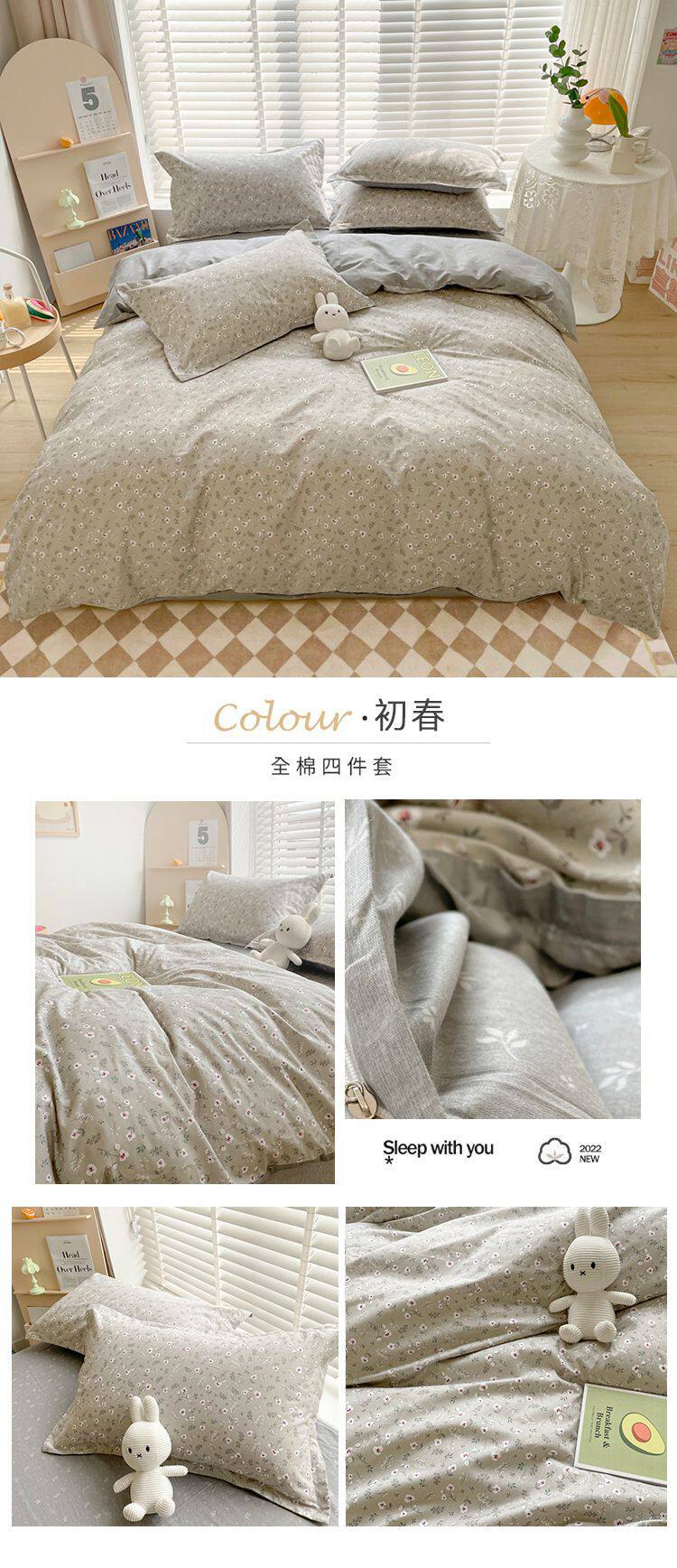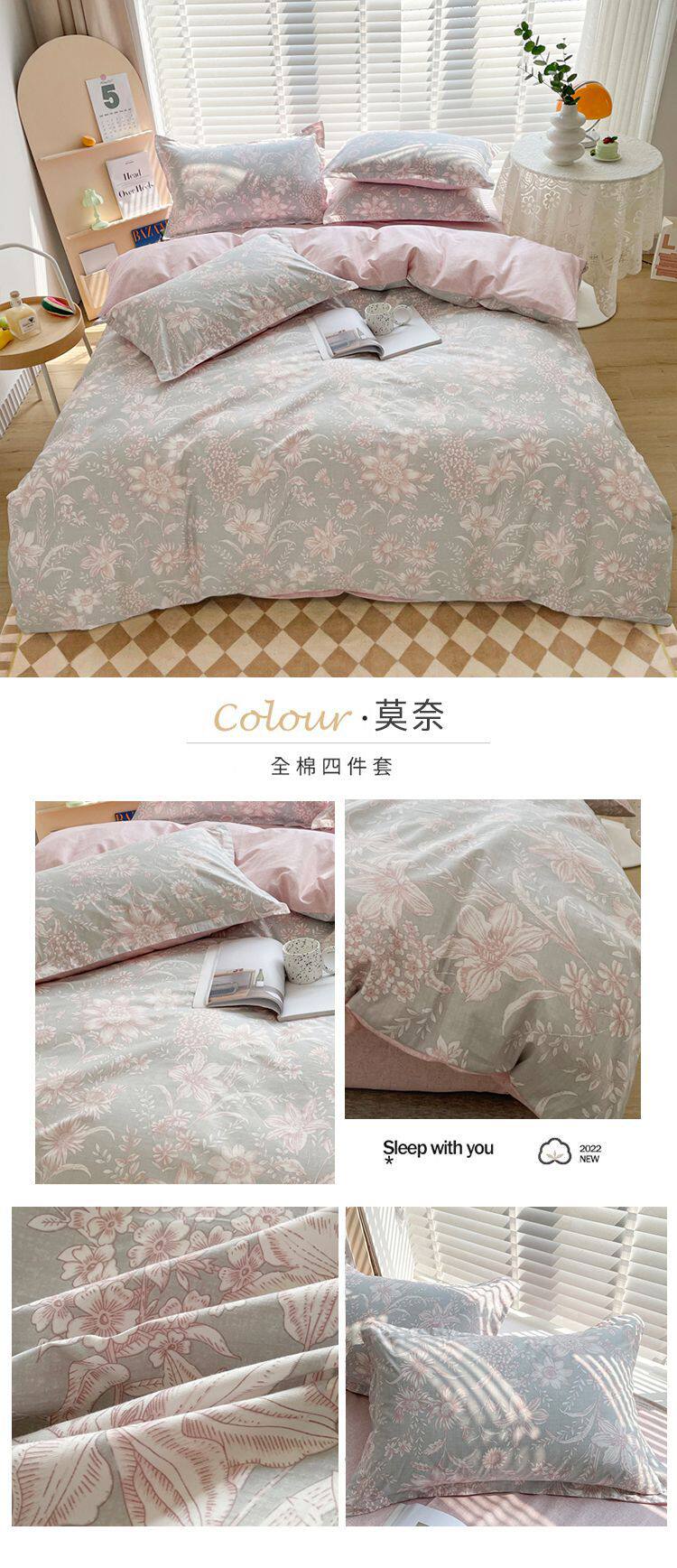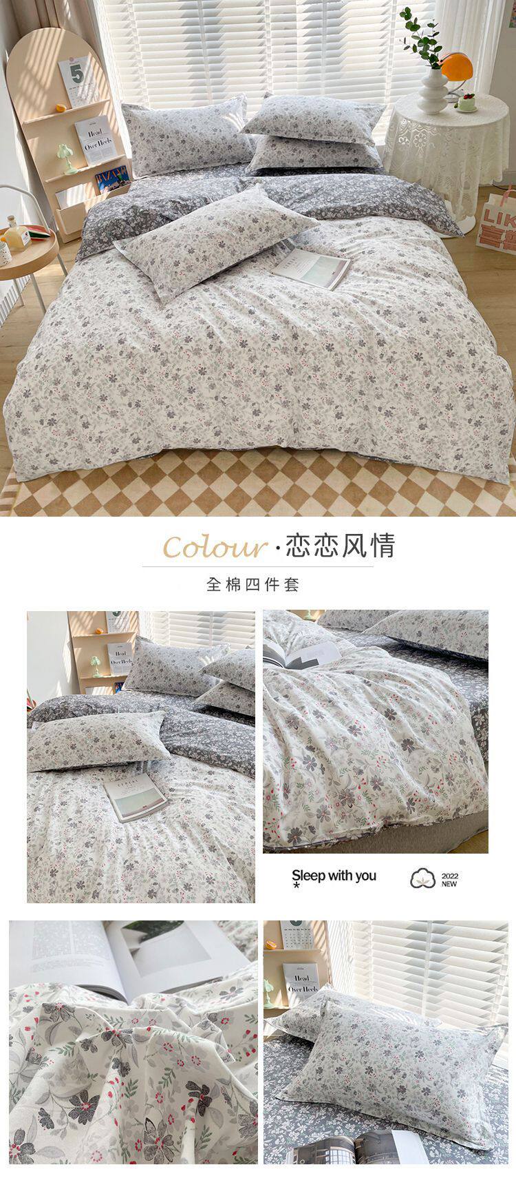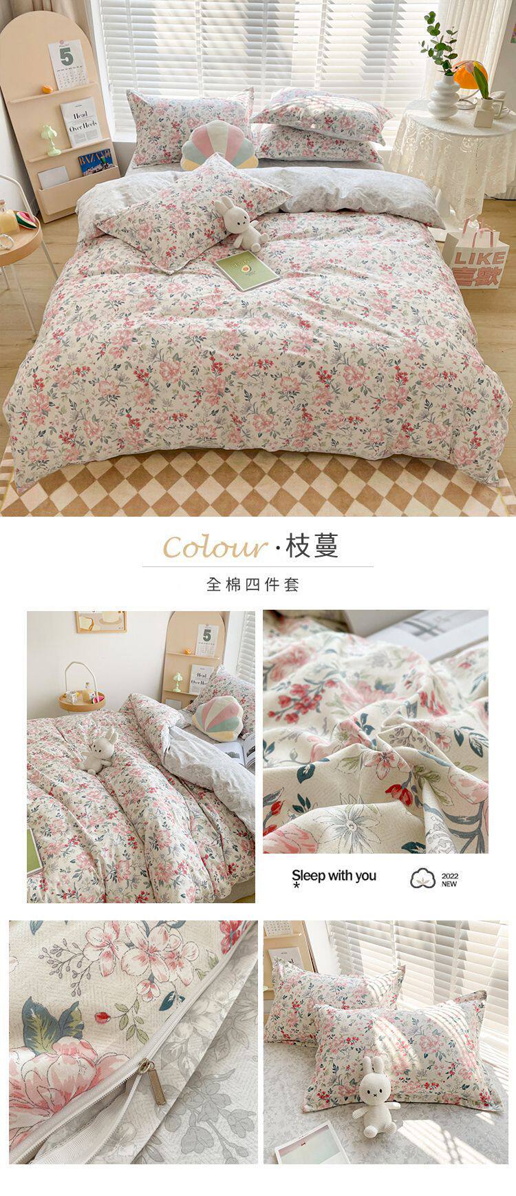 Autumn and Winter All-Cotton Xiaohongshu Floral Four-Piece Set 100% Pure Cotton for Guesthouses, Hotels, Dormitories Wholesale Fresh and Trendy Ins-Style Set