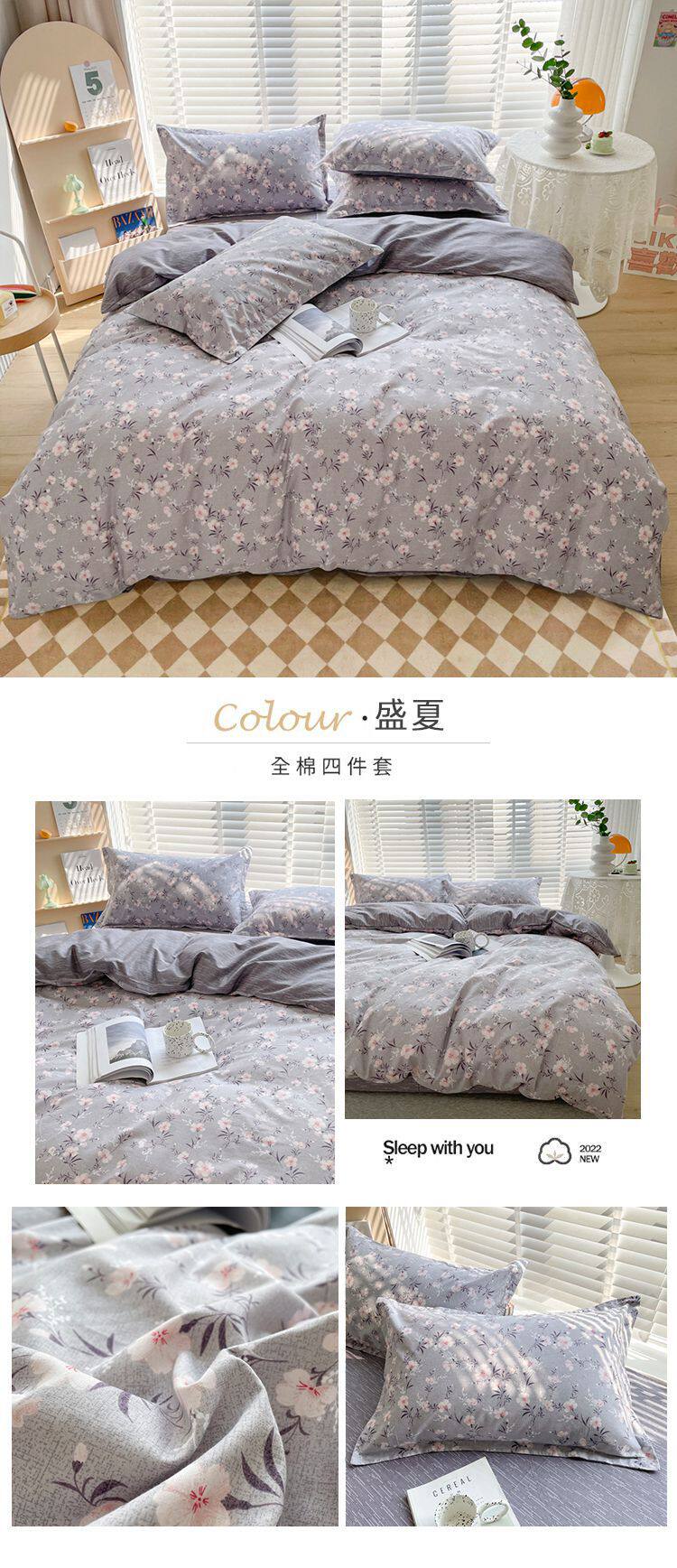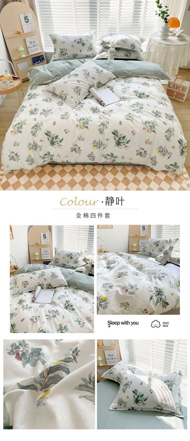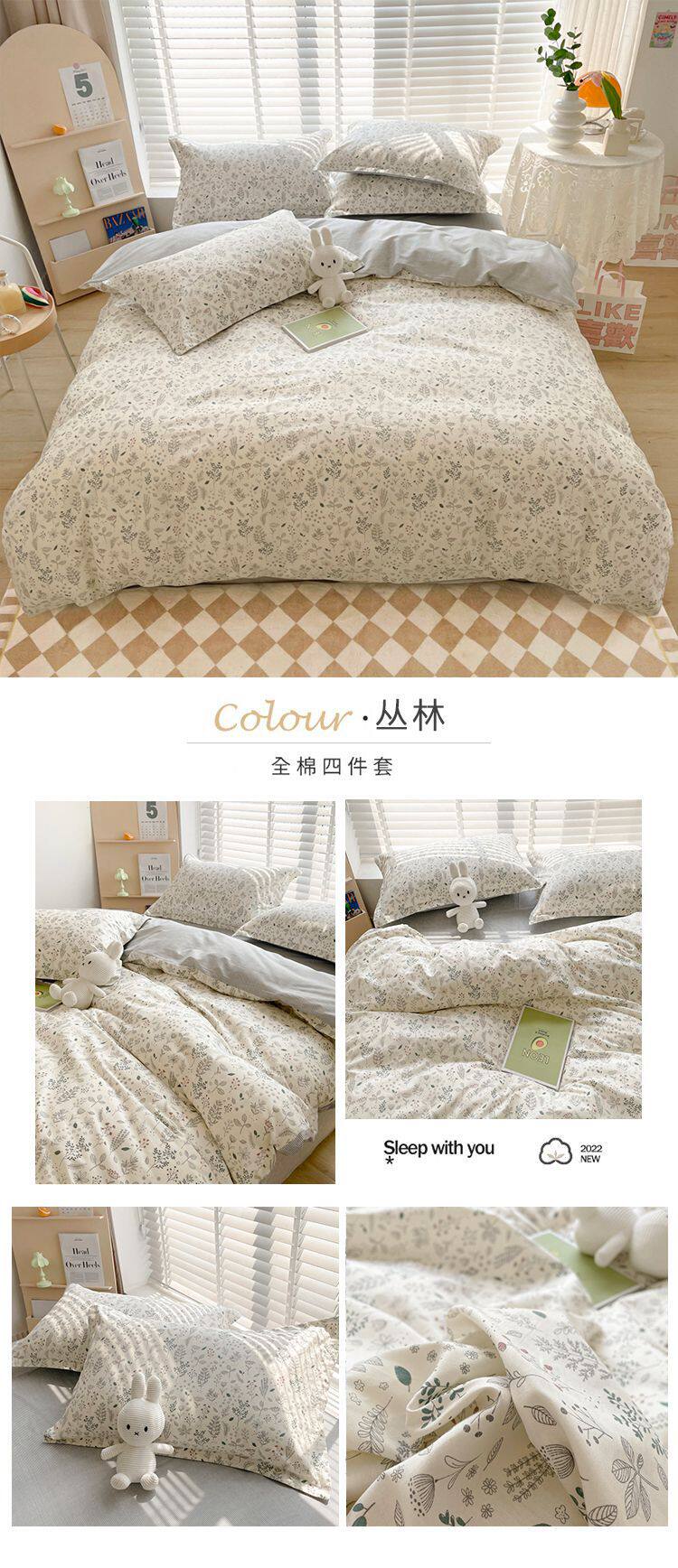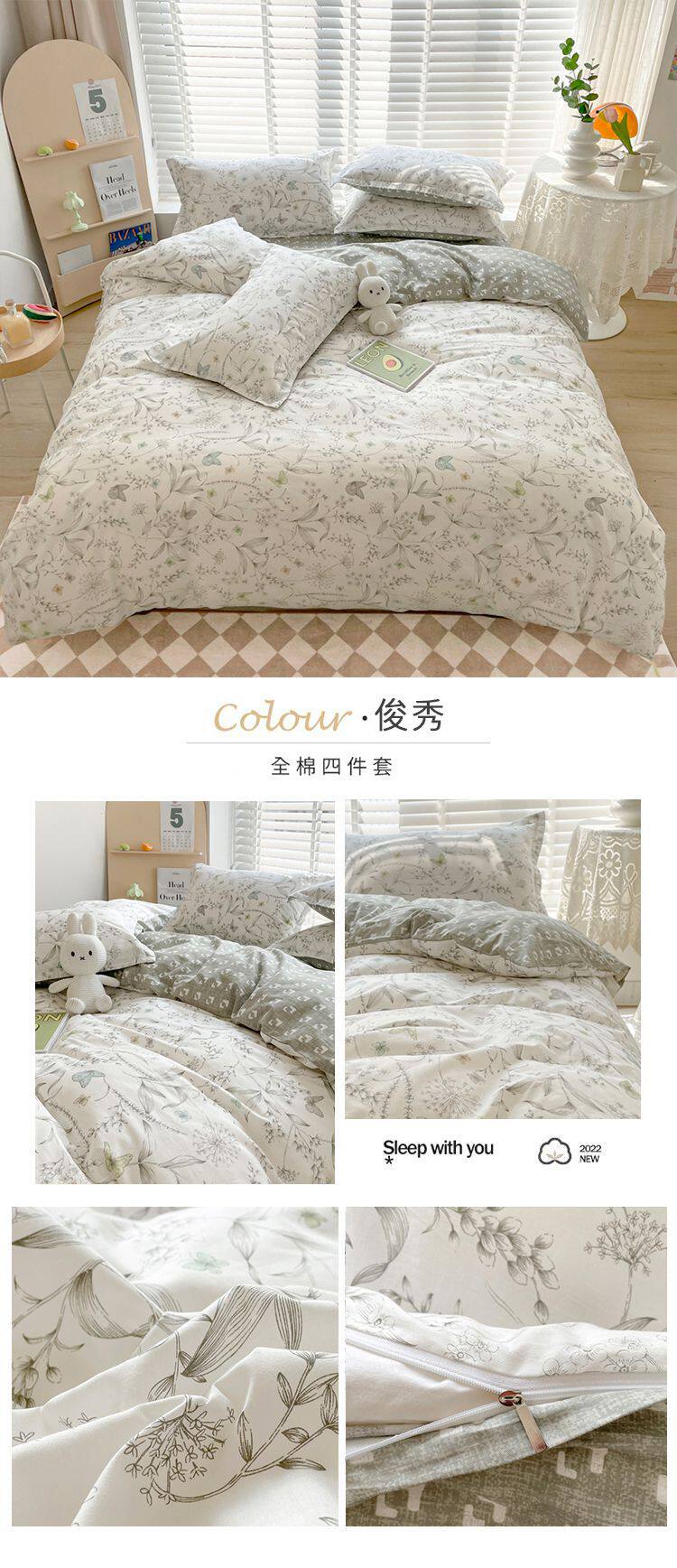 Autumn and Winter All-Cotton Xiaohongshu Floral Four-Piece Set 100% Pure Cotton for Guesthouses, Hotels, Dormitories Wholesale Fresh and Trendy Ins-Style Set