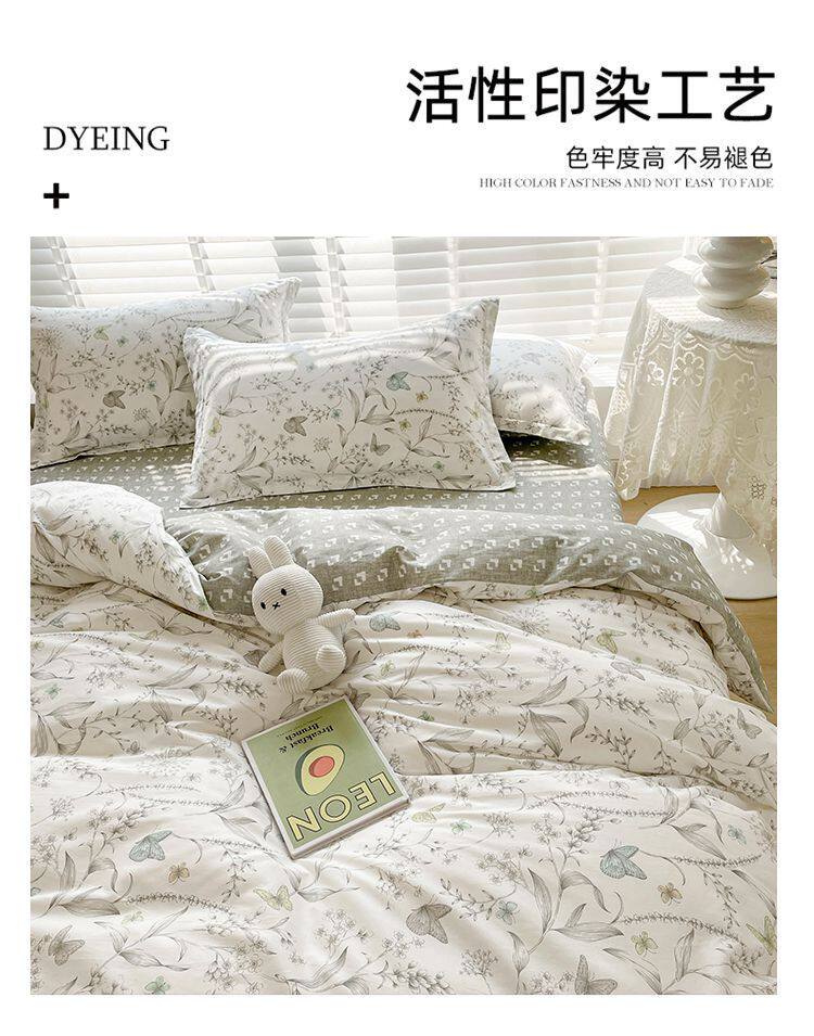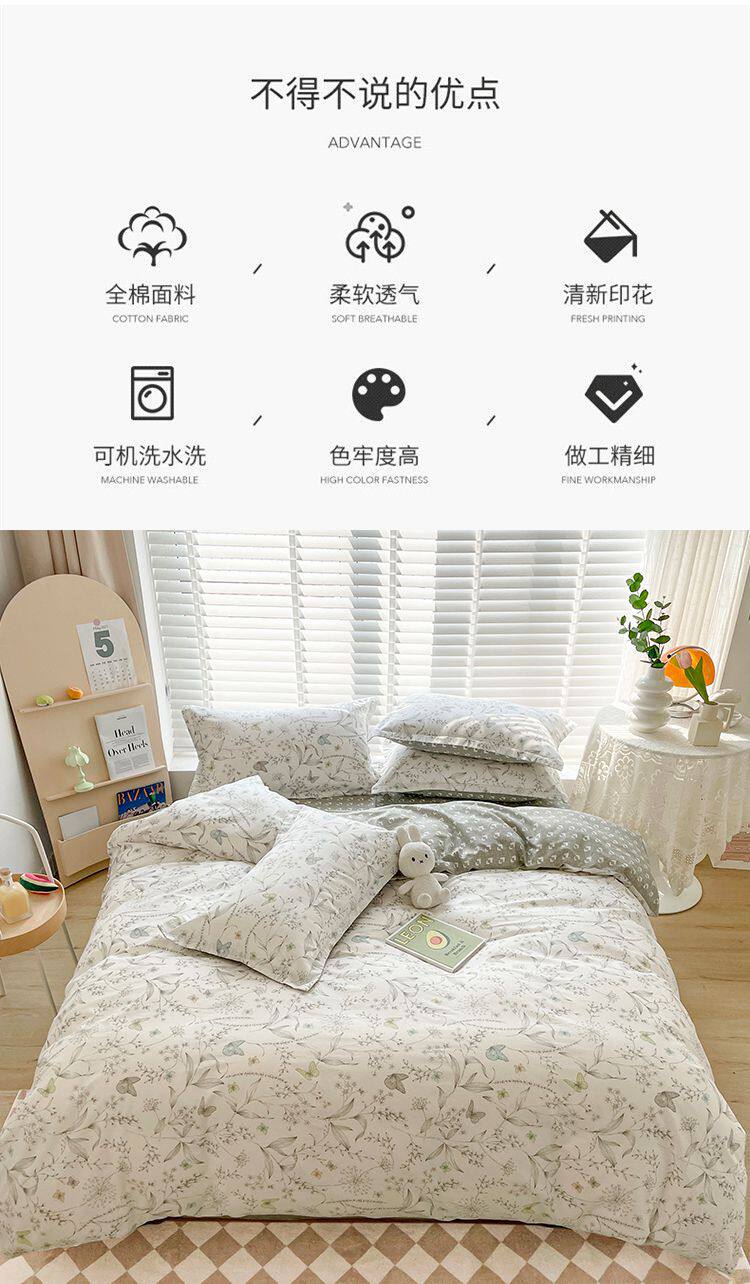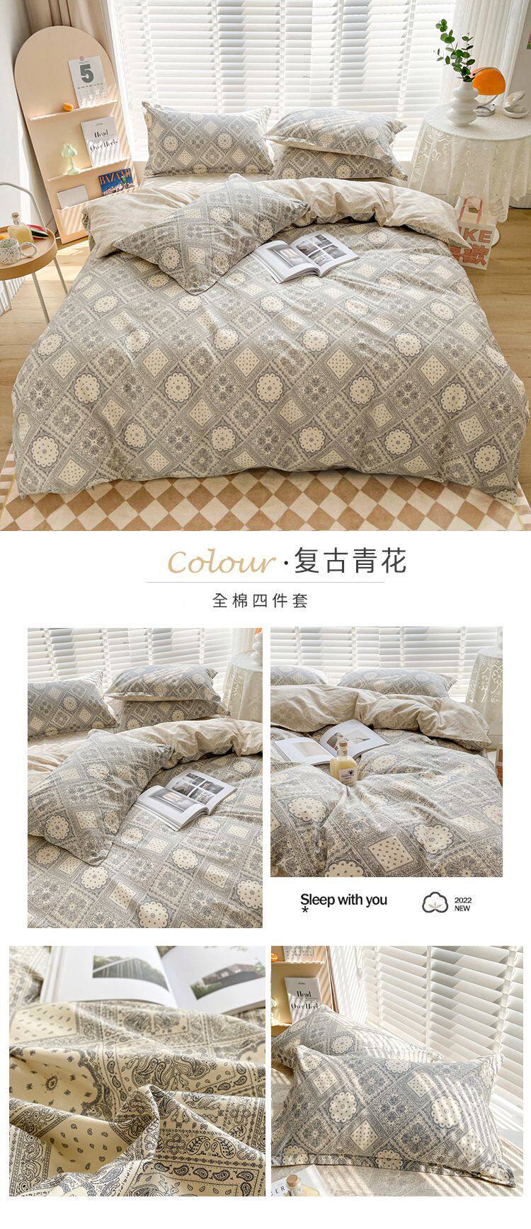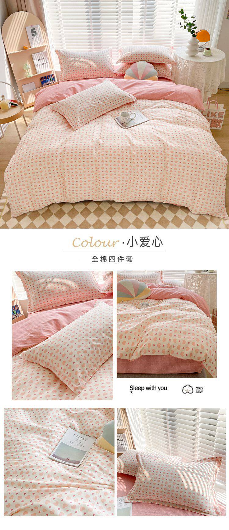 Autumn and Winter All-Cotton Xiaohongshu Floral Four-Piece Set 100% Pure Cotton for Guesthouses, Hotels, Dormitories Wholesale Fresh and Trendy Ins-Style Set
