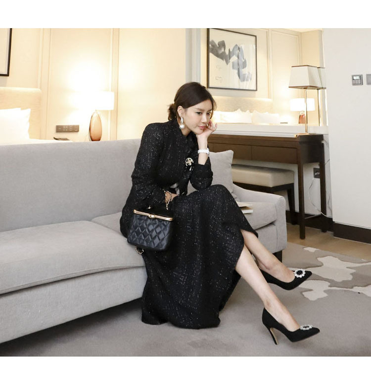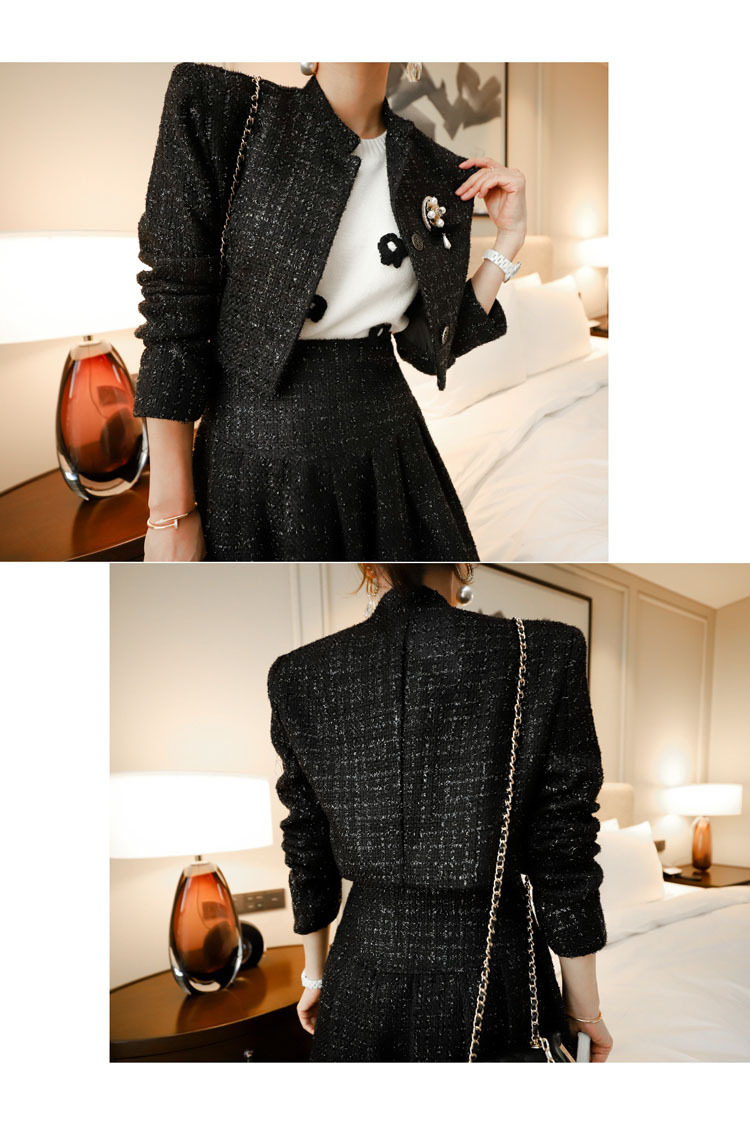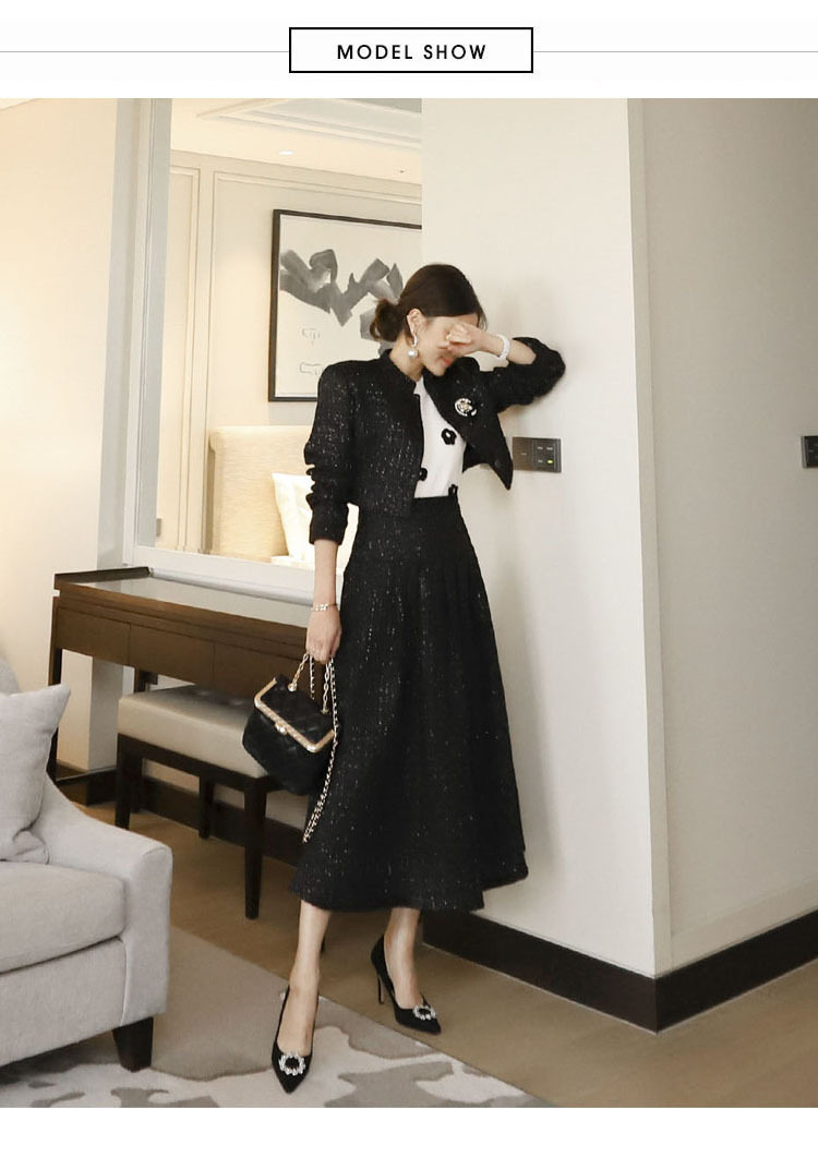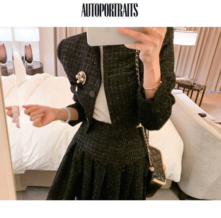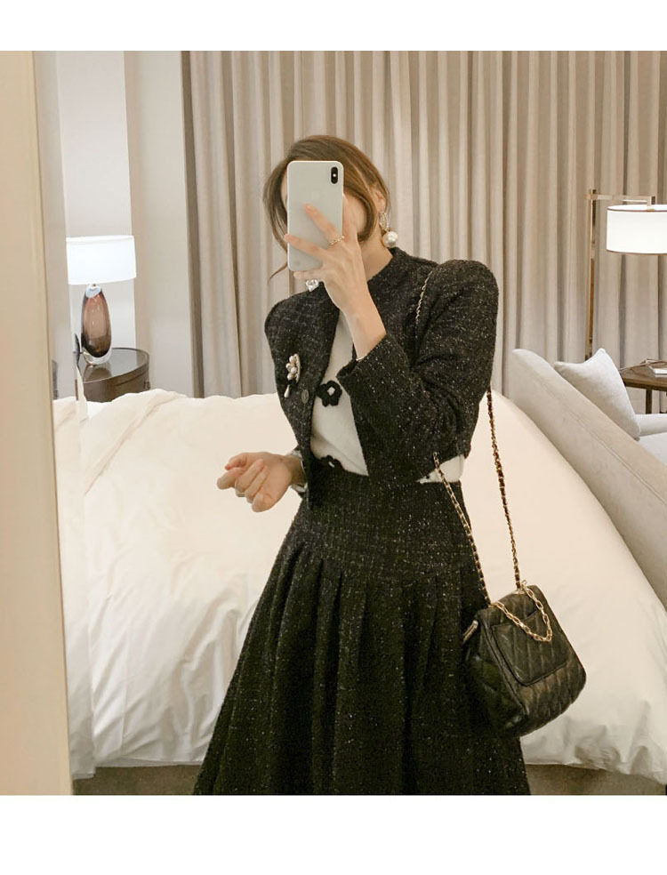 Yujie fan new two-piece Korean style socialite temperament woolen short coat + waist-tight large swing dress Hepburn suit