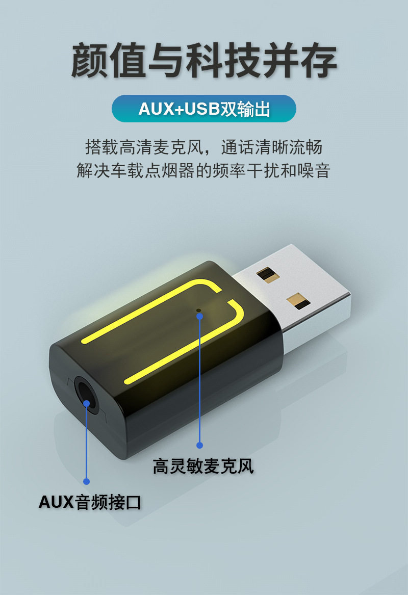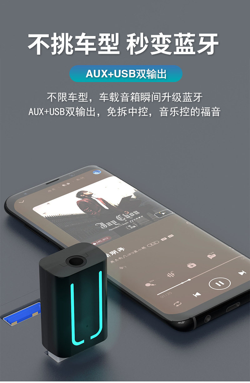 USB dual output Bluetooth receiver steering wheel cut song car converter lossless mp3 player adapter