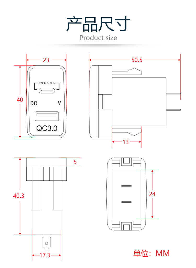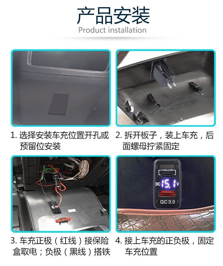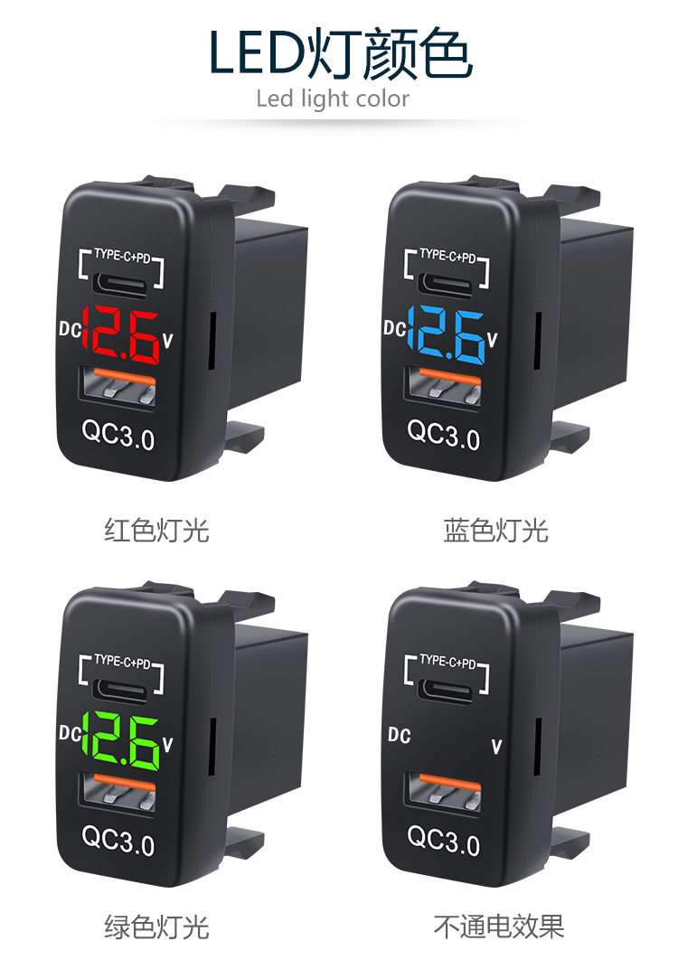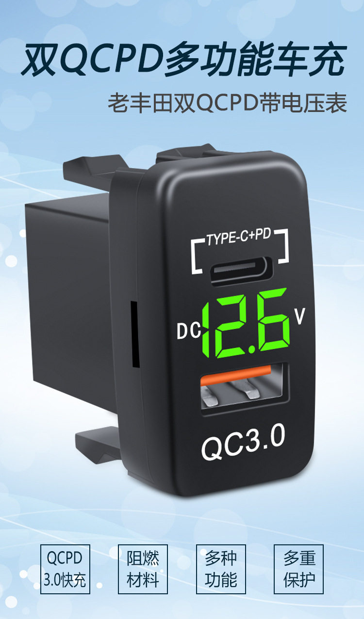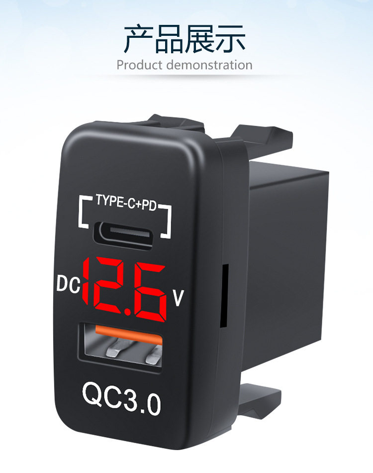 Suitable for Toyota Car Lossless Installation USB Voltmeter Original Hole Usbqc3.0Tpc Fast Charging Car Charger