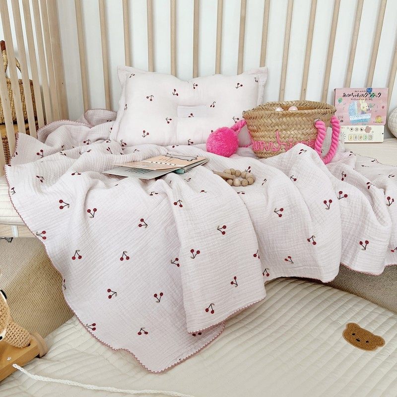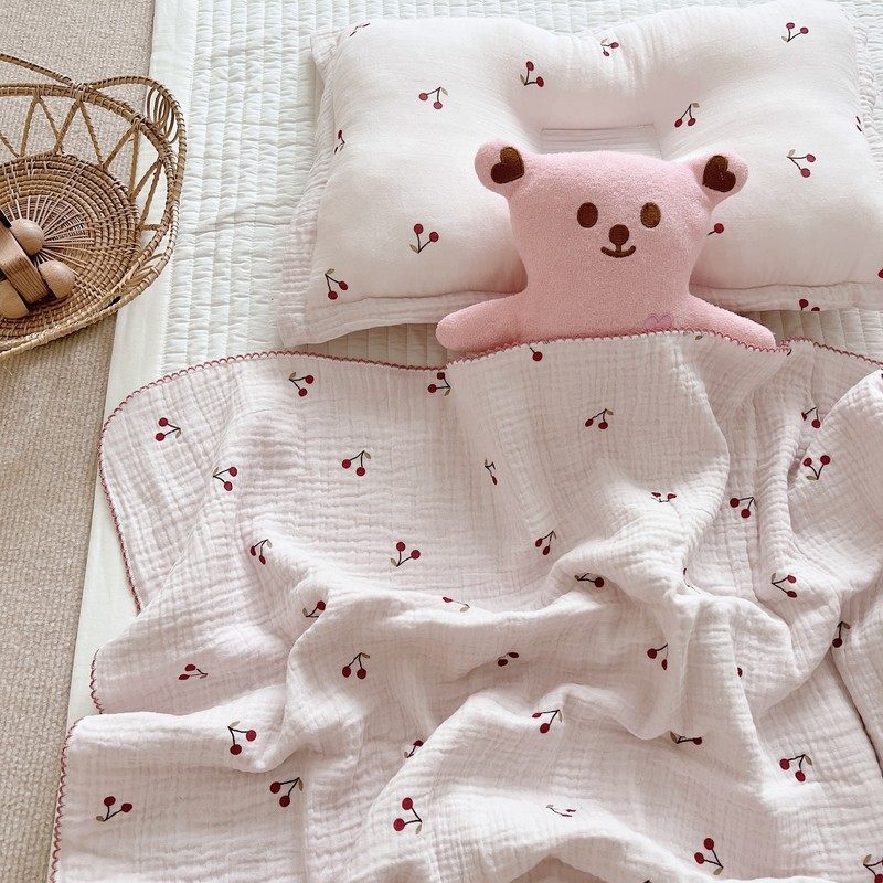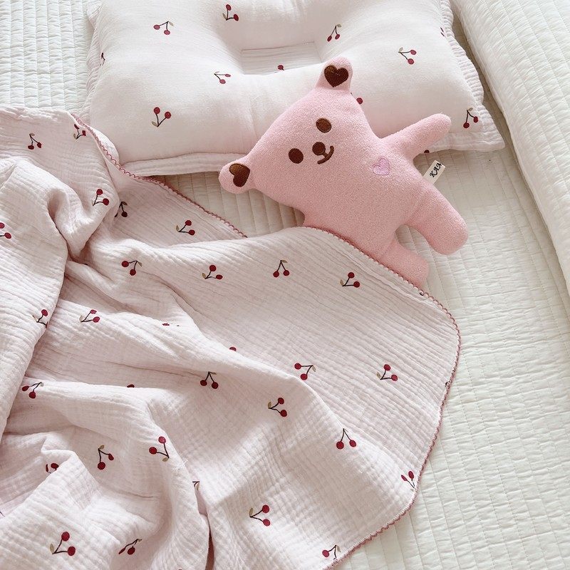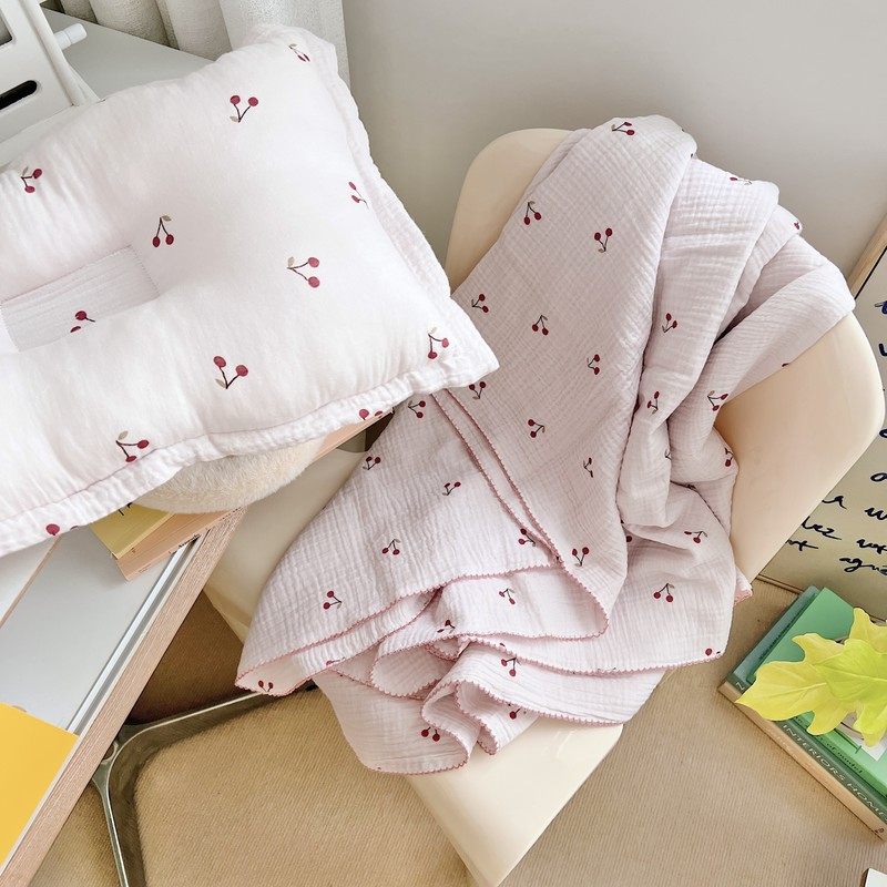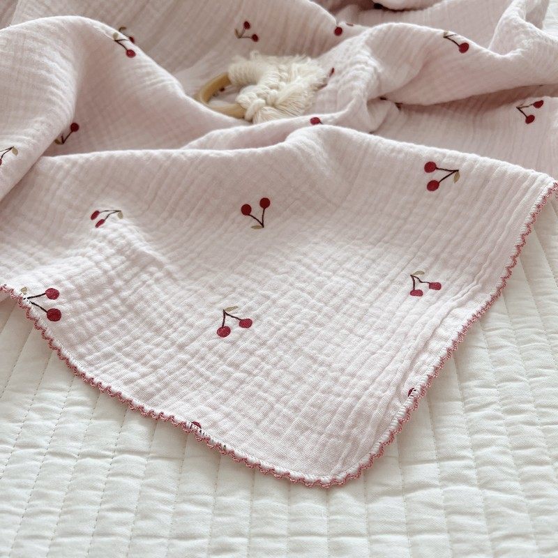 Pink fresh cute cherry blanket ins style baby gauze towel nap blanket cotton towel bath towel blanket